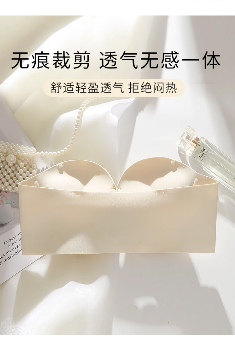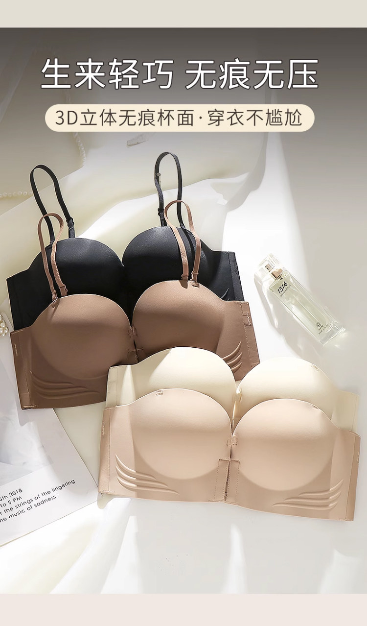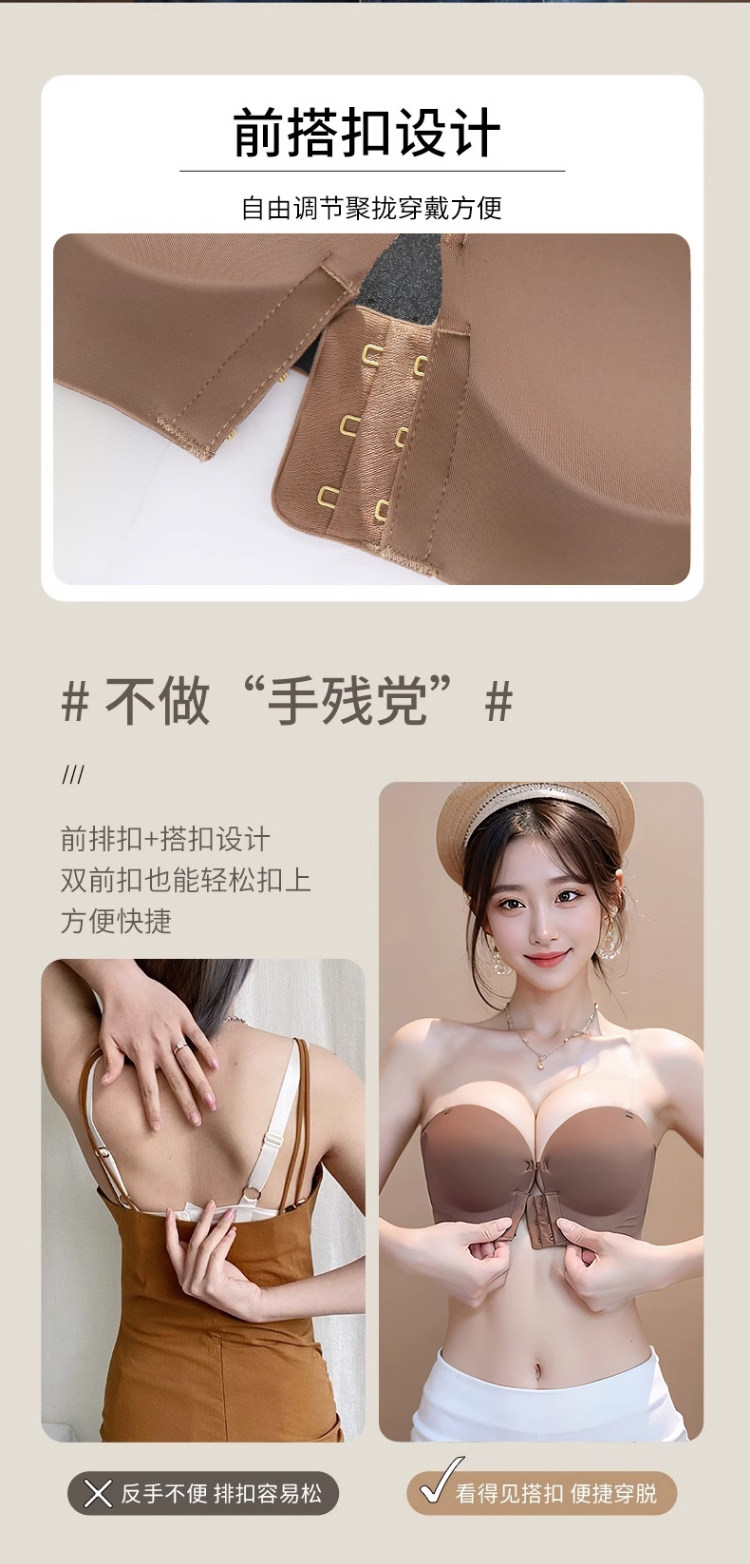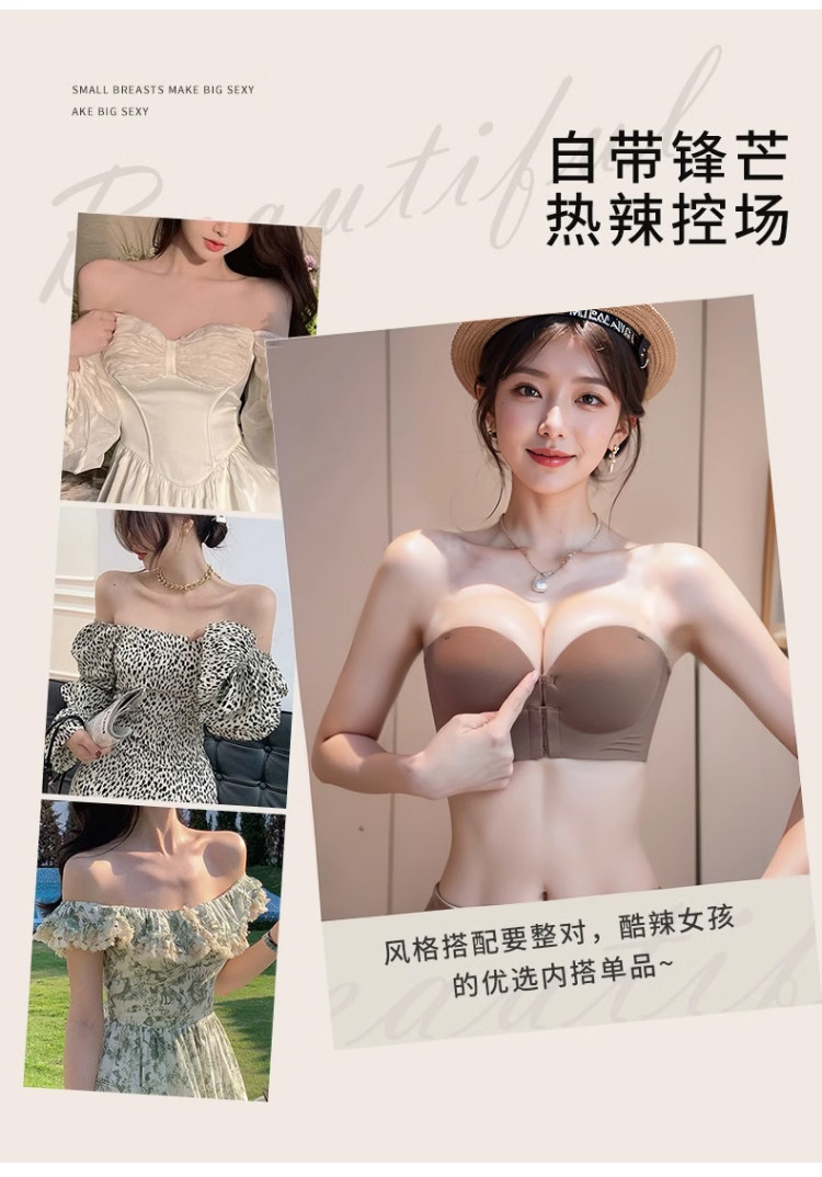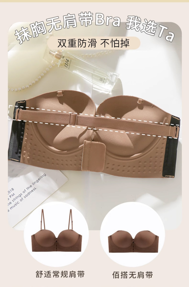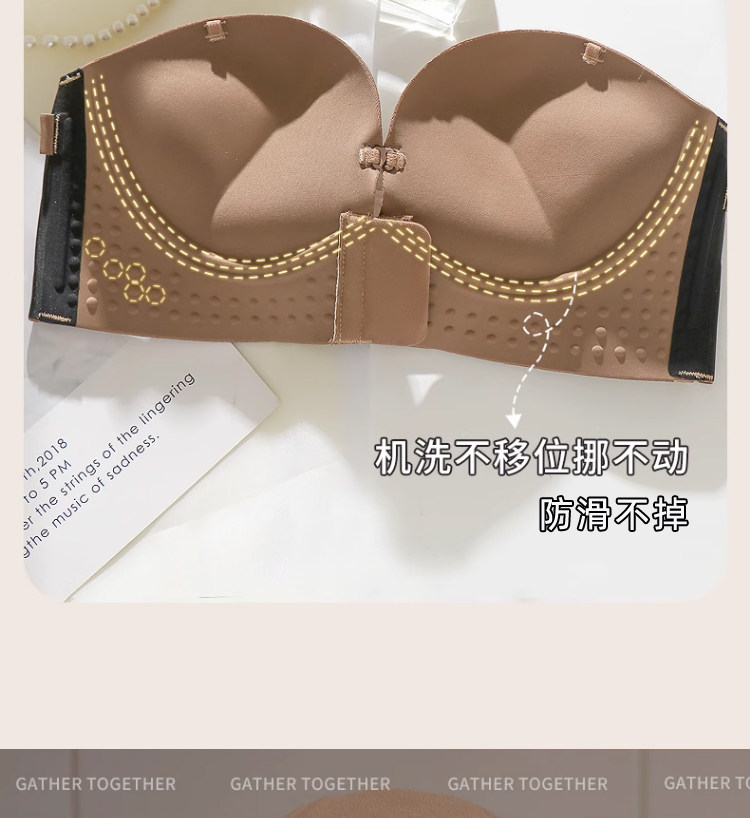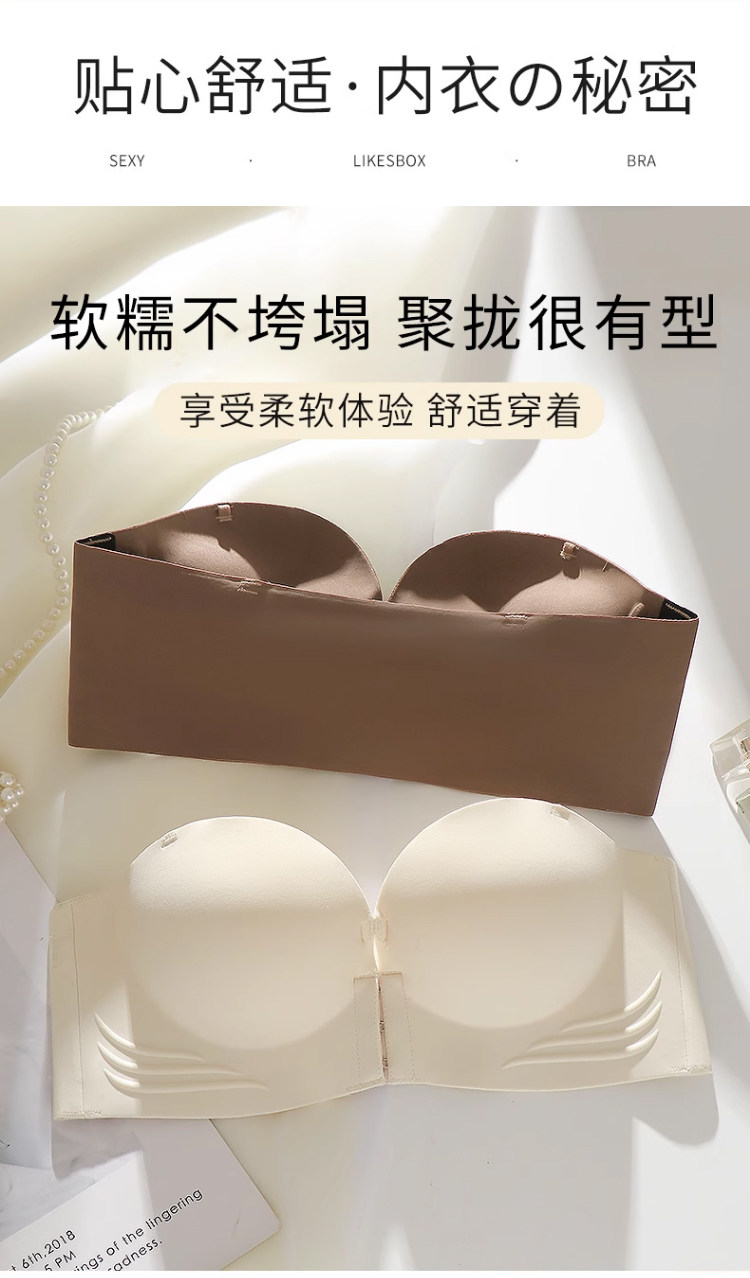 前釦無肩帶內衣女防滑聚攏小胸顯大加厚6cm隱形抹胸美背裹胸文胸