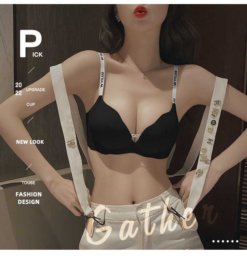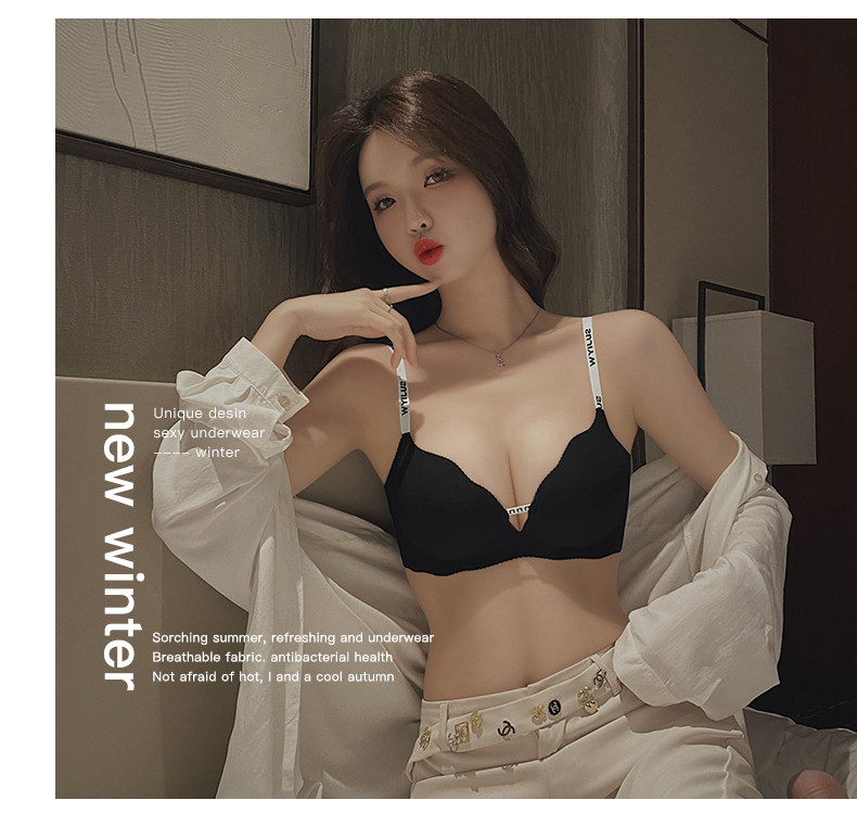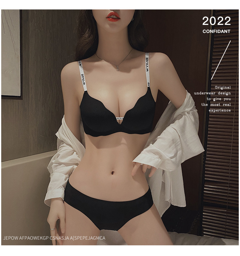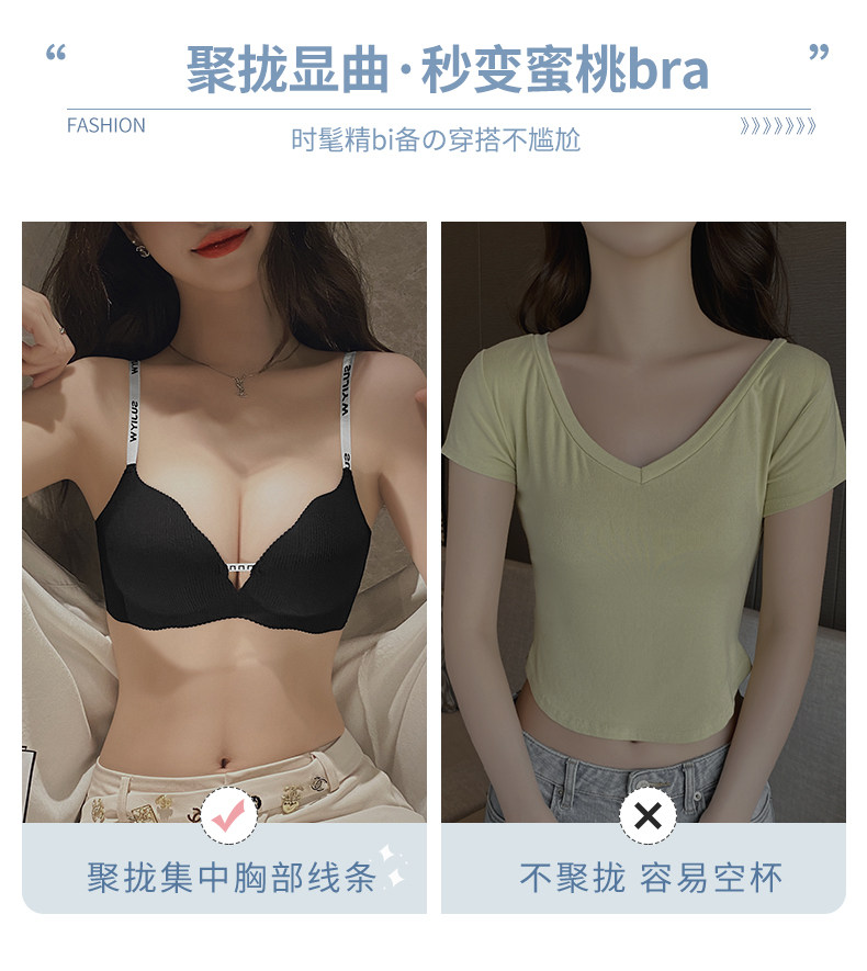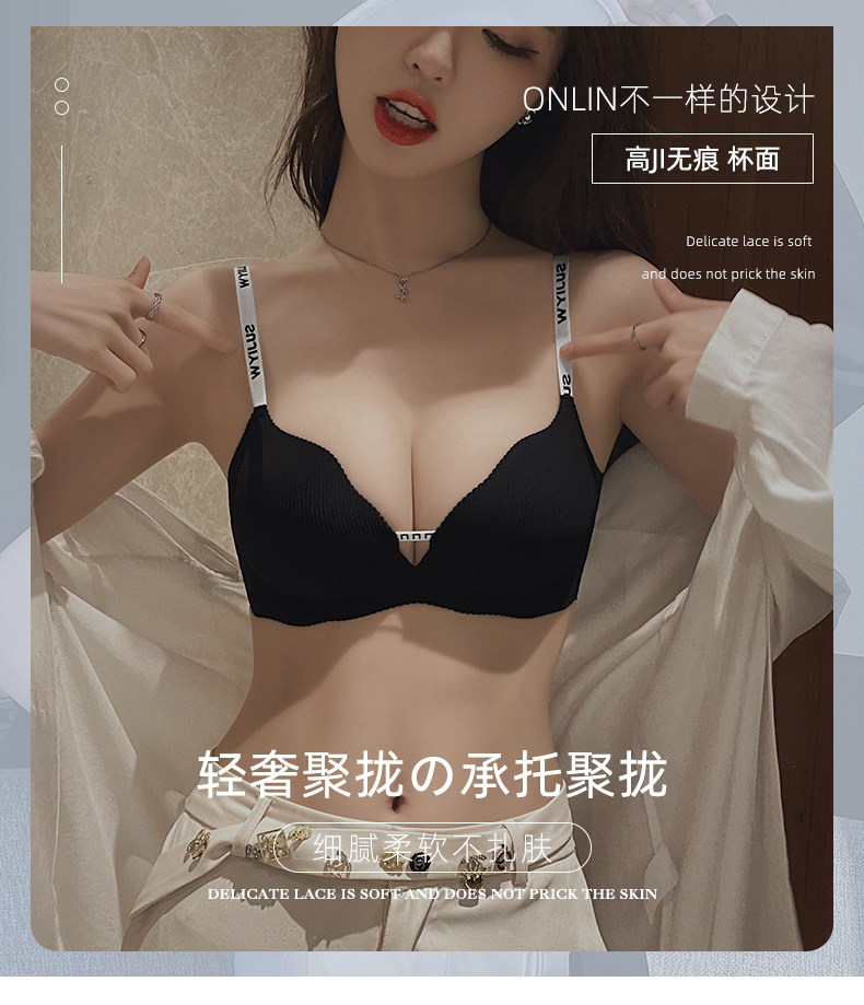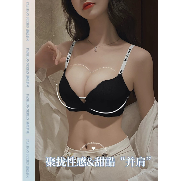 維多利亞夏季內衣女小胸聚攏收副乳無鋼圈字母肩帶可外露文胸套裝