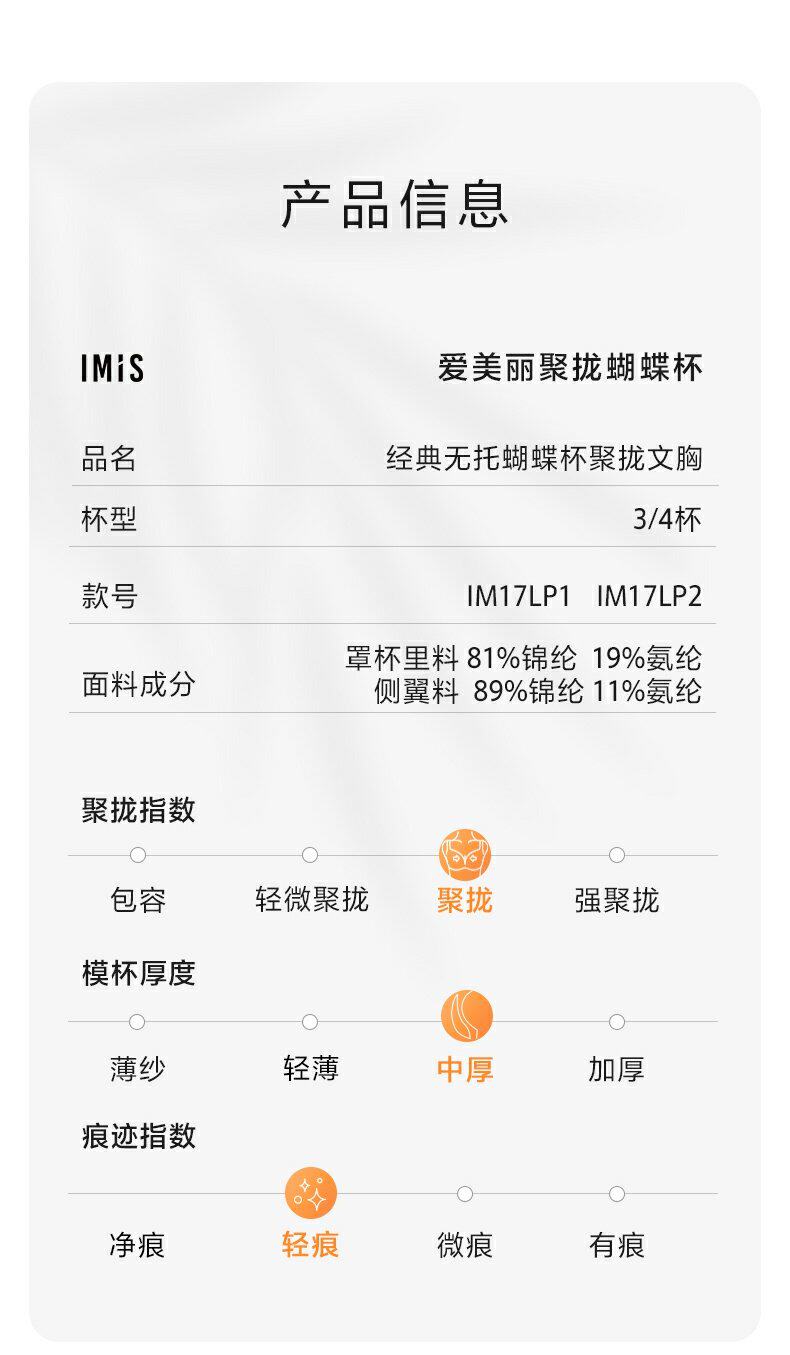 愛美麗IMIS內衣女無鋼圈小胸聚攏文胸胸罩蕾絲3/4文胸罩IM17LP1/2