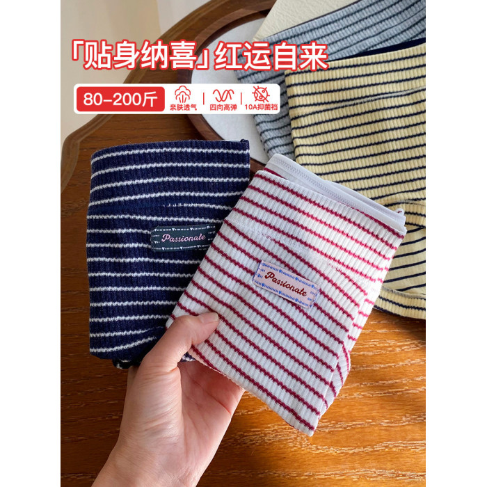 微內薇紅色條紋平角內褲女2026好運本命年純棉抑菌襠大碼四角褲