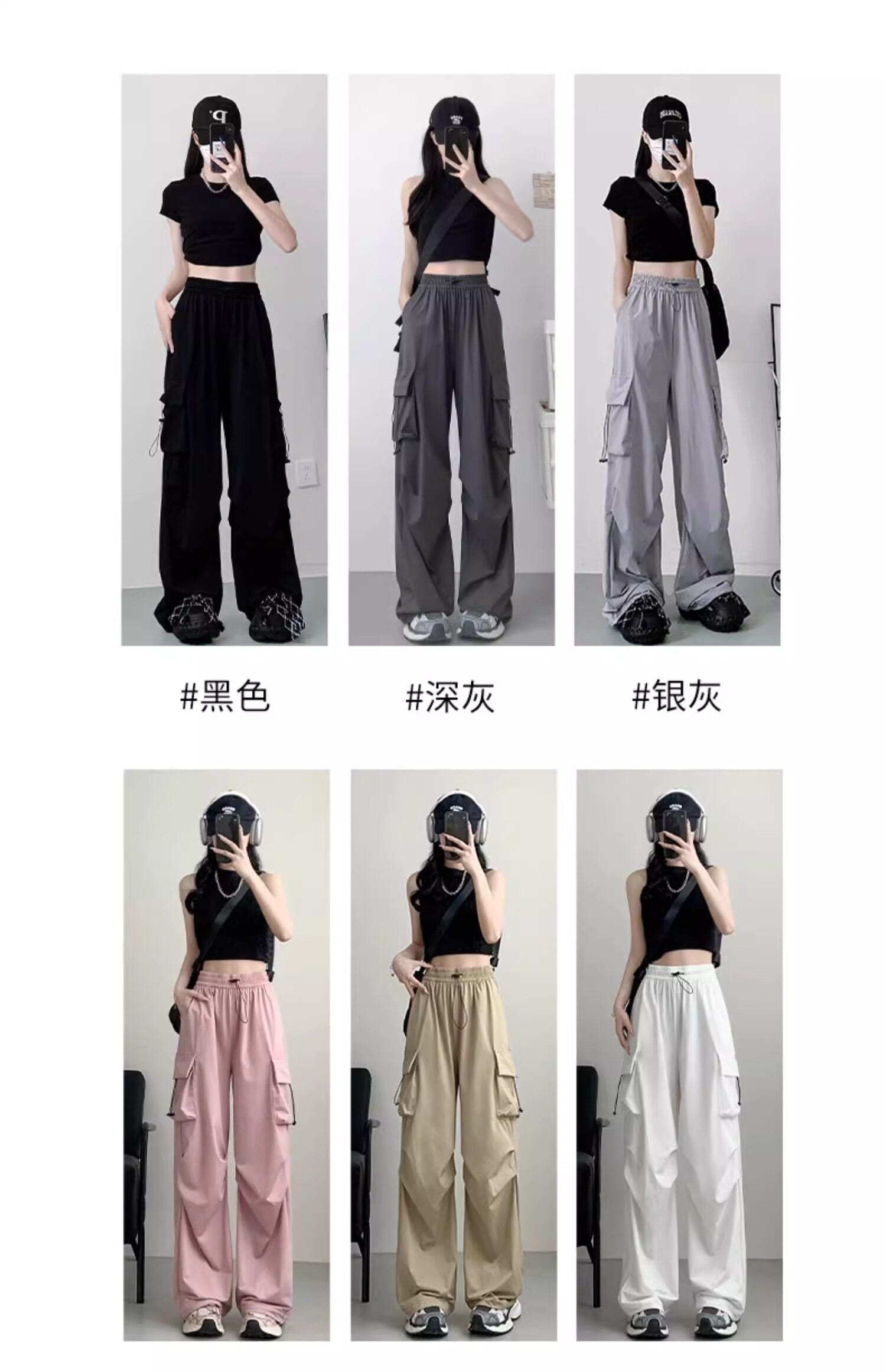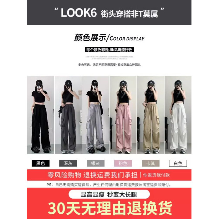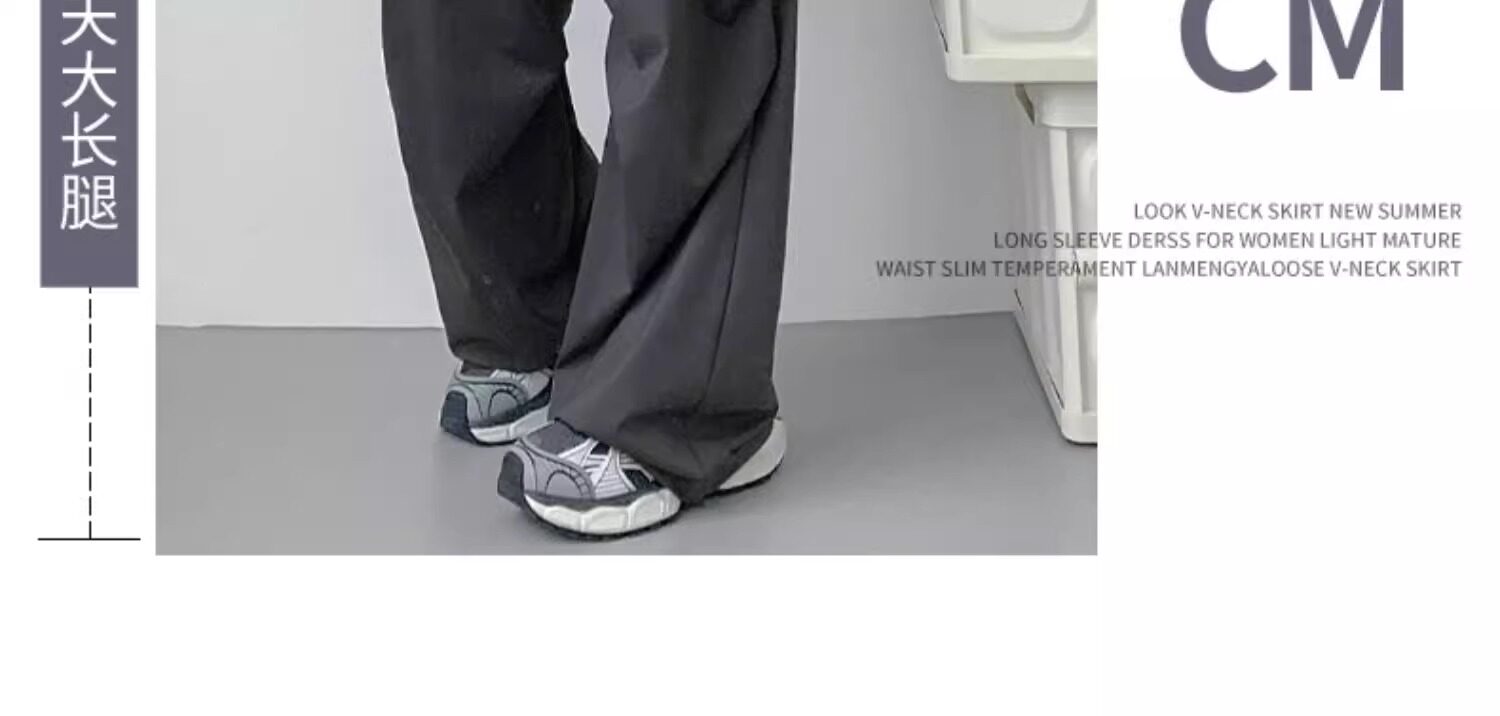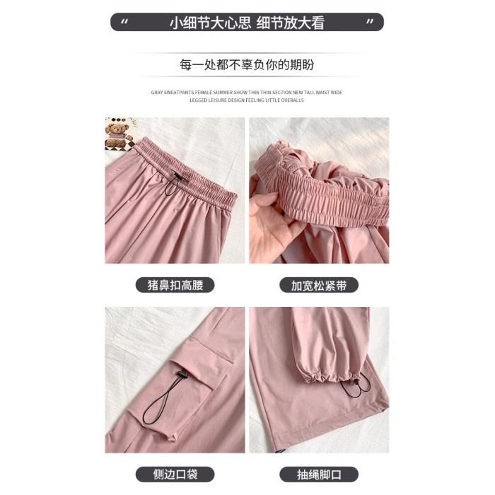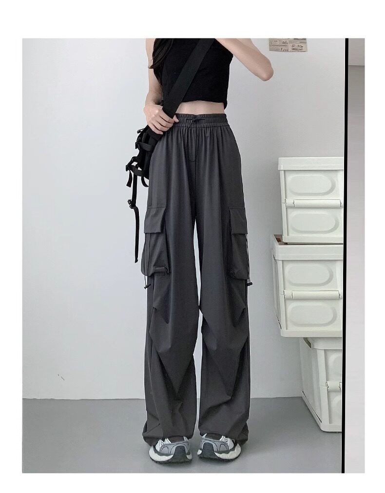 灰色工裝褲子女春秋夏季2025新款小個子寬鬆降落傘垂感美式運動褲