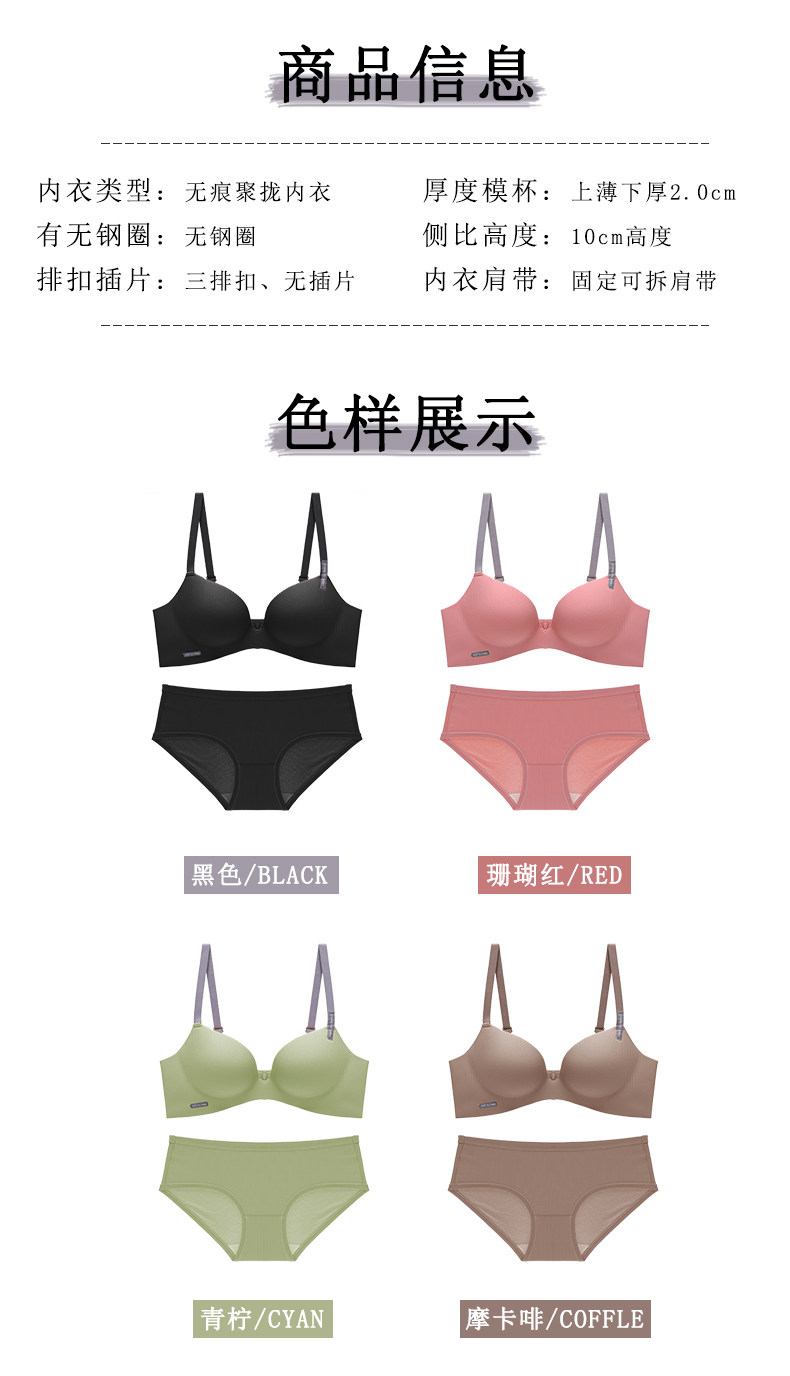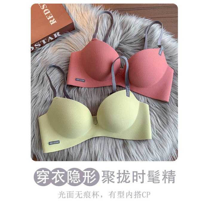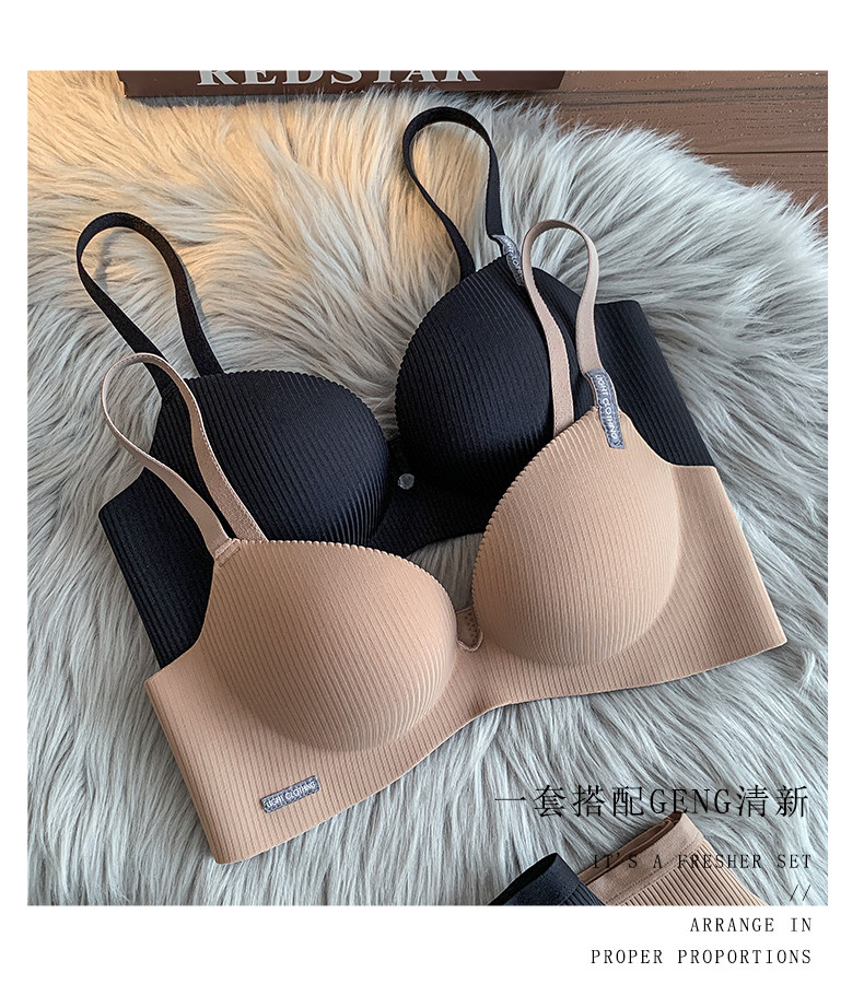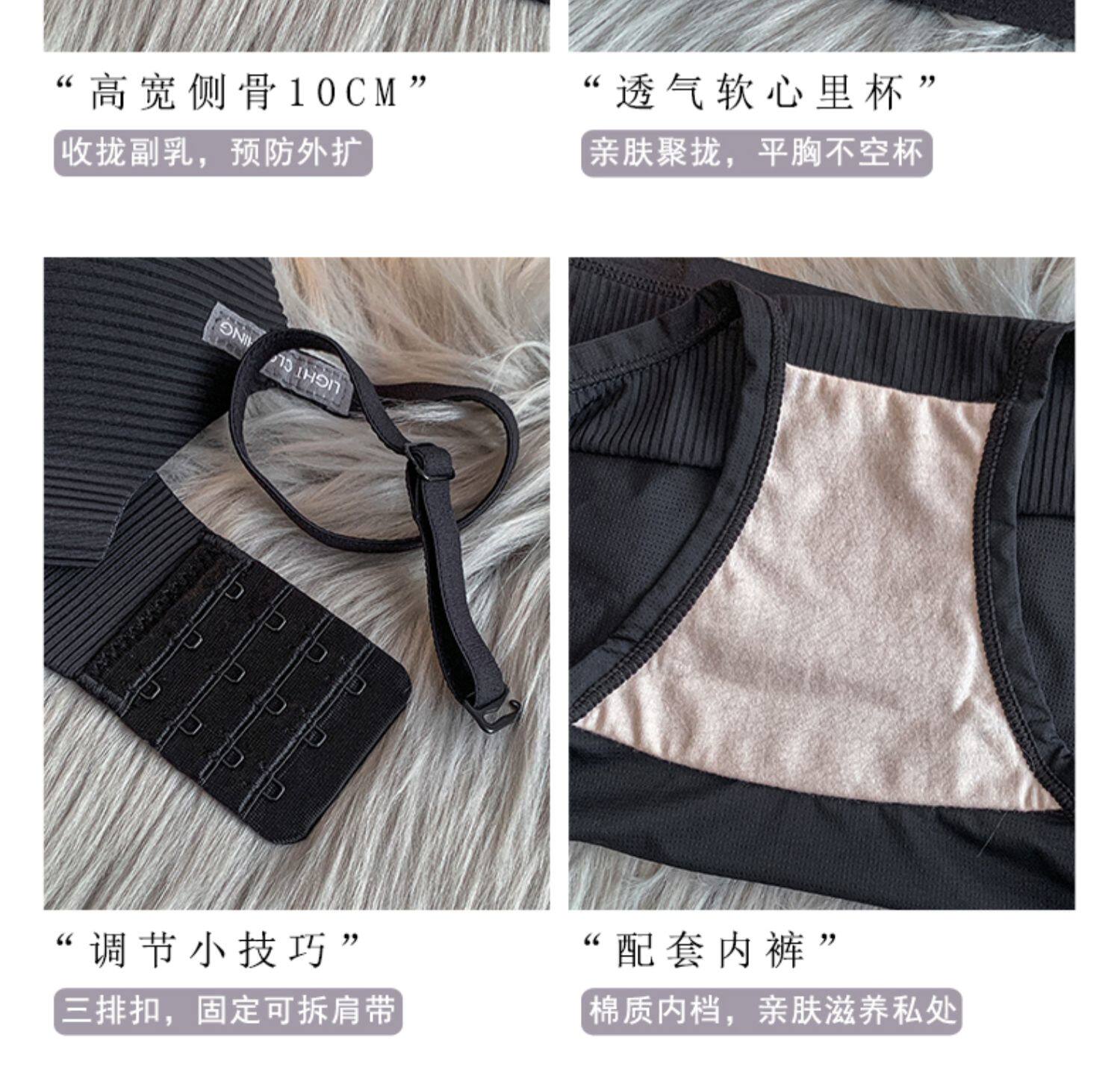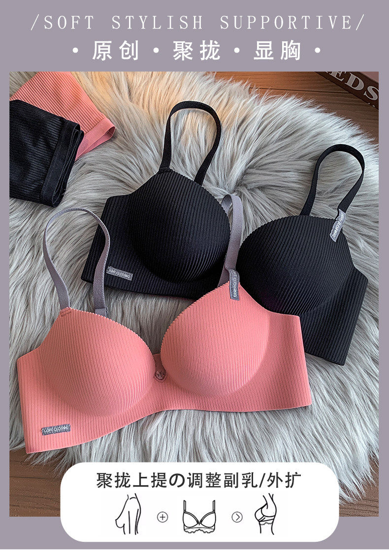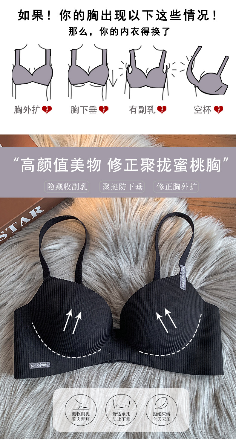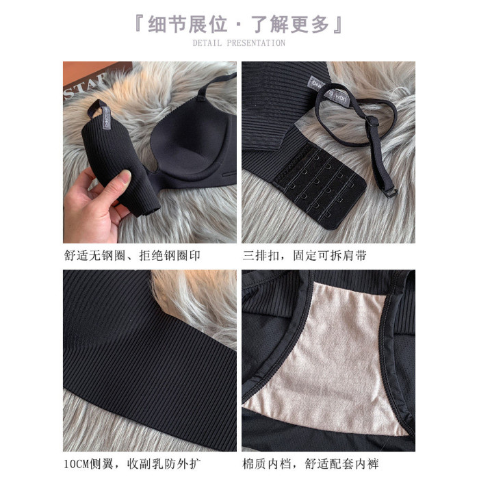 小胸聚攏內衣女士無鋼圈收副乳防下垂厚薄款調整型無痕文胸罩套裝