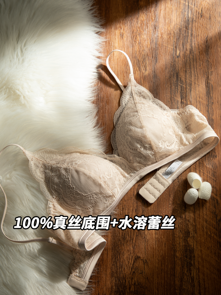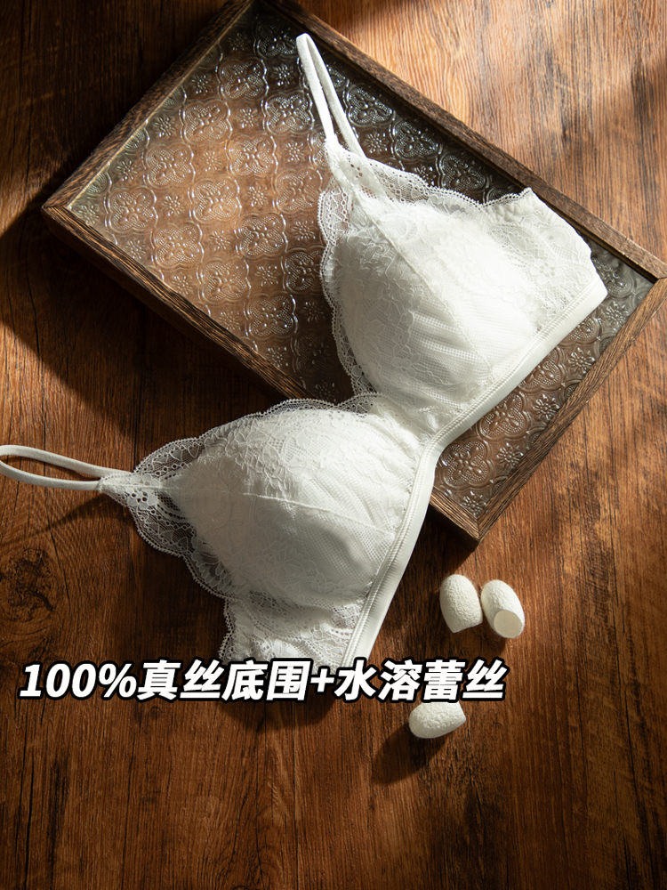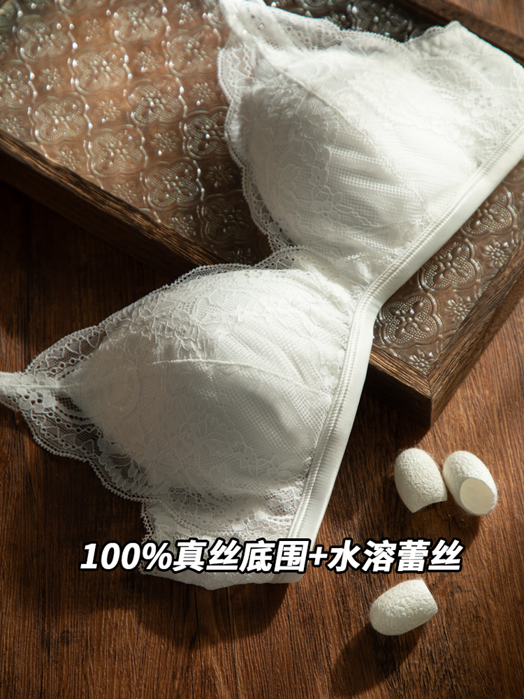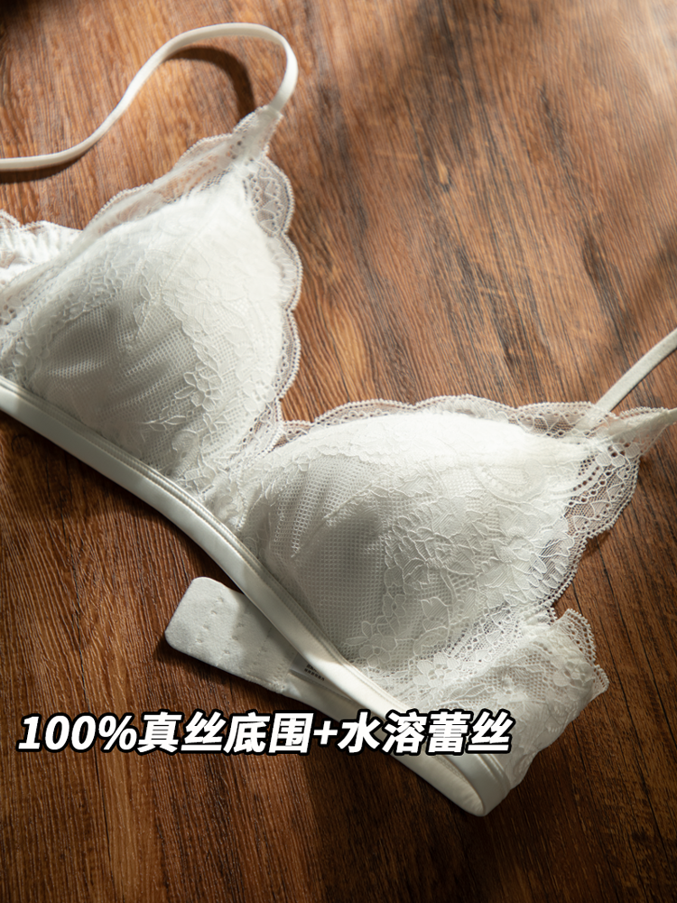 Kbra100%真絲底圍三角杯文胸2026新款爆款水溶蕾絲小胸聚攏內衣女