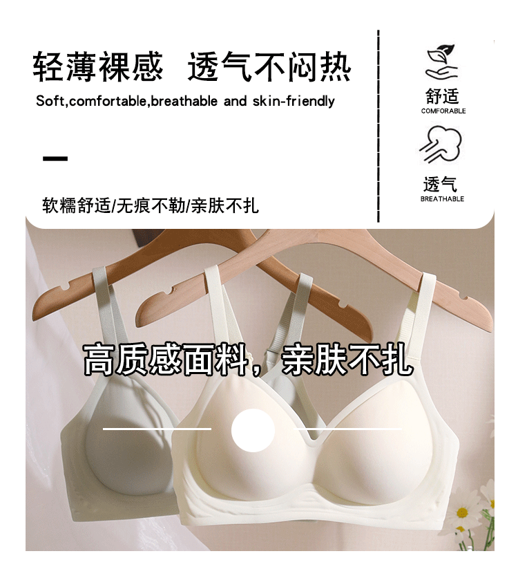 無痕裸感內衣女小胸聚攏收副乳無鋼圈夏季薄款大胸顯胸小美背胸罩