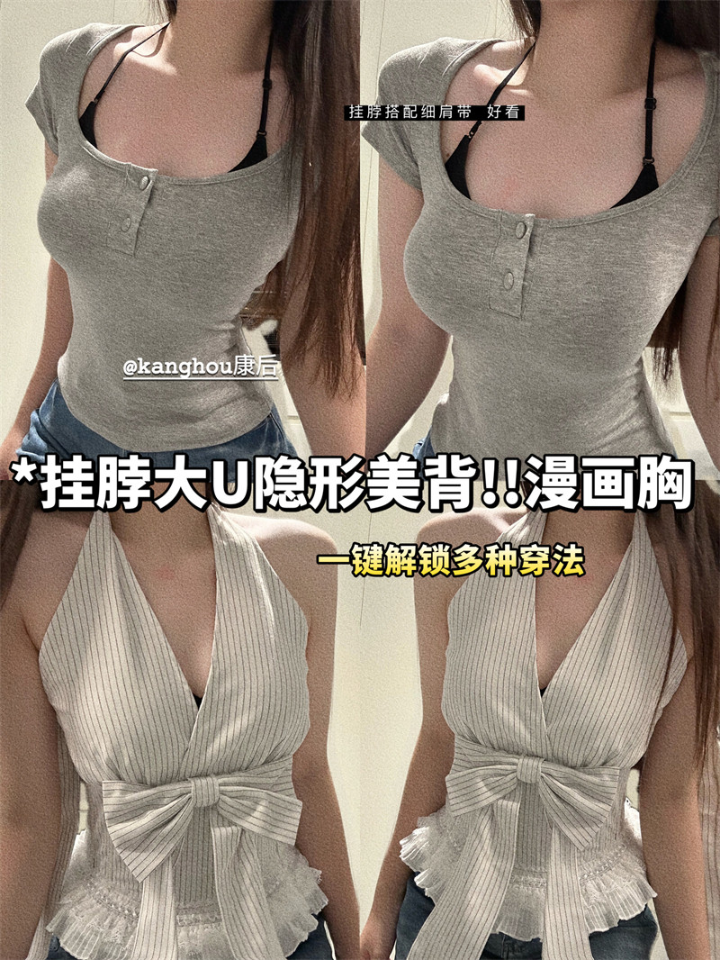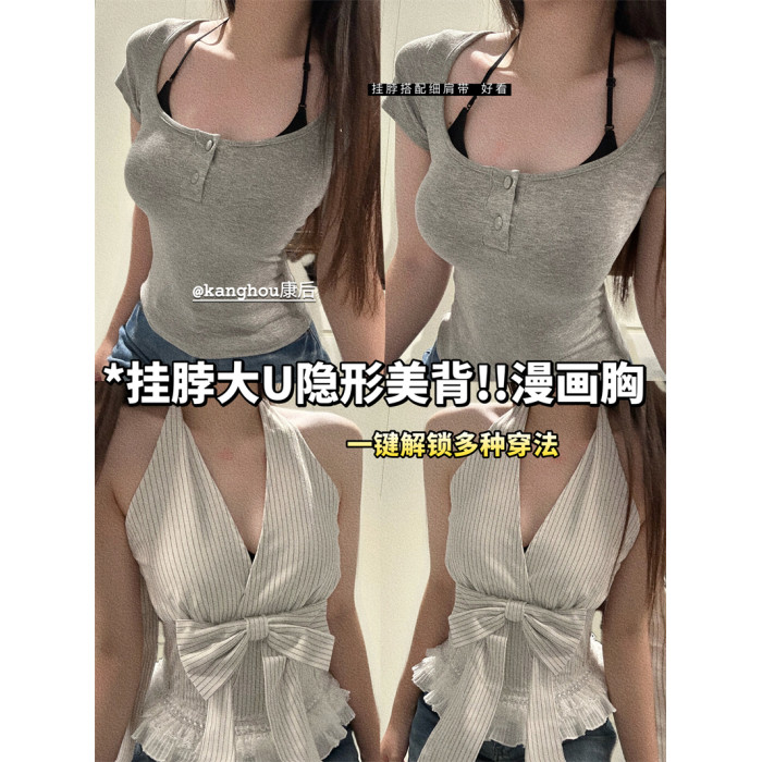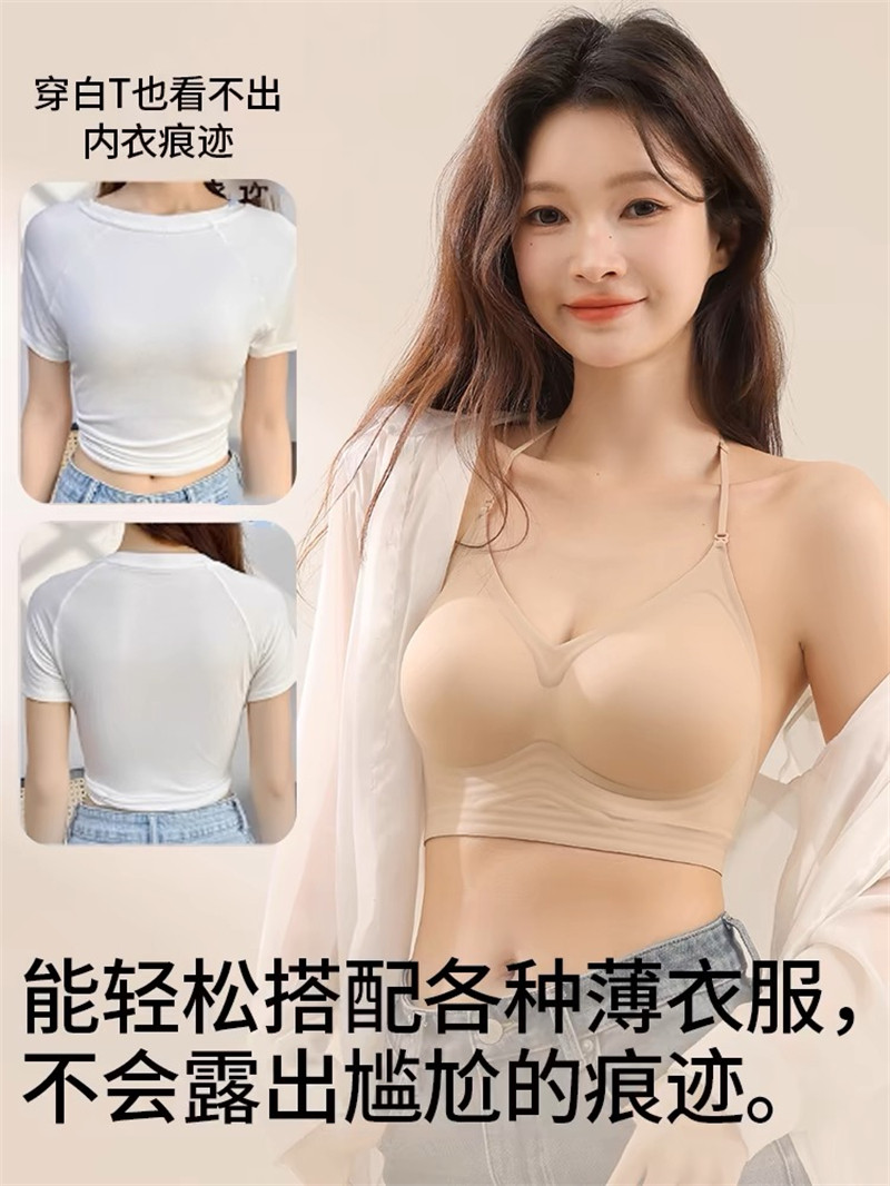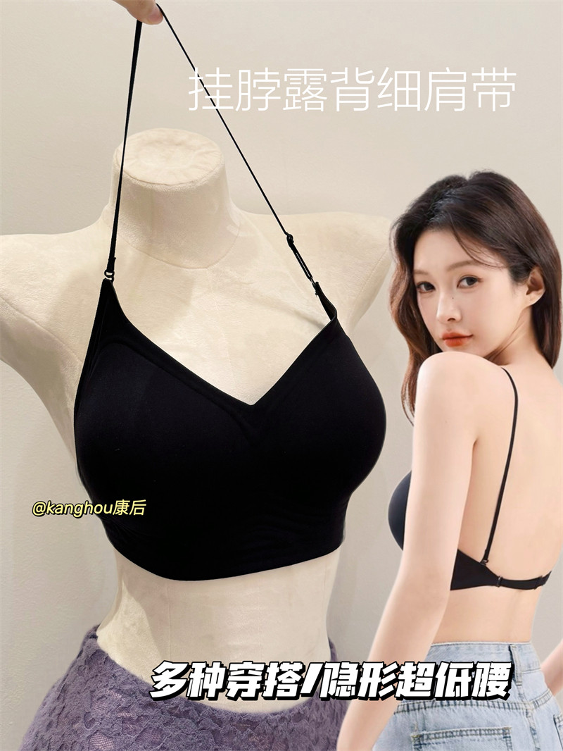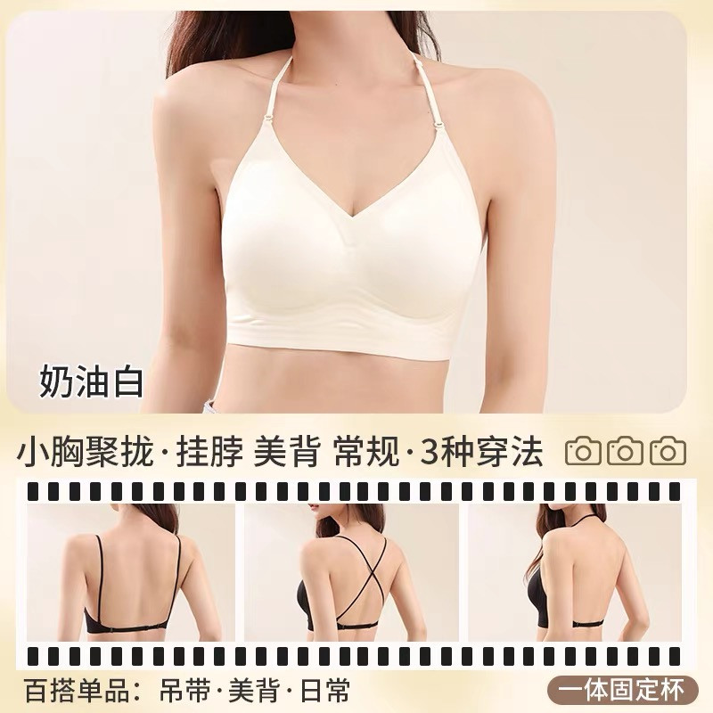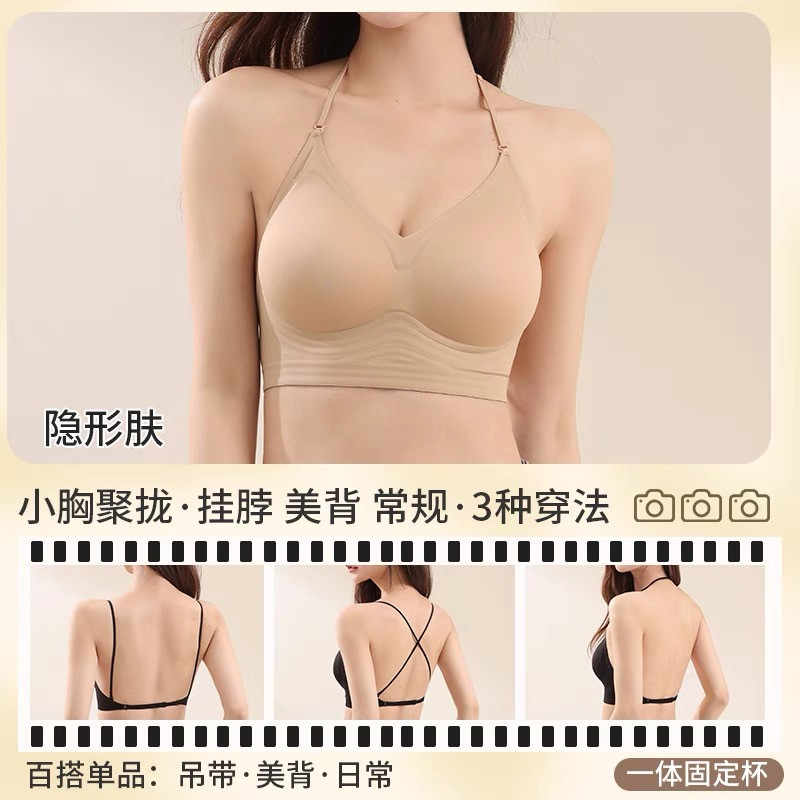 強搭! 掛脖吊帶美背細肩帶內衣女小胸聚攏露背粉底液隱形無痕文胸
