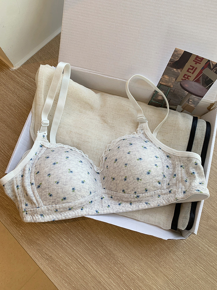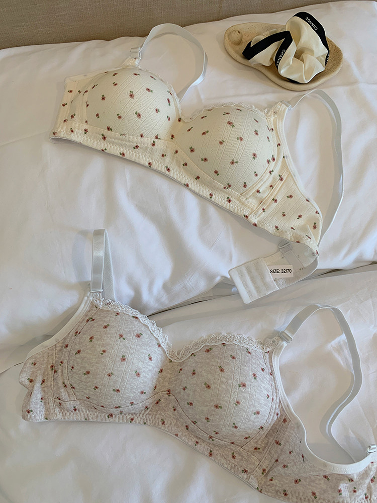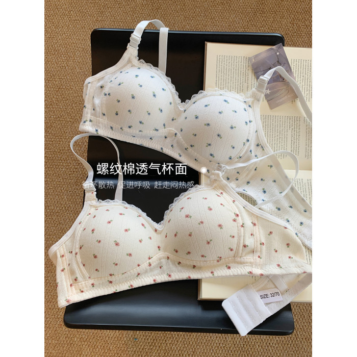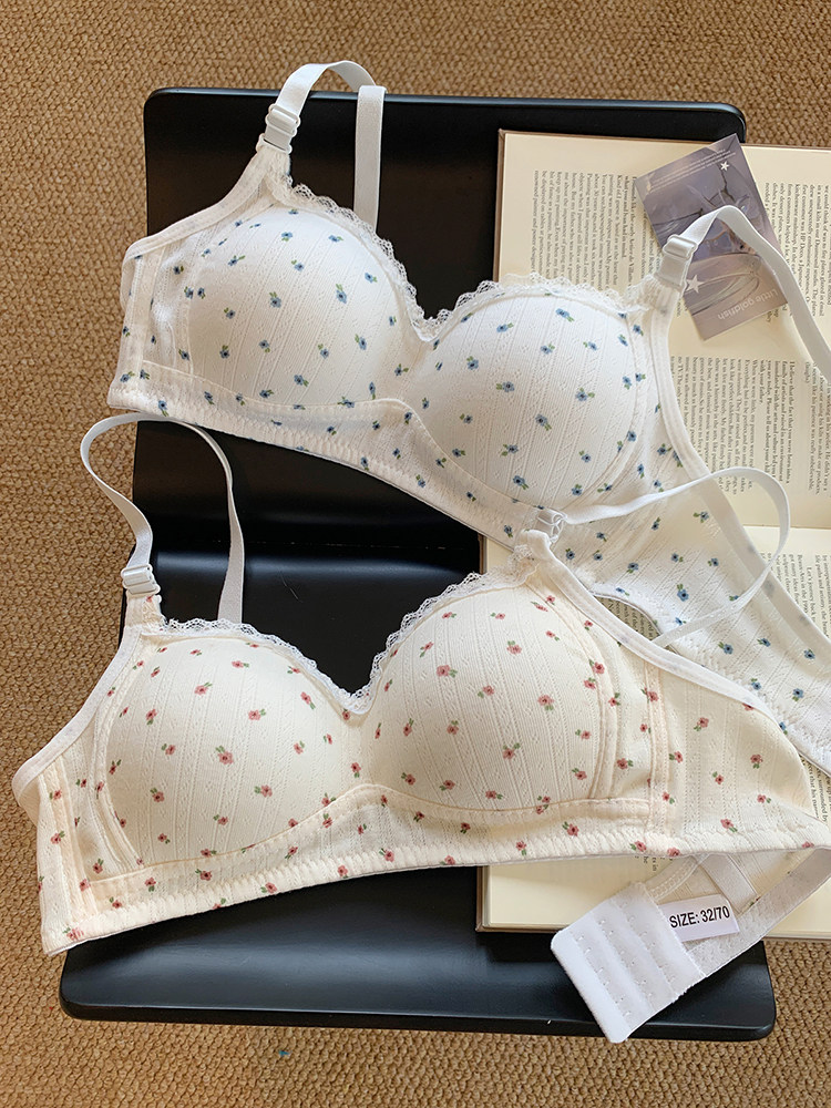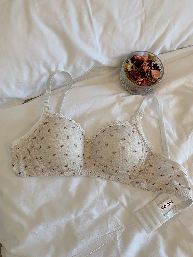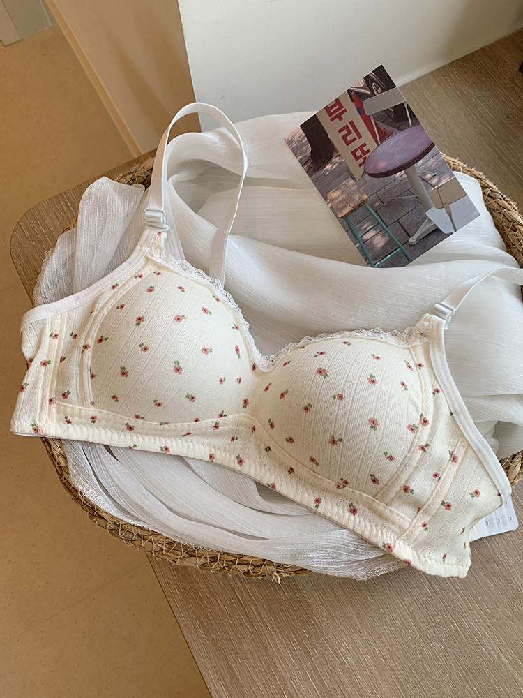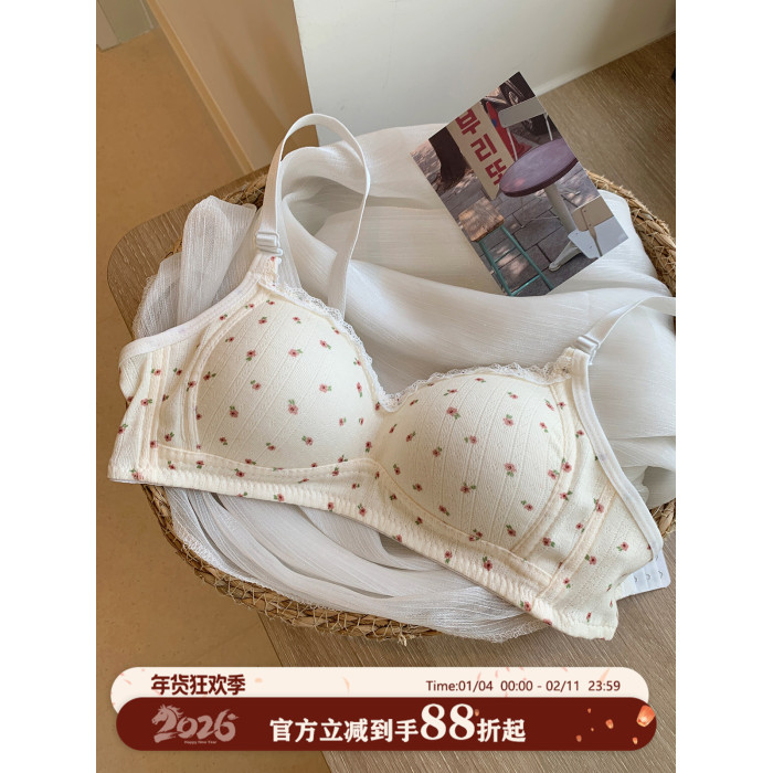 馨幫幫Bra 法式碎花蕾絲邊內衣女小胸聚攏無鋼圈防下垂透氣文胸罩