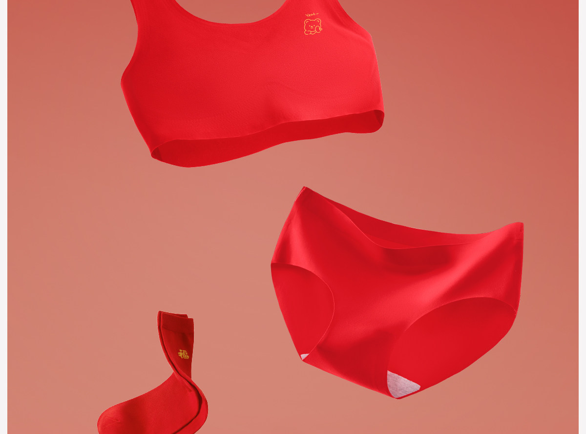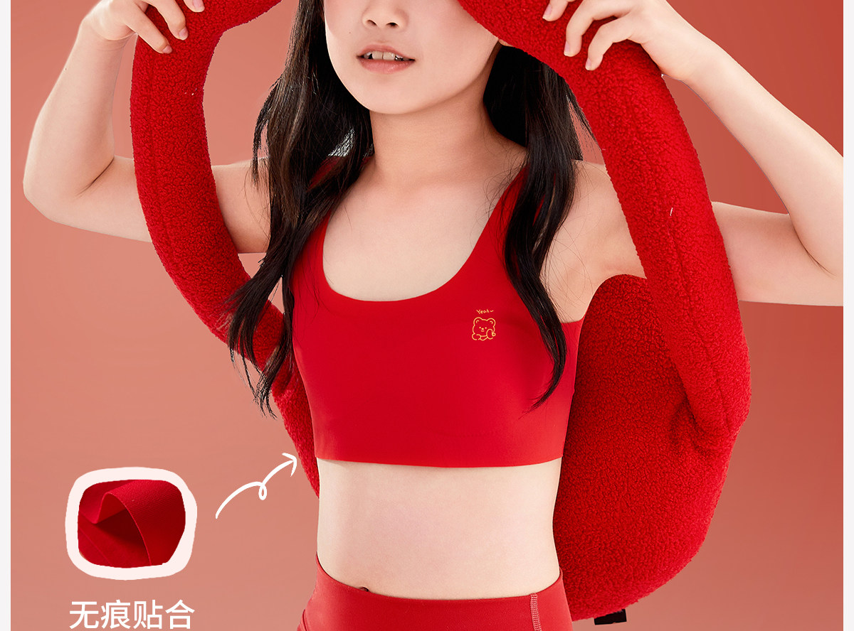 女大童本命年發育期紅色內衣套裝蛇年12嵗女童內褲小學生背心文胸