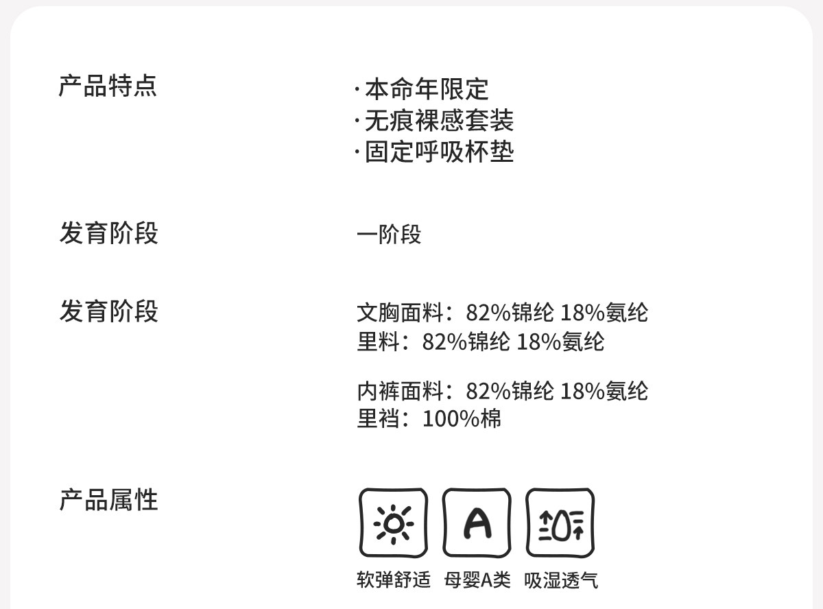 | 文胸風格 | 少女 |