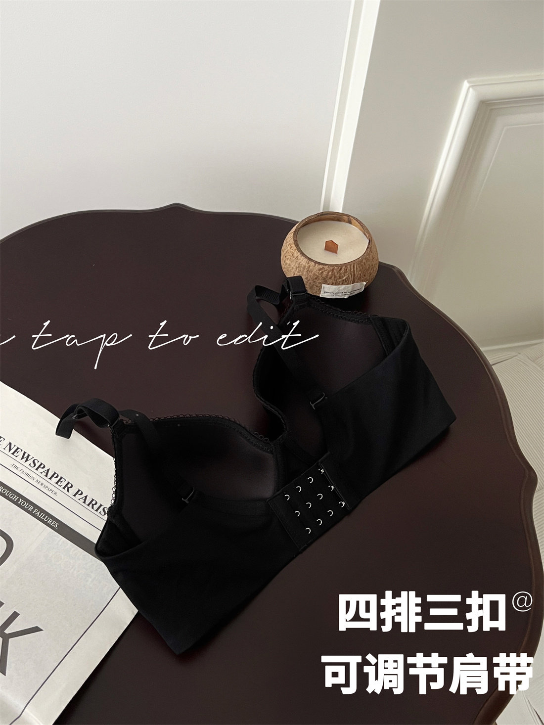 黑提維C!大胸顯小內衣女無痕聚攏防垂調整型軟鋼圈大碼文胸罩薄