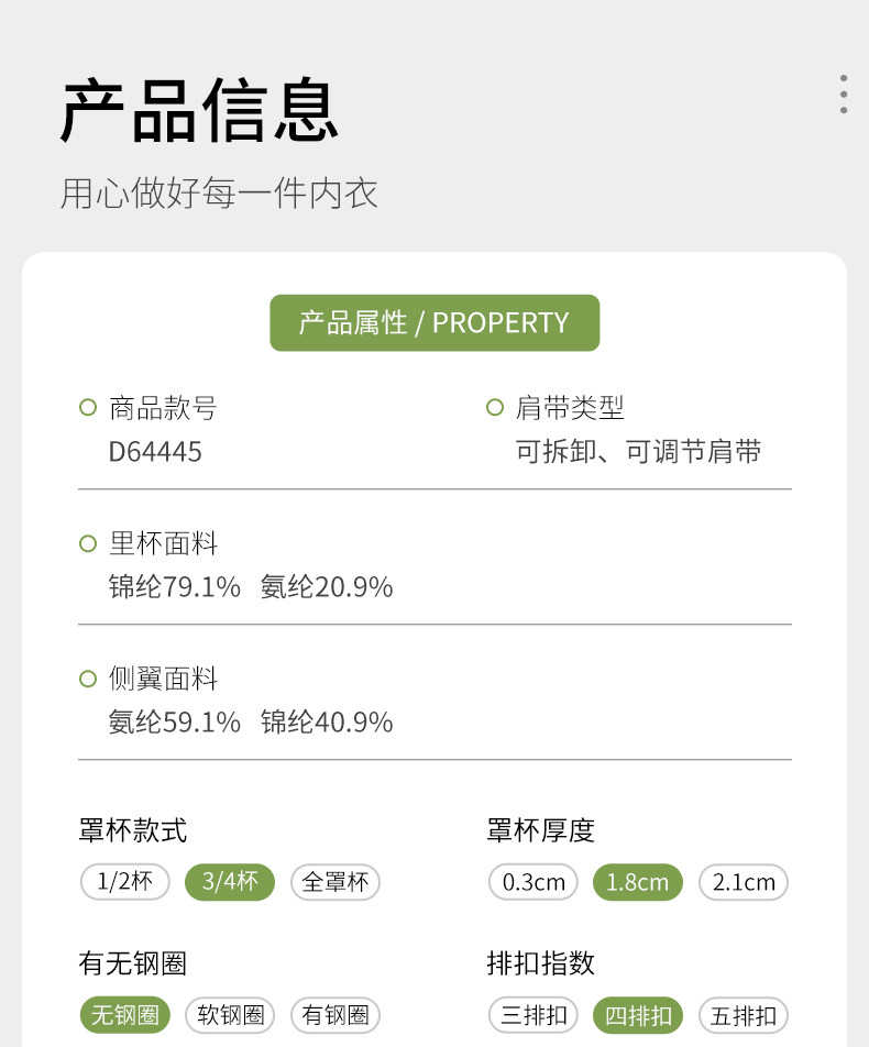 | 罩杯裡料成分含量 | 81%(含)-95%(含) |