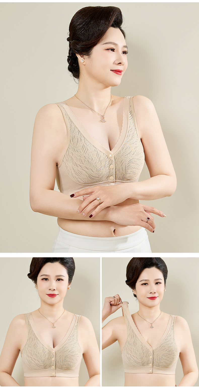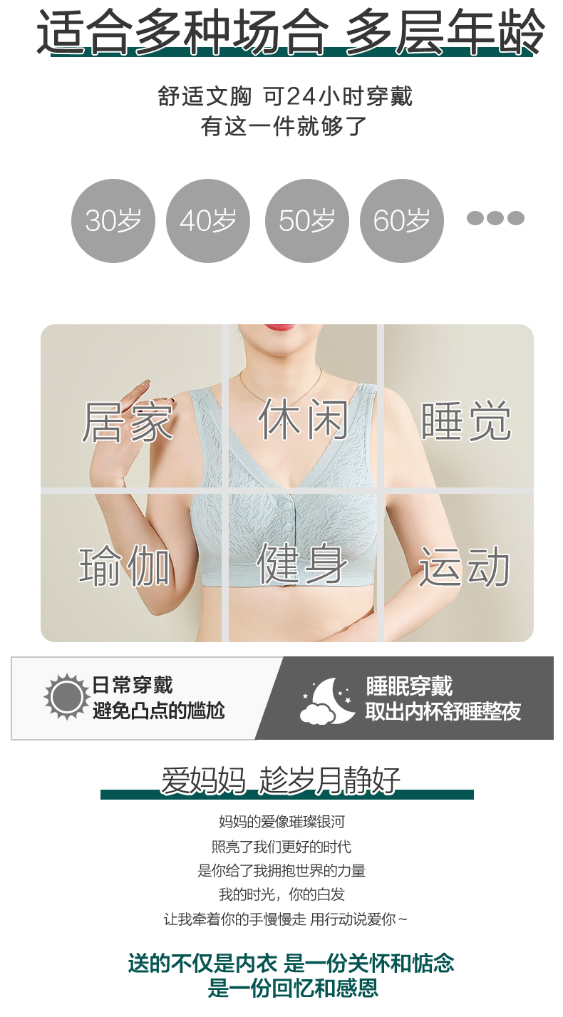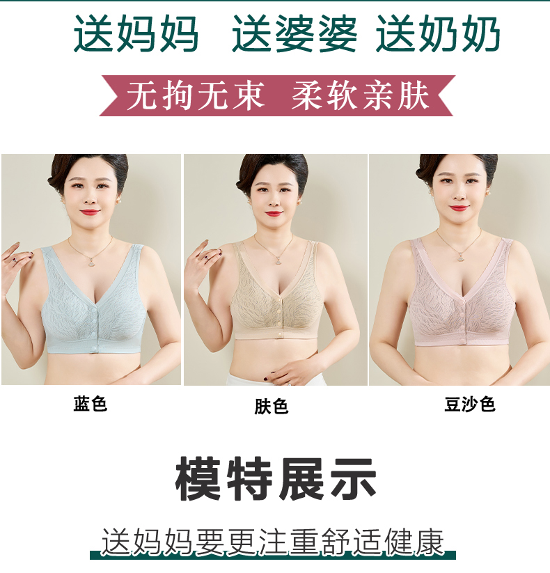 貓人內衣女純棉美背心式無鋼圈聚攏中老年人婦女收副乳前釦文胸罩