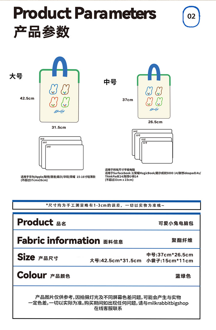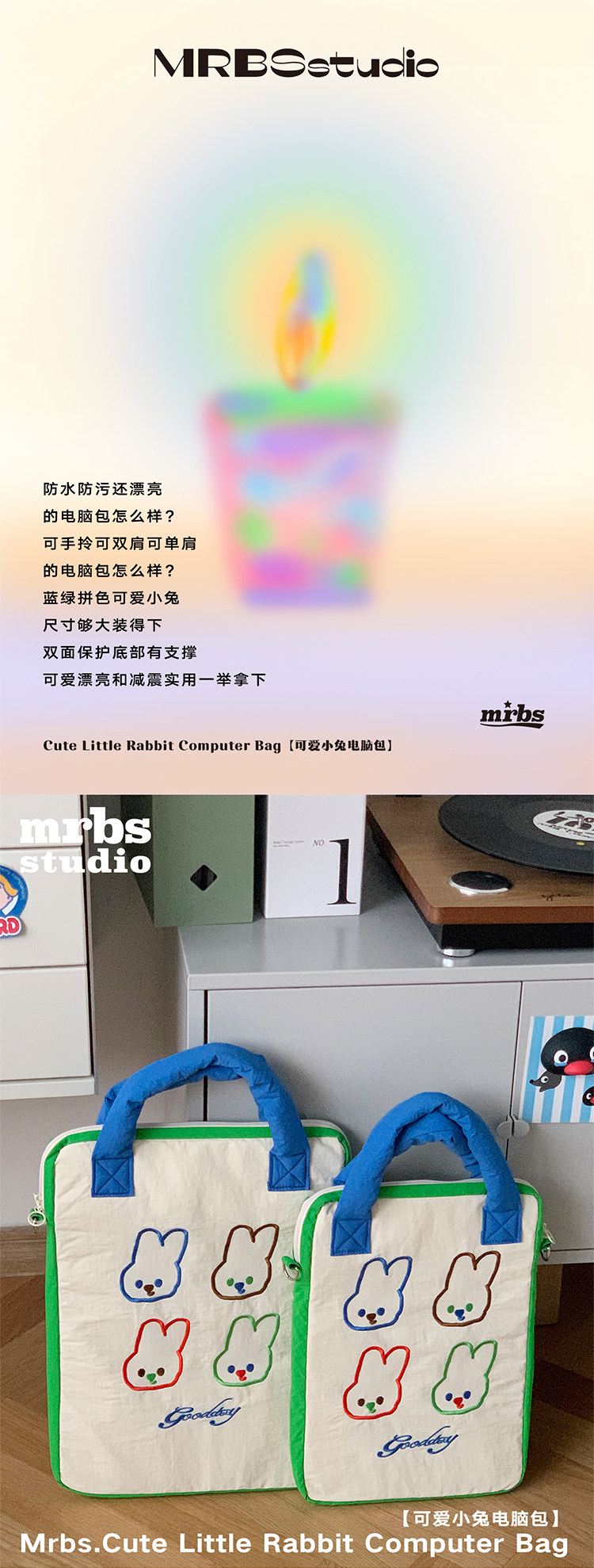 MRBS 電腦包大容量 減震防水防汙 原創可愛小兔電腦包 手提單肩雙肩(大小號)
