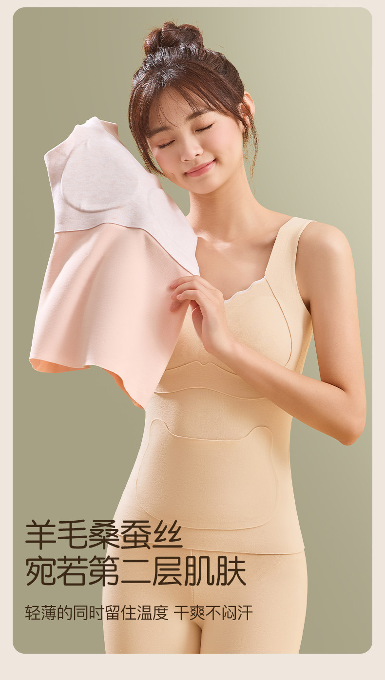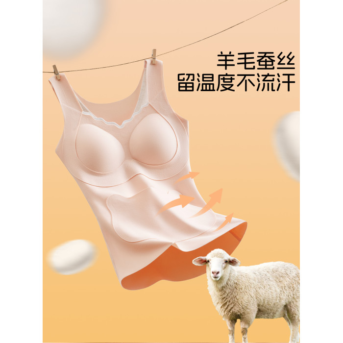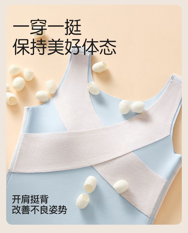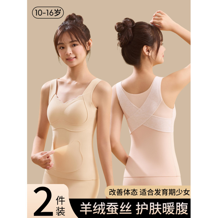 女童德絨保暖背心2025新款無痕羊絨蠶絲帶胸墊內衣初中學生秋冬季