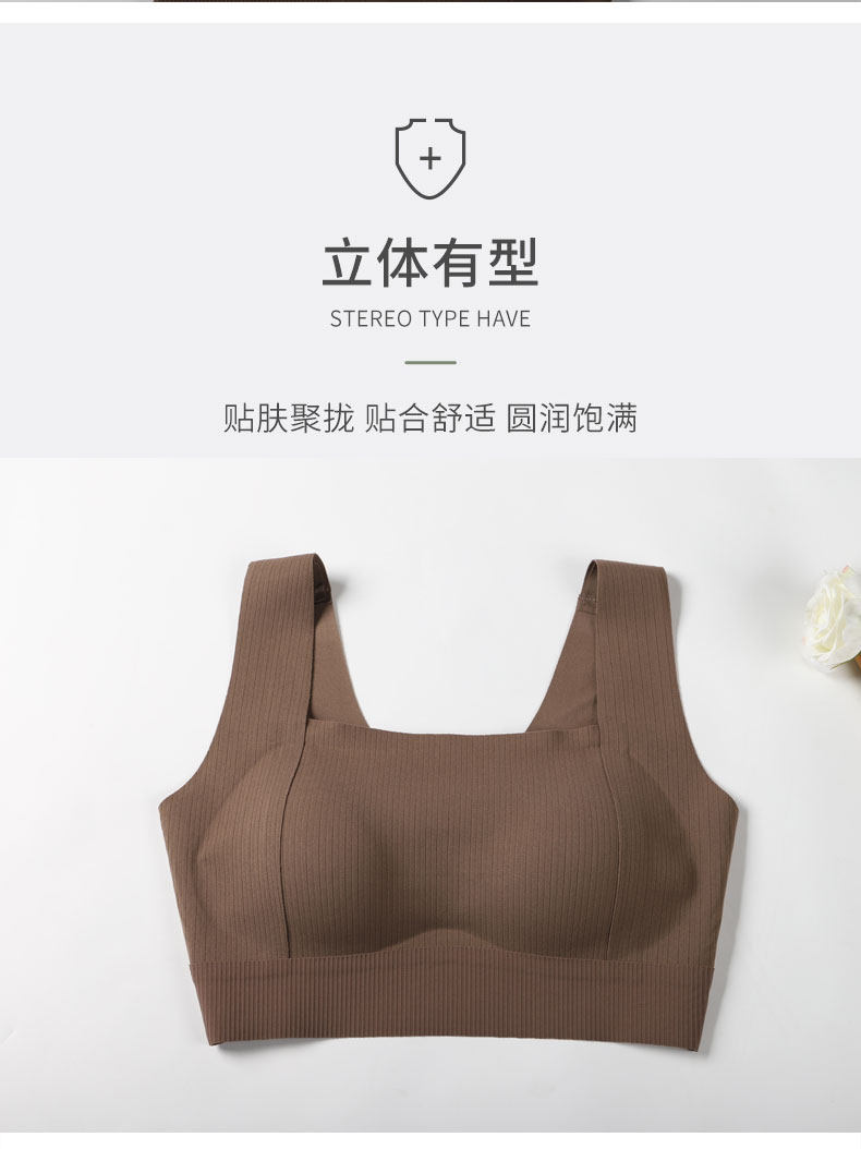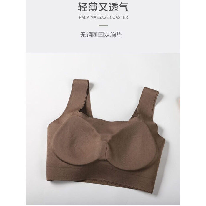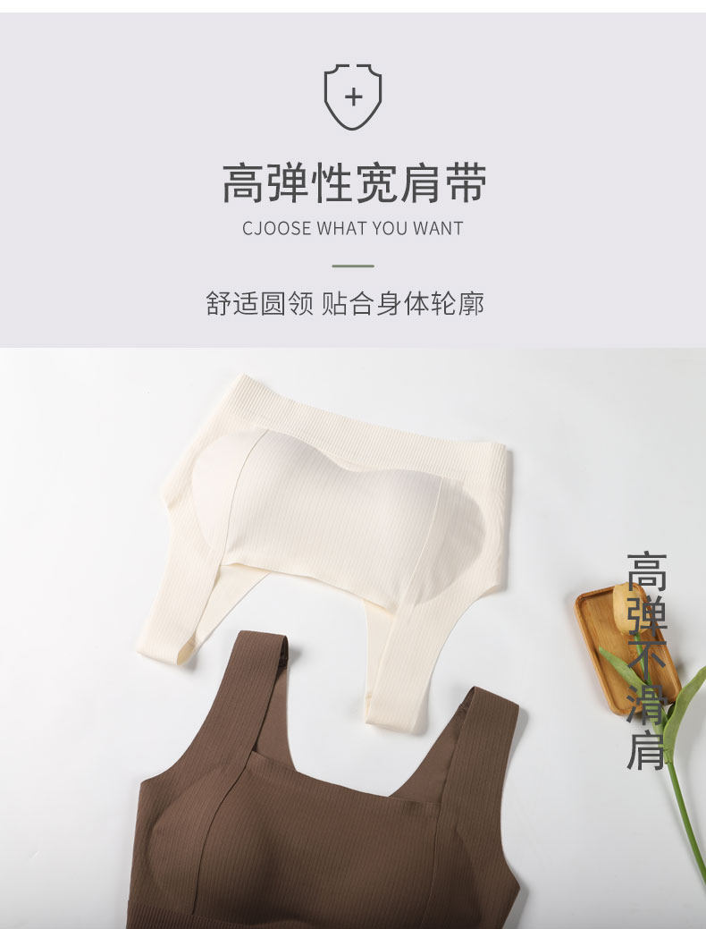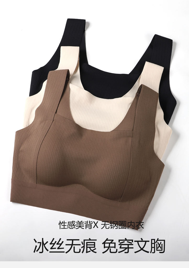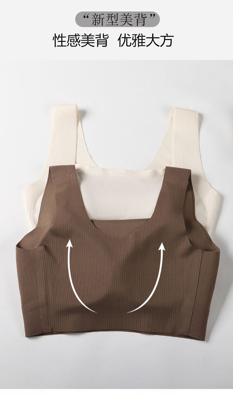 無鋼圈無痕美背內衣胸墊一體背心小胸聚攏運動文胸大碼防走光打底