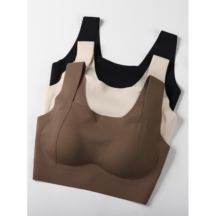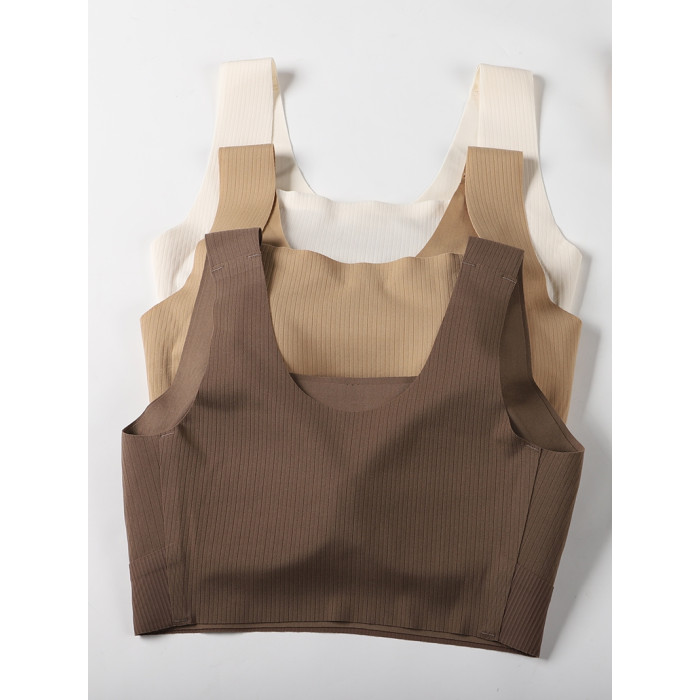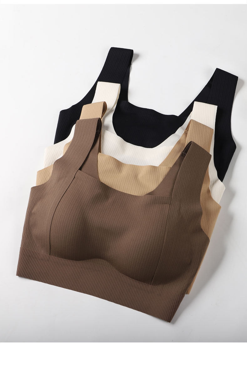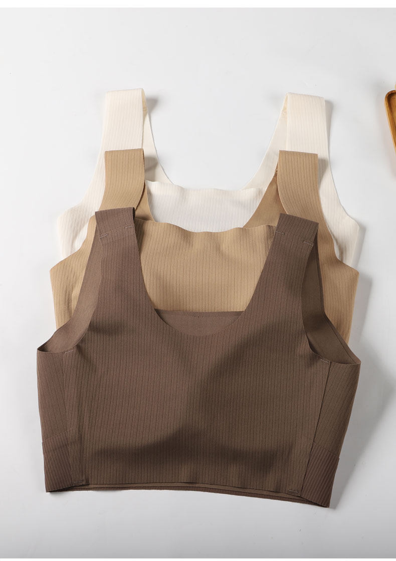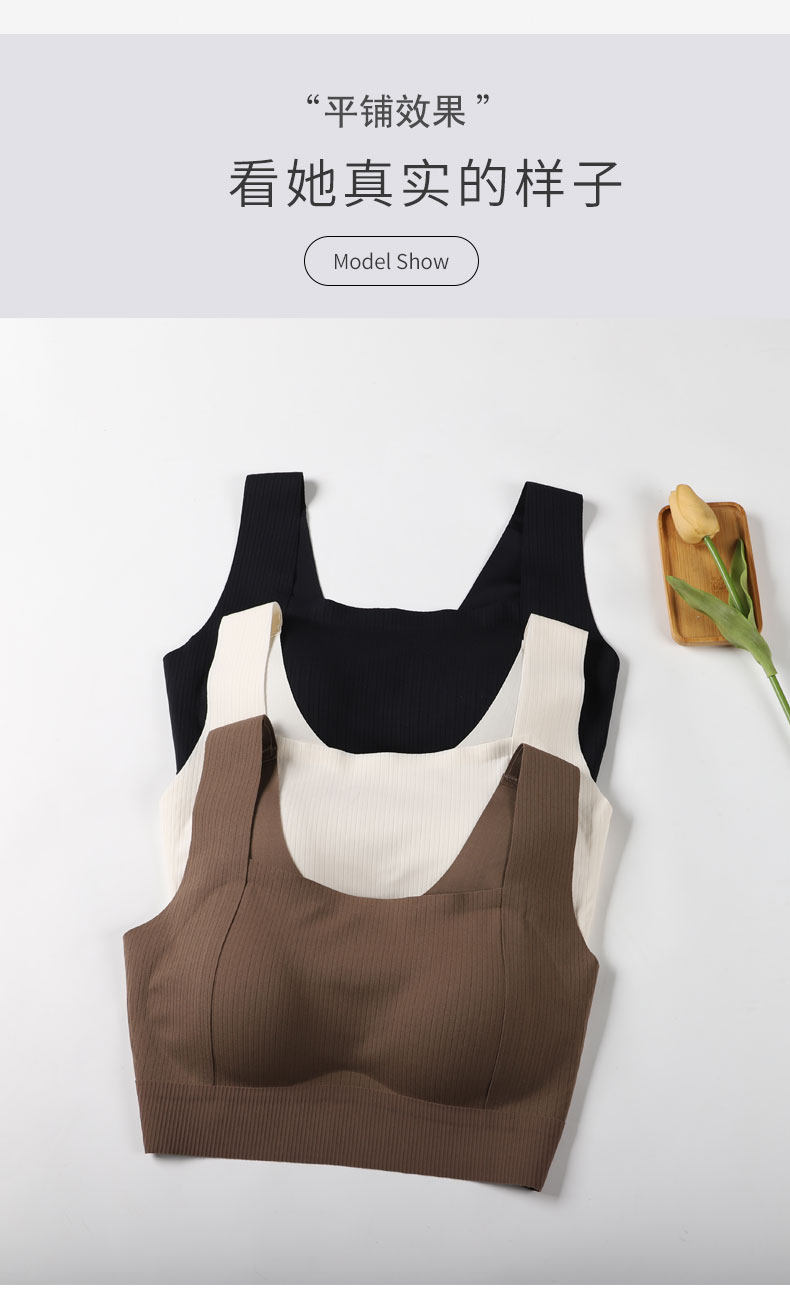 無鋼圈無痕美背內衣胸墊一體背心小胸聚攏運動文胸大碼防走光打底