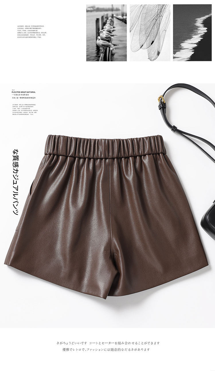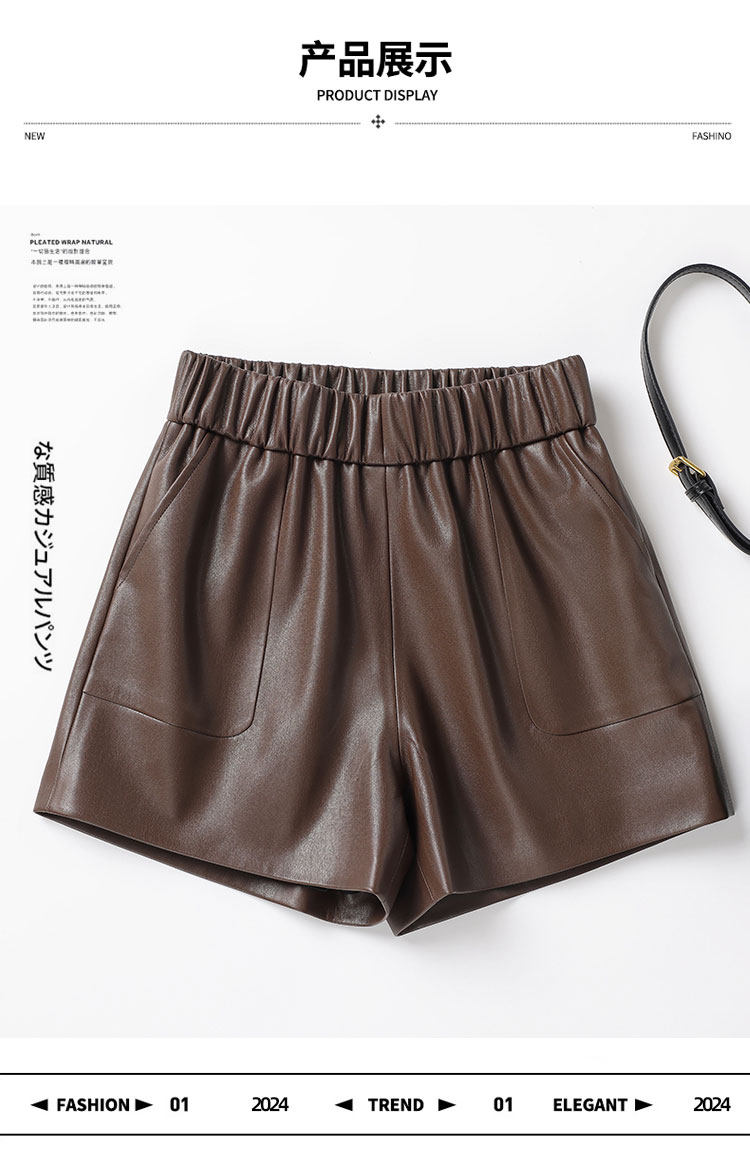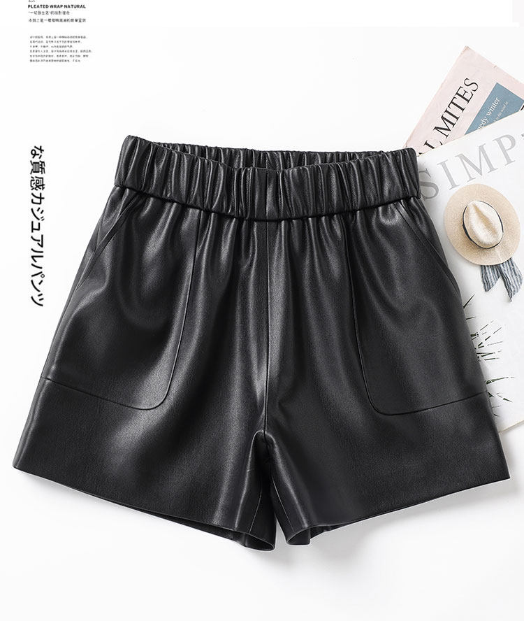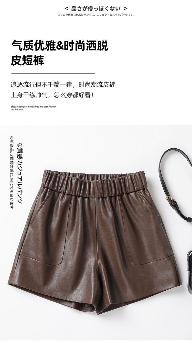 海甯真皮短褲濶腿寬鬆顯瘦羊皮皮短褲2025秋百搭a字綿羊皮女皮褲