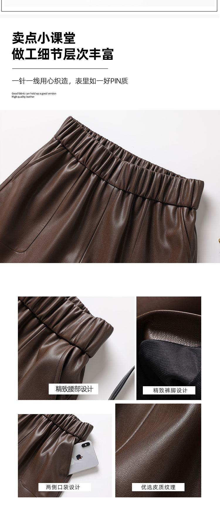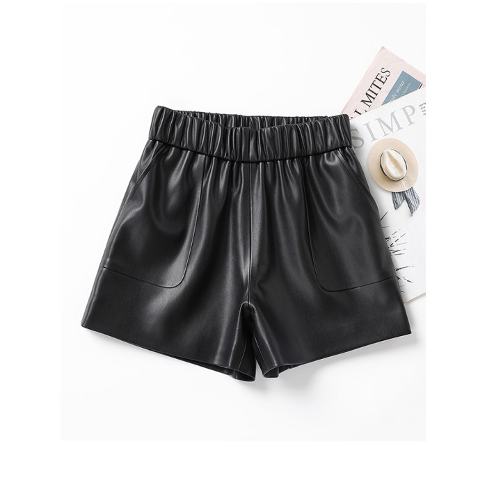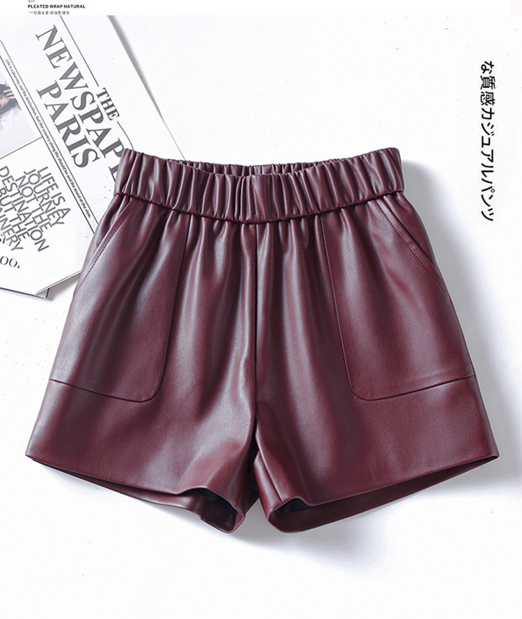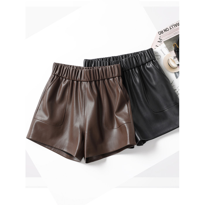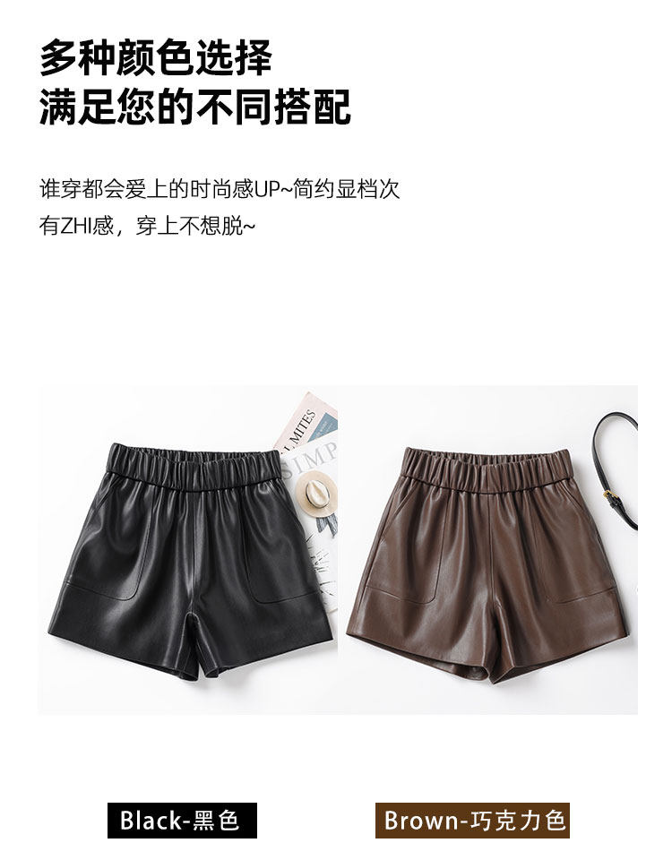 海甯真皮短褲濶腿寬鬆顯瘦羊皮皮短褲2025秋百搭a字綿羊皮女皮褲