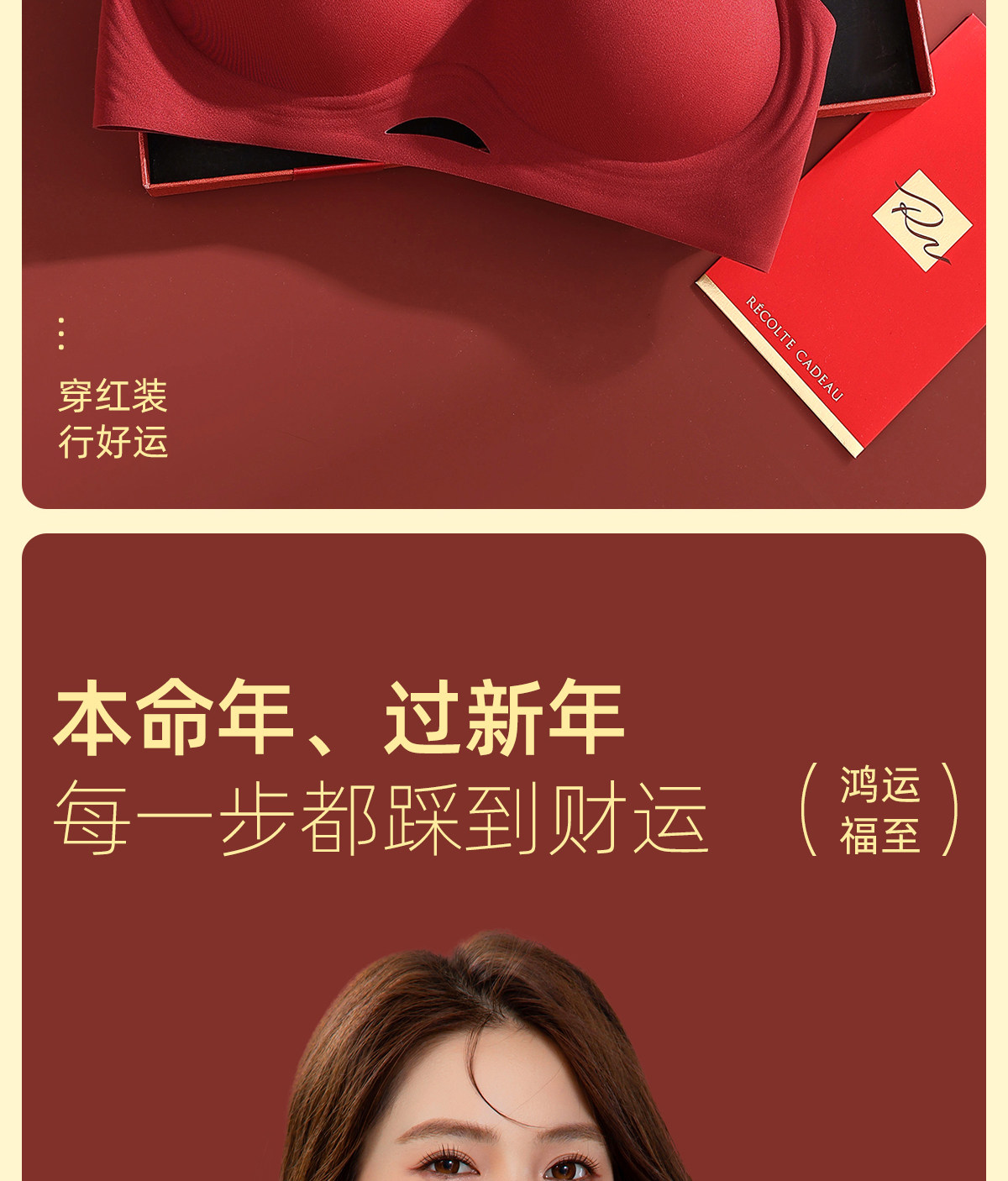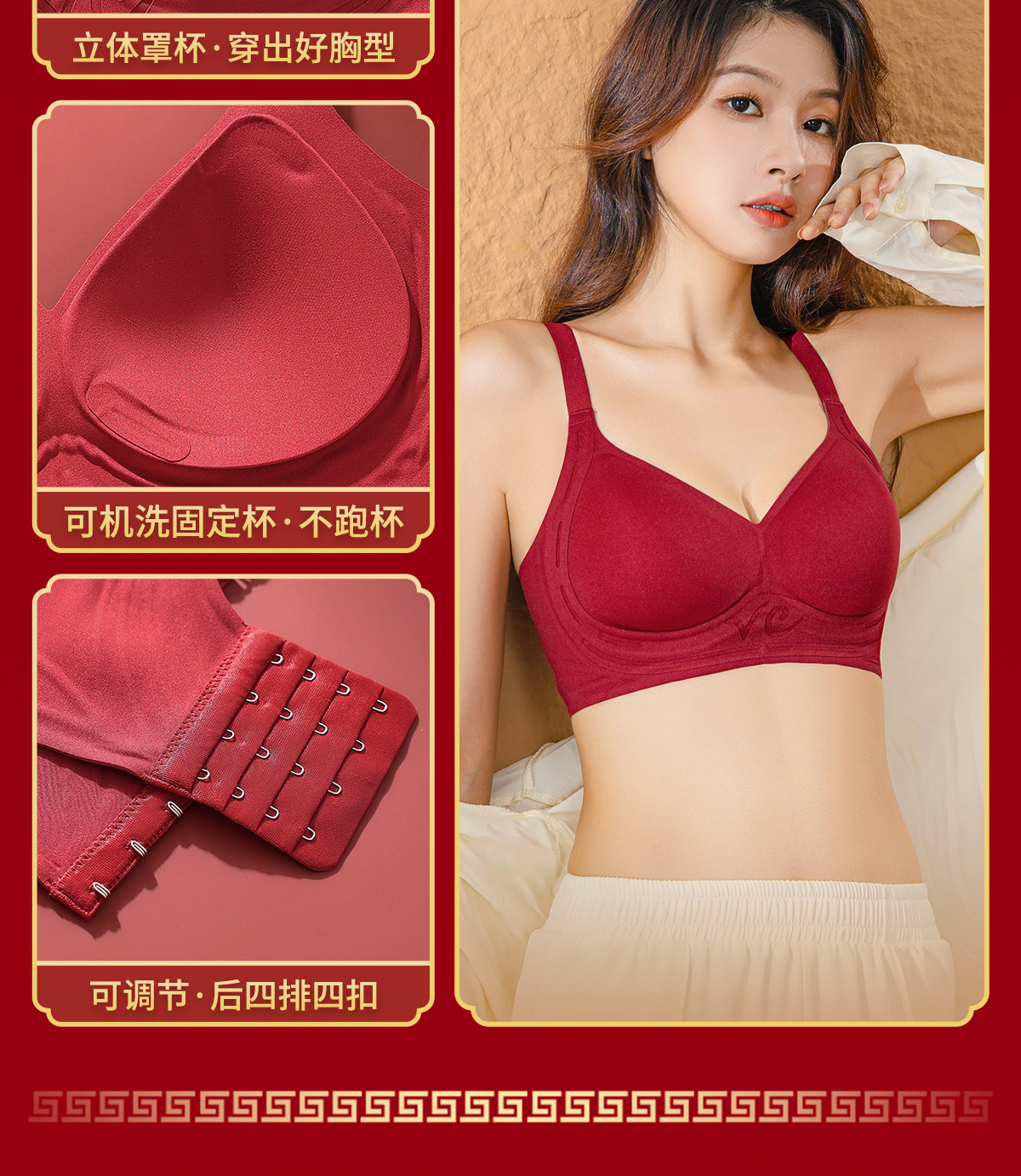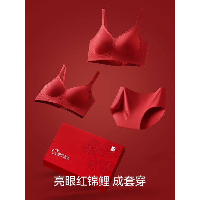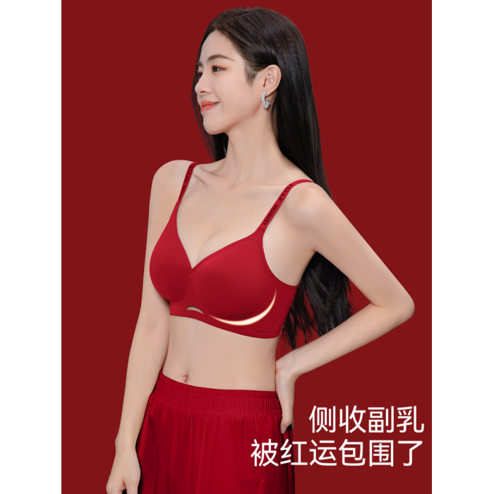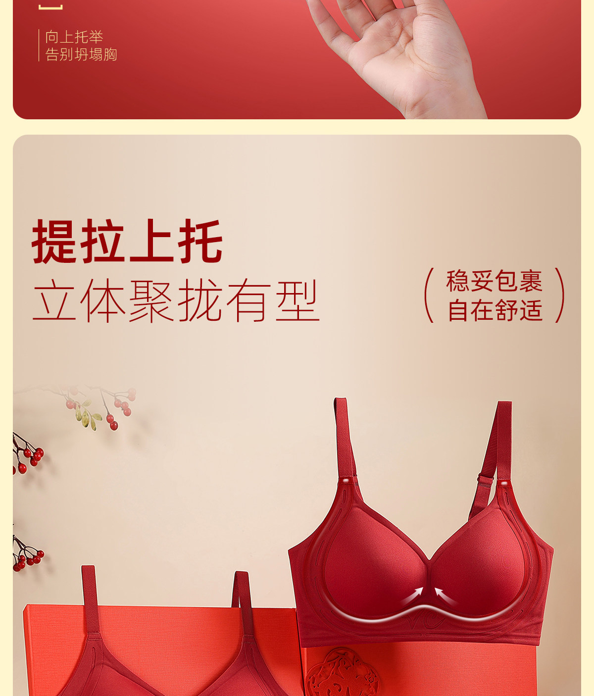 都市麗人內衣套裝本命年紅女反重力提拉小胸聚攏無鋼圈收副乳文胸