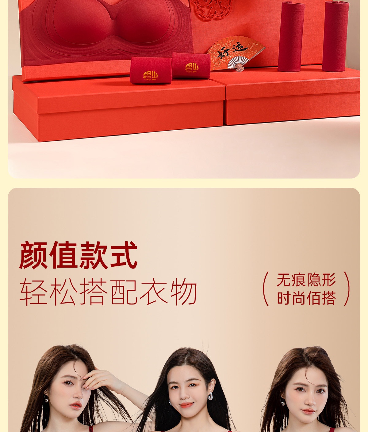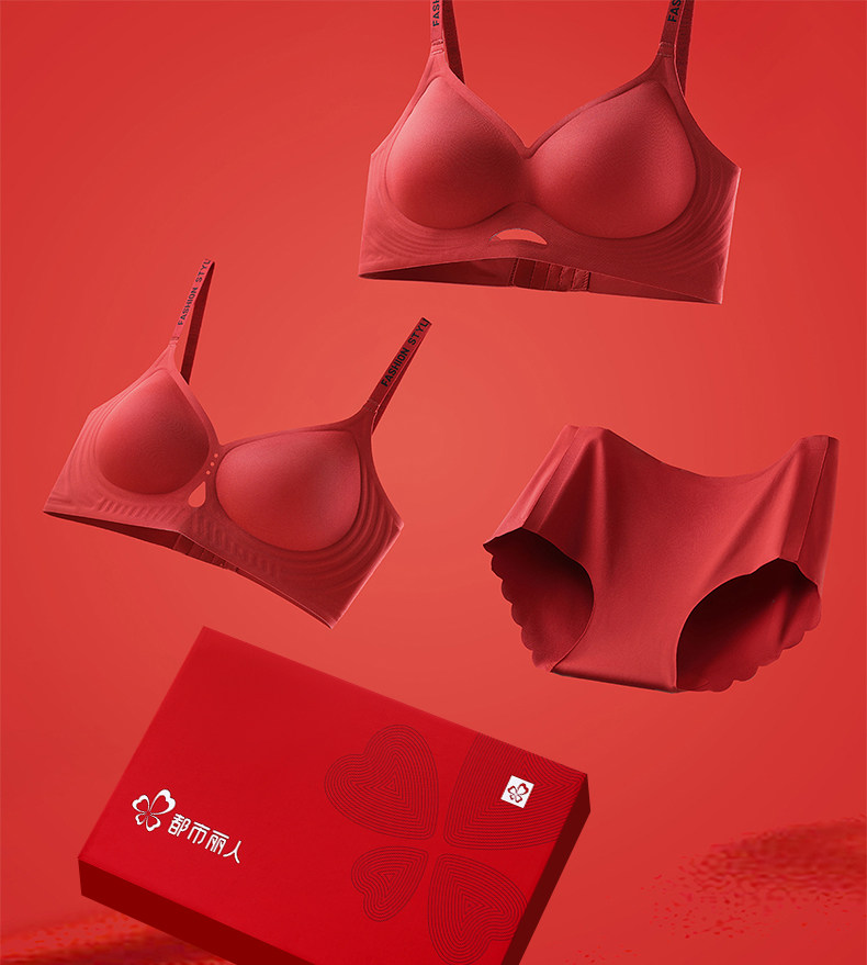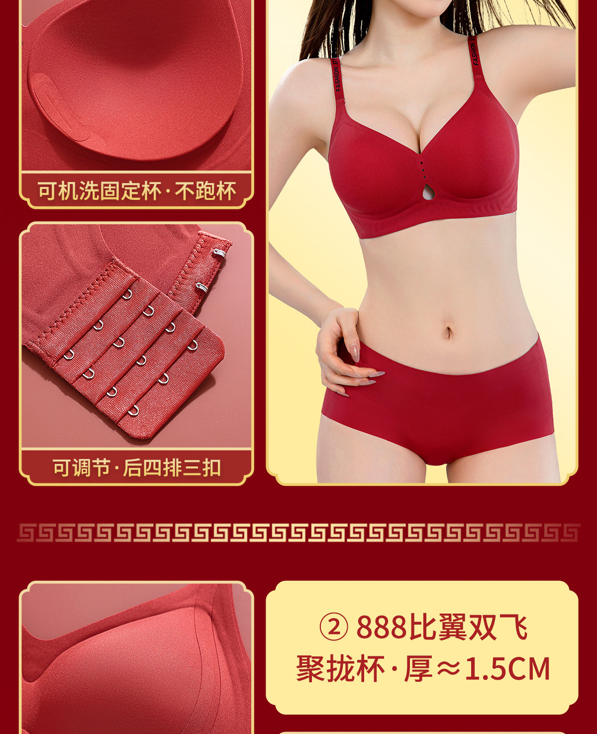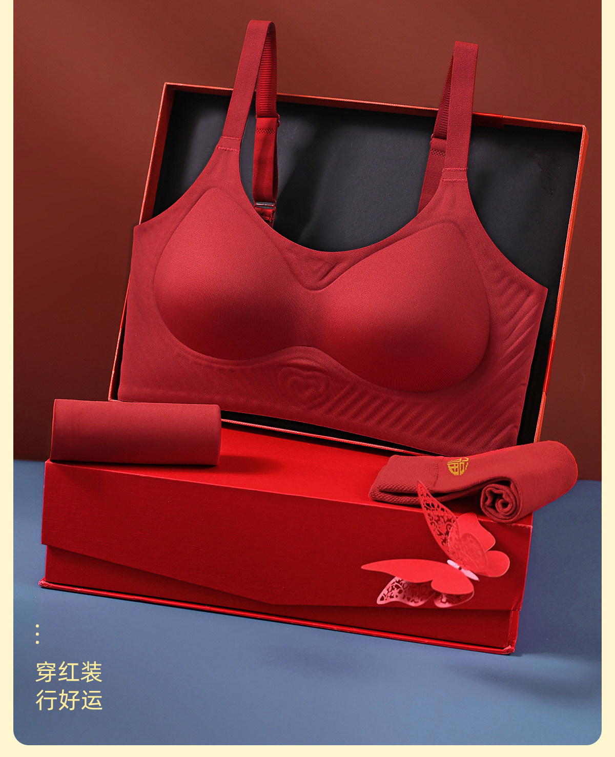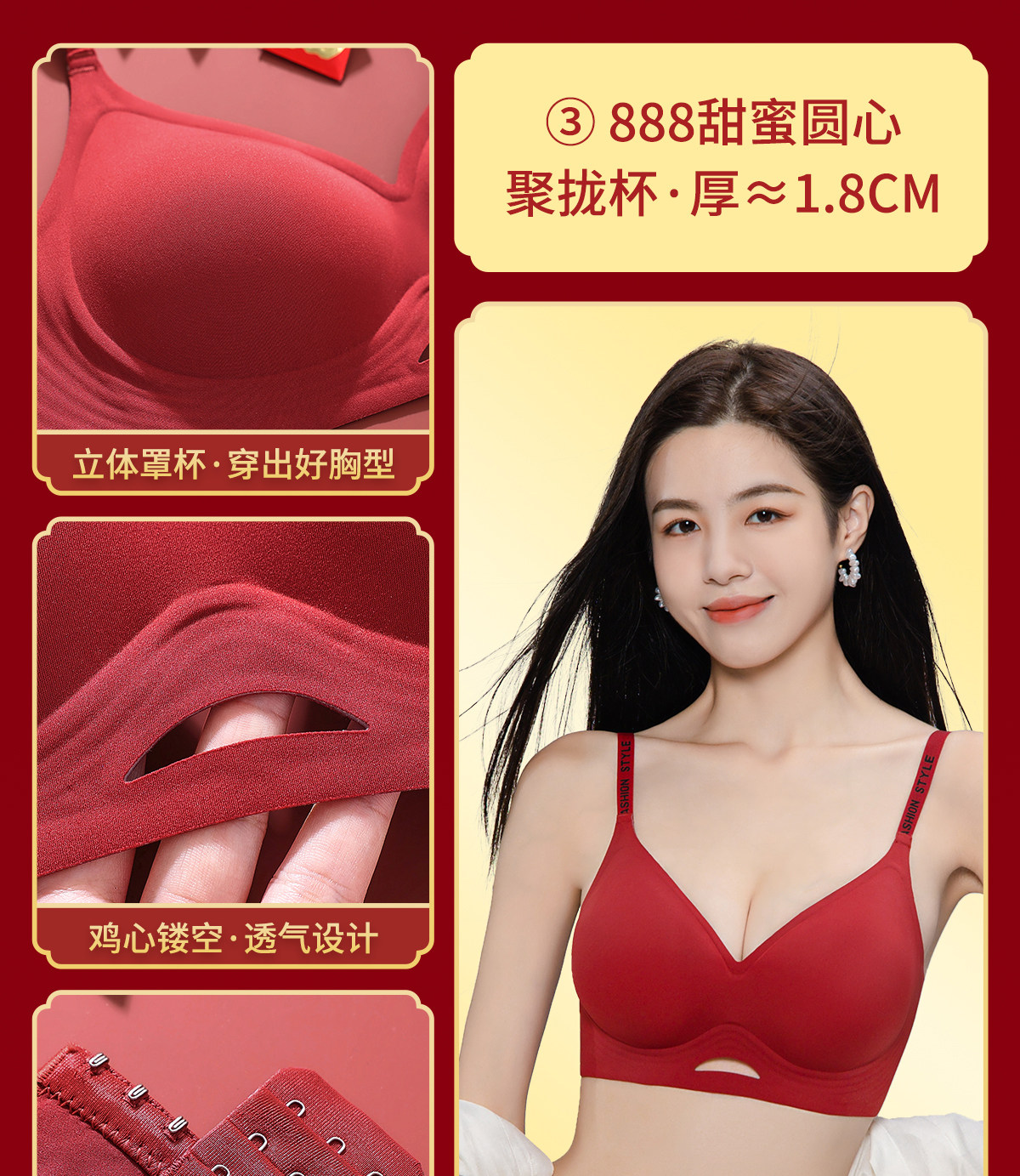 都市麗人內衣套裝本命年紅女反重力提拉小胸聚攏無鋼圈收副乳文胸
