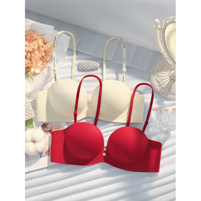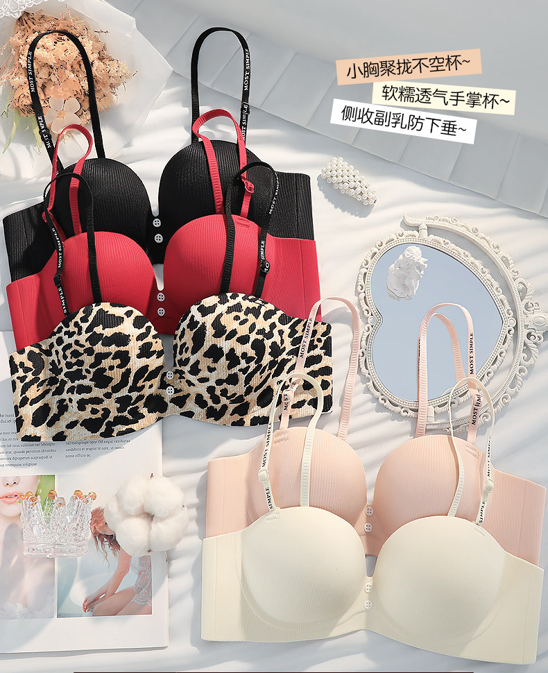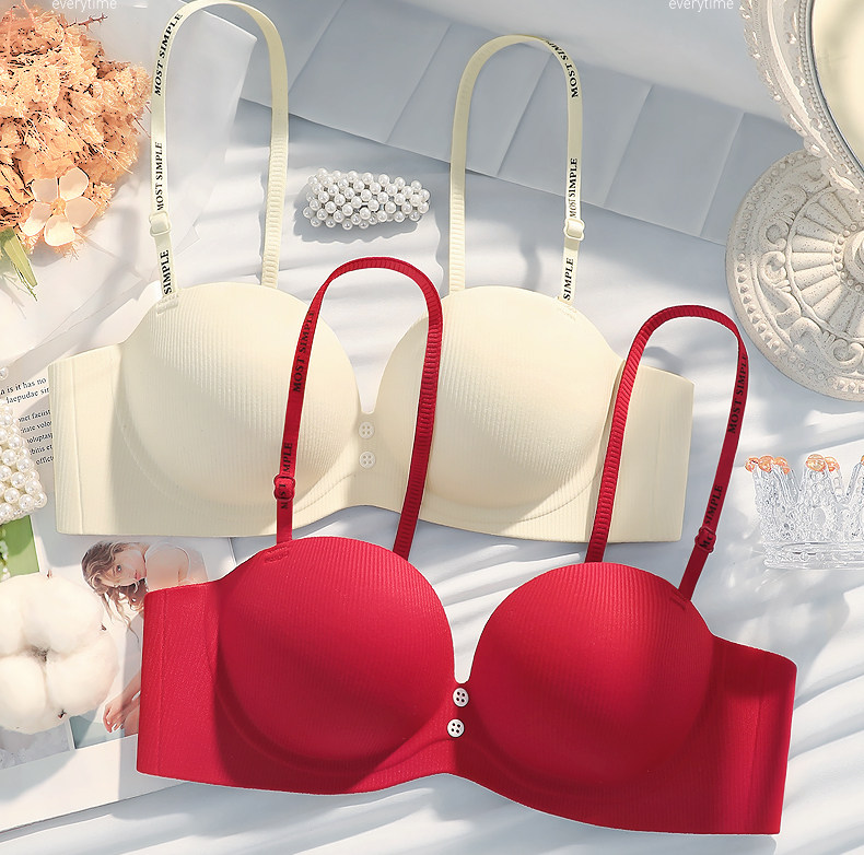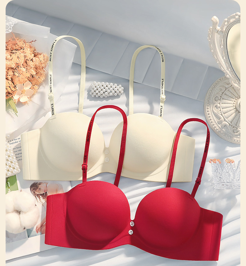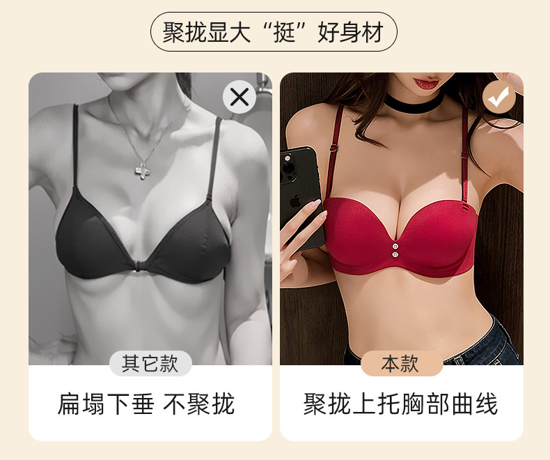 紅色本命年半杯小胸聚攏內衣女無鋼圈上托不空杯防下垂文胸罩套裝