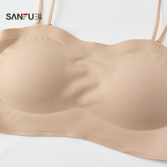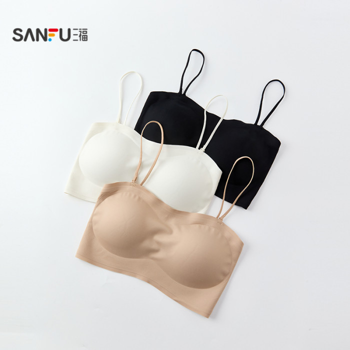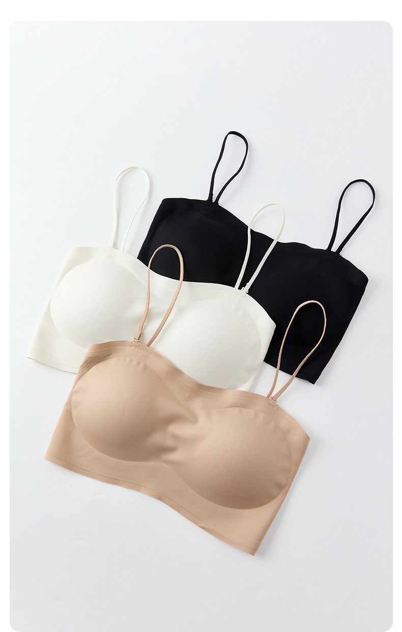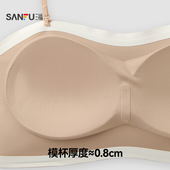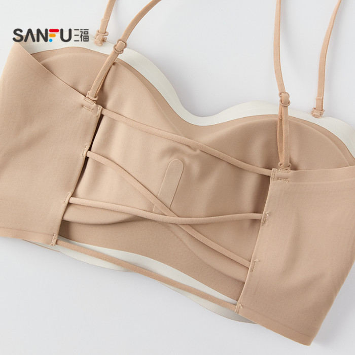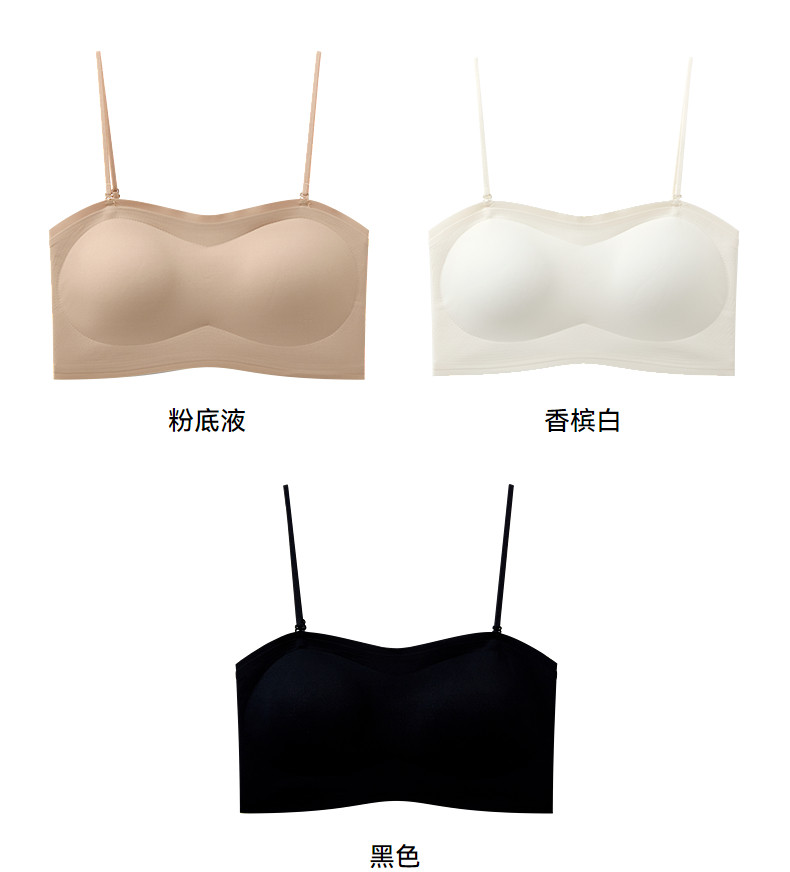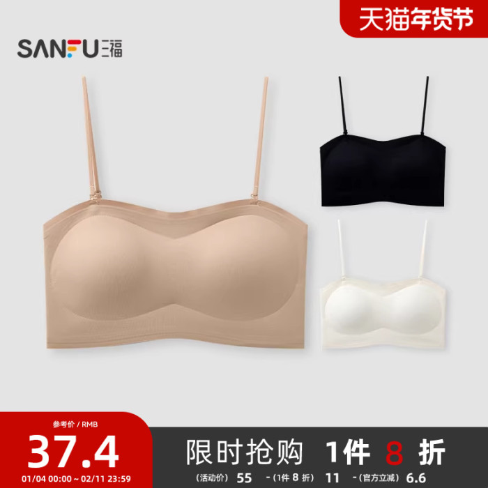 三福裹胸美背背心一體式可外露細肩帶聚攏文胸無感粉底液女生內衣