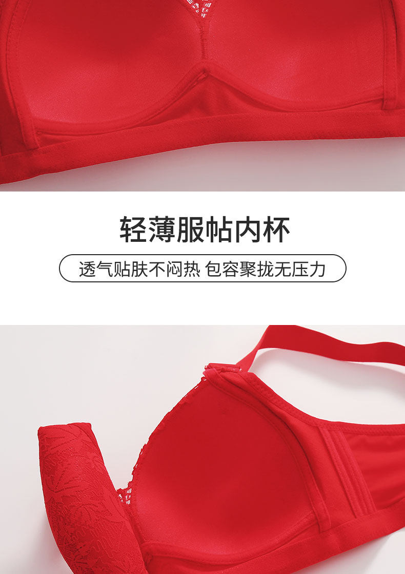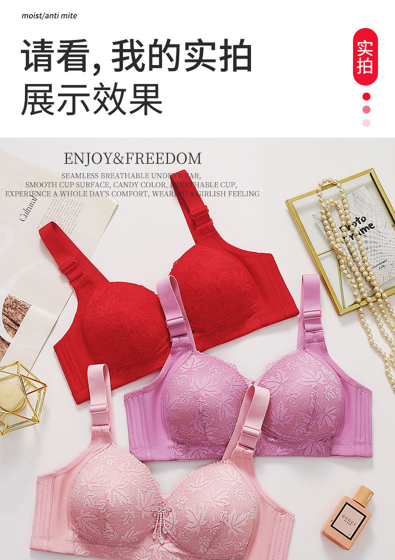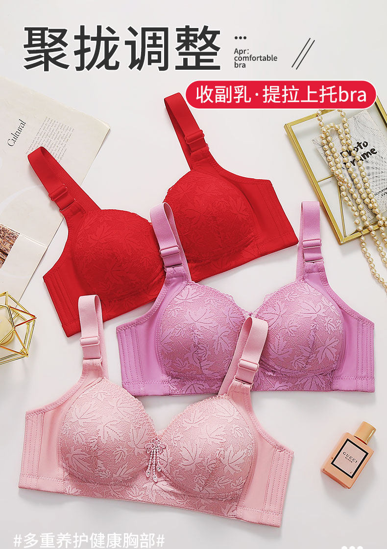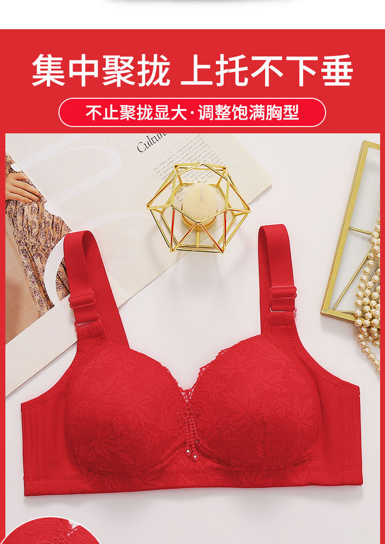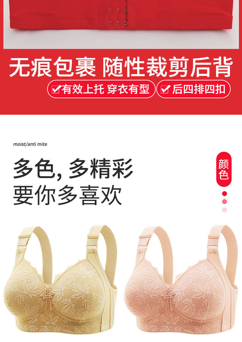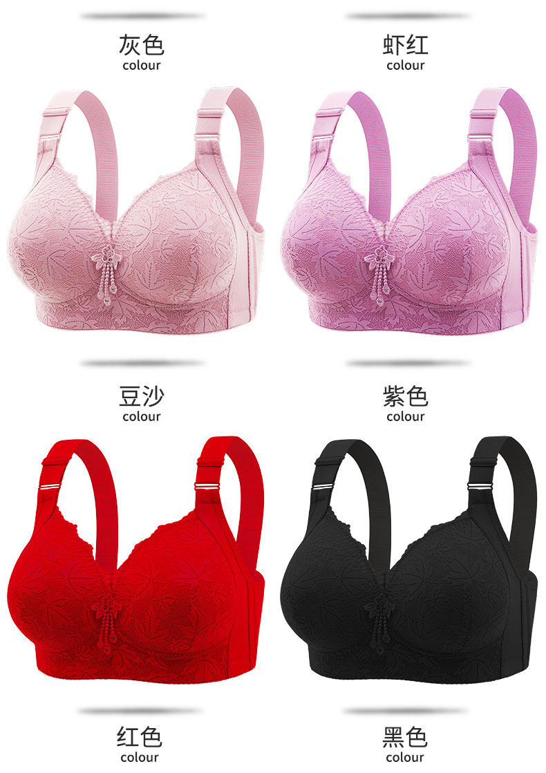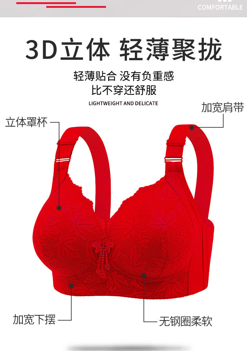 女士大碼薄款無鋼圈媽媽內衣大胸顯小聚攏舒適側收副乳中老年文胸