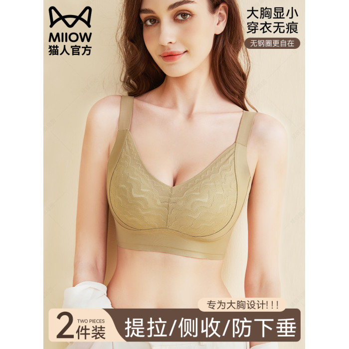 貓人內衣女士大胸顯小提拉防下垂收副乳無鋼圈大碼文胸罩2026新款