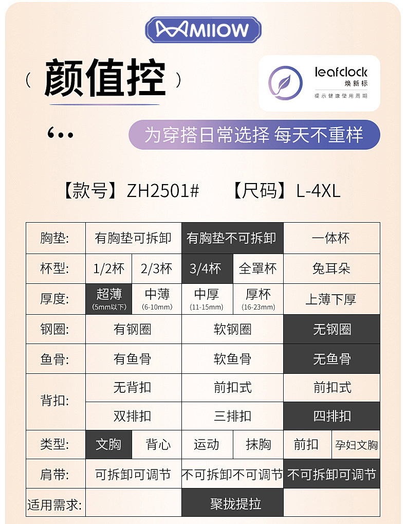 | 罩杯款式 | 3/4罩杯 |