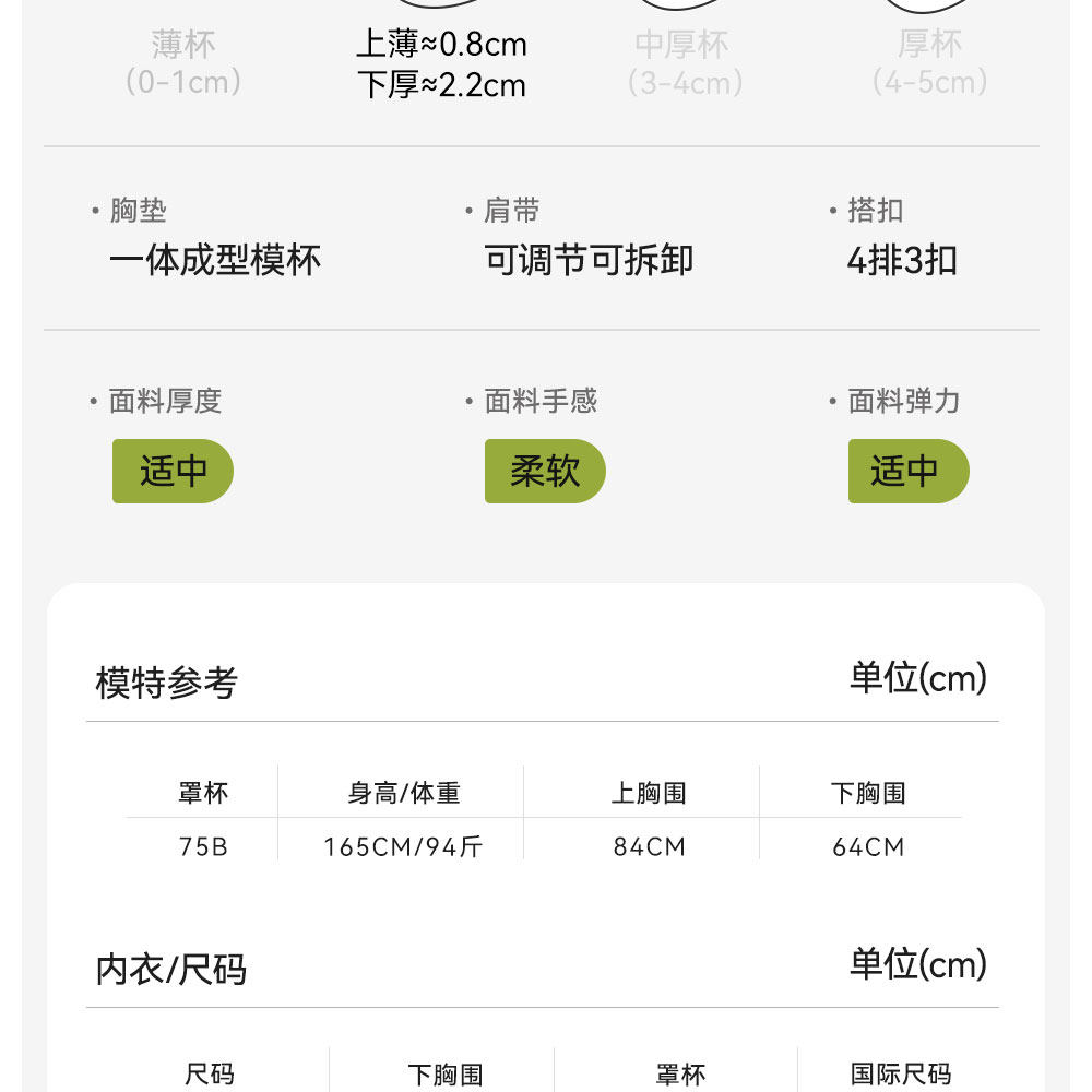 | 罩杯款式 | 3/4罩杯 |