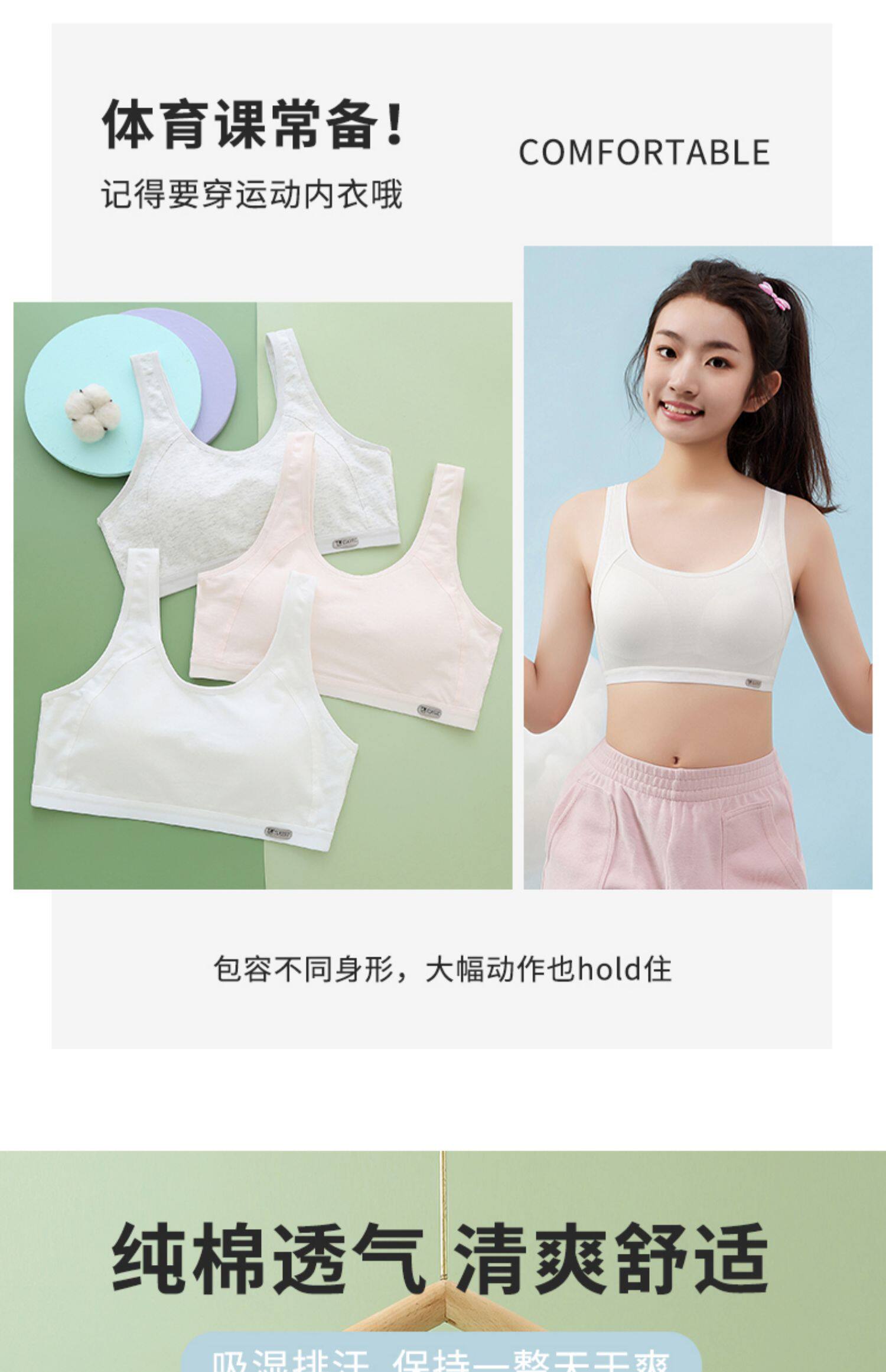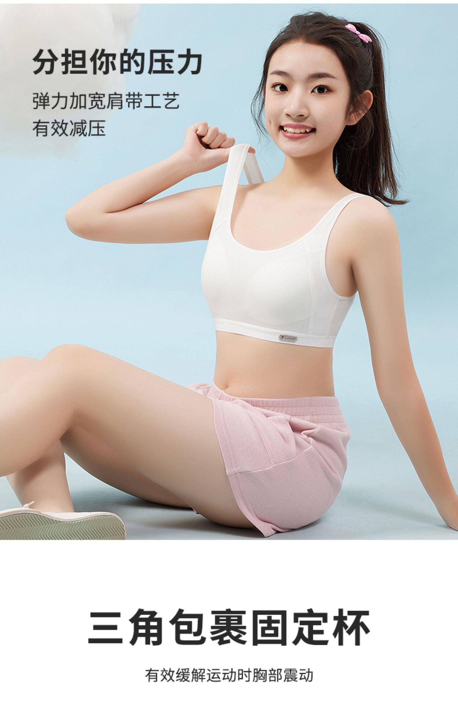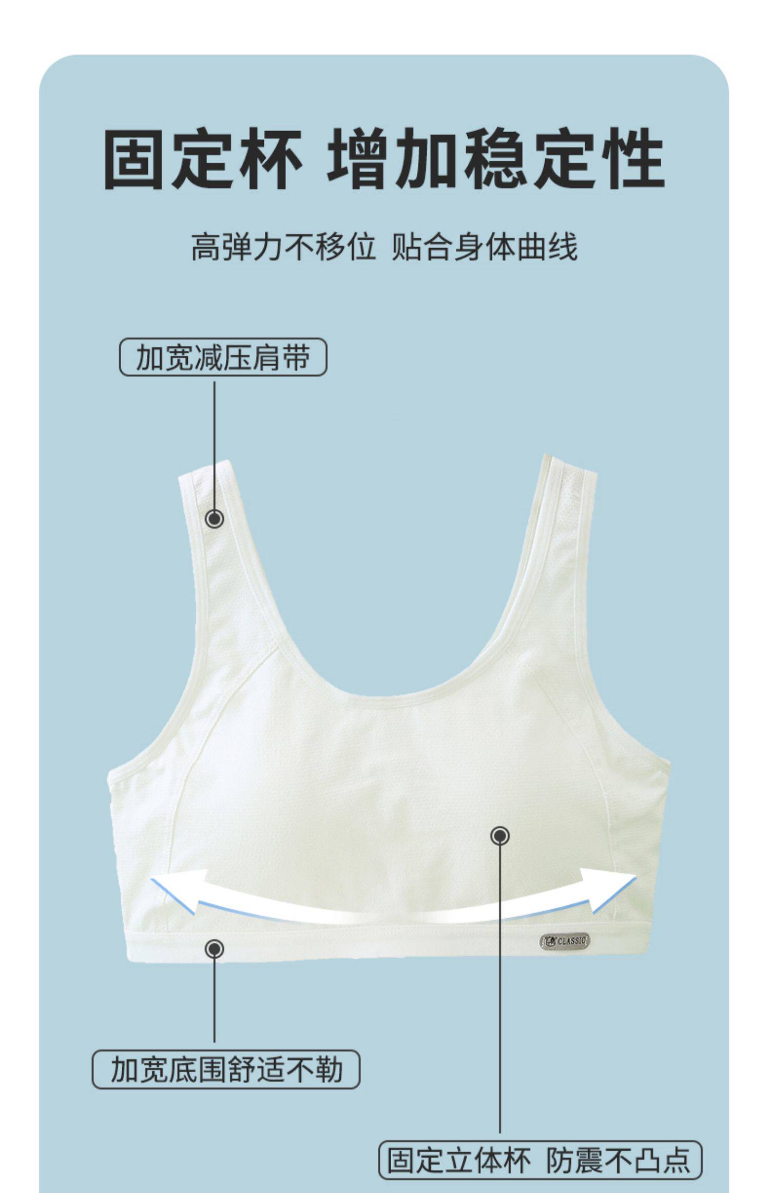 少女文胸小背心初中高中學生青春發育期運動防震跑步純棉女生內衣