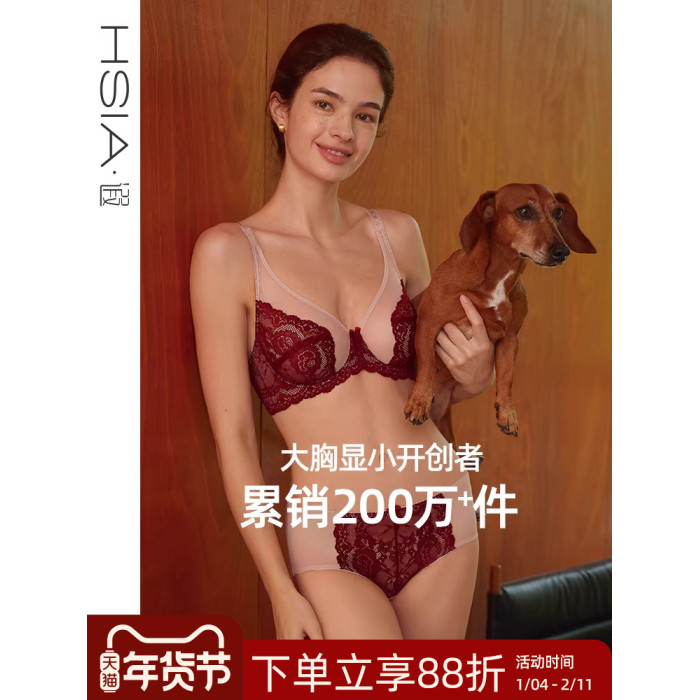 【傾城之戀】遐大胸顯小全罩杯文胸本命年大碼顯瘦蕾絲紅色內衣女
