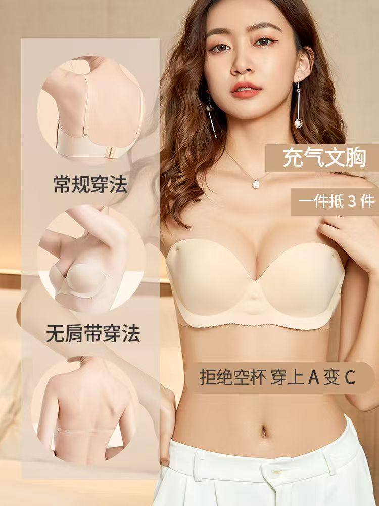 啵啵小姐隱形充氣內衣女小胸聚攏顯大文胸罩無鋼圈胸貼婚紗禮服用