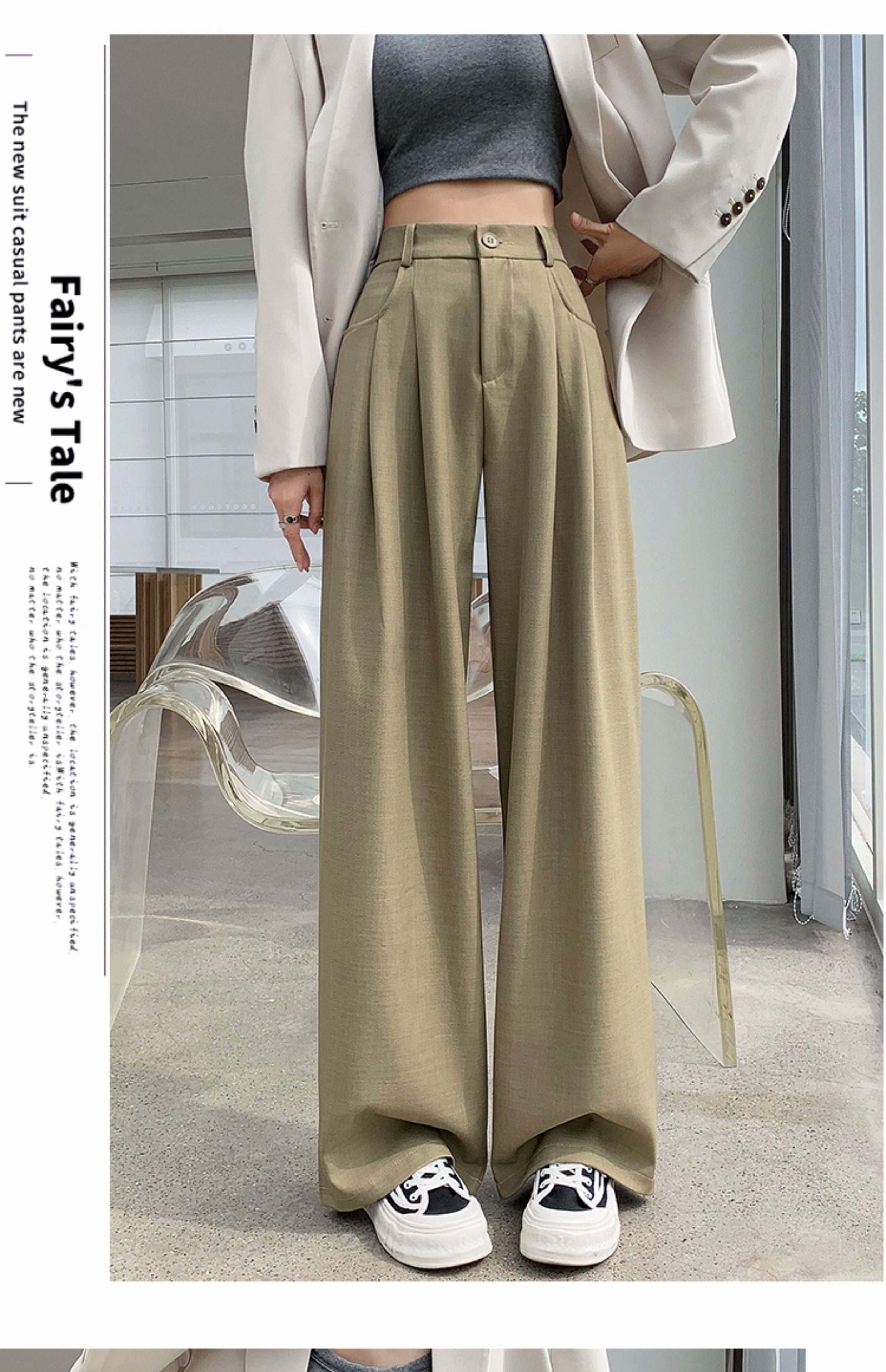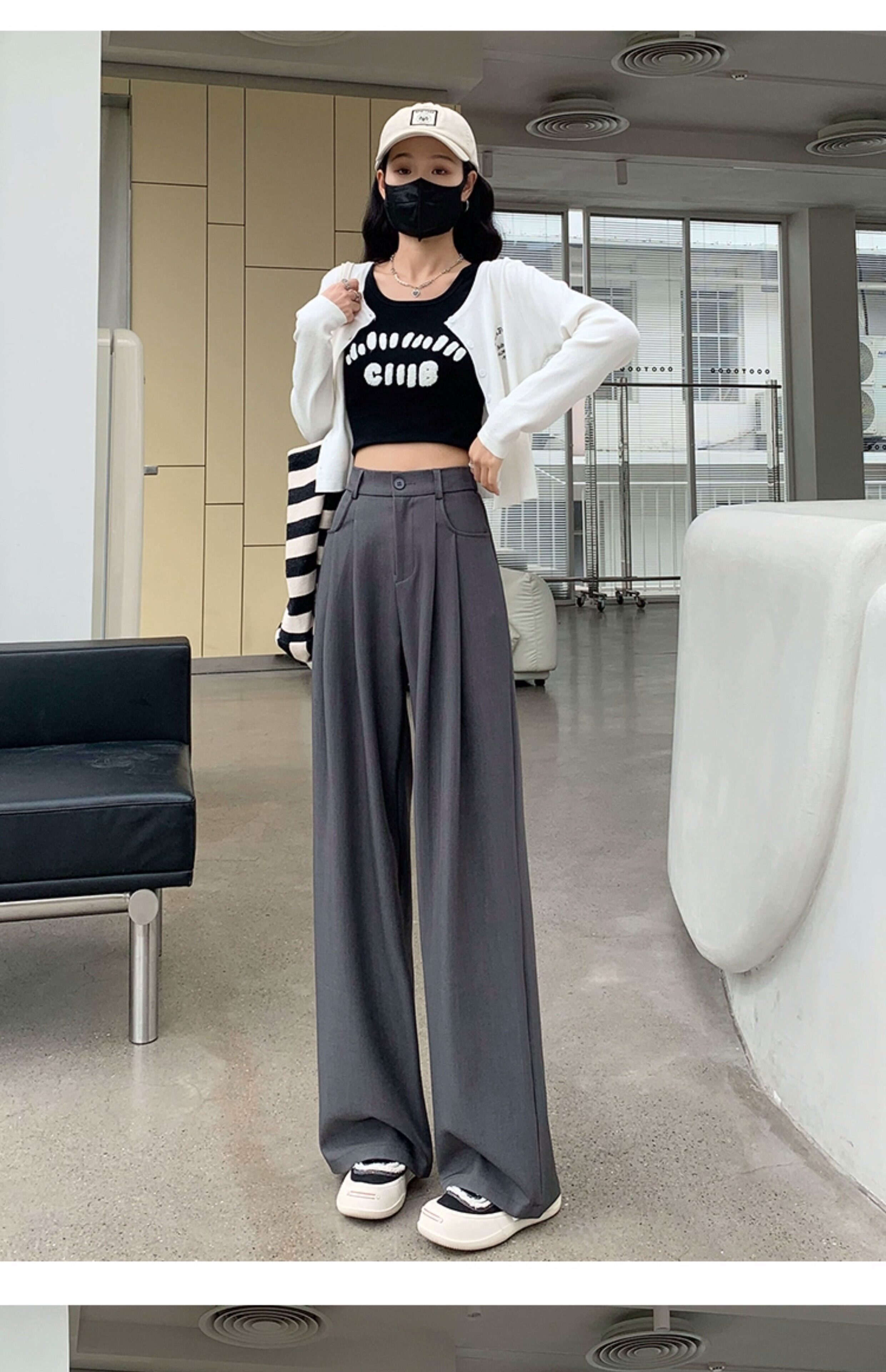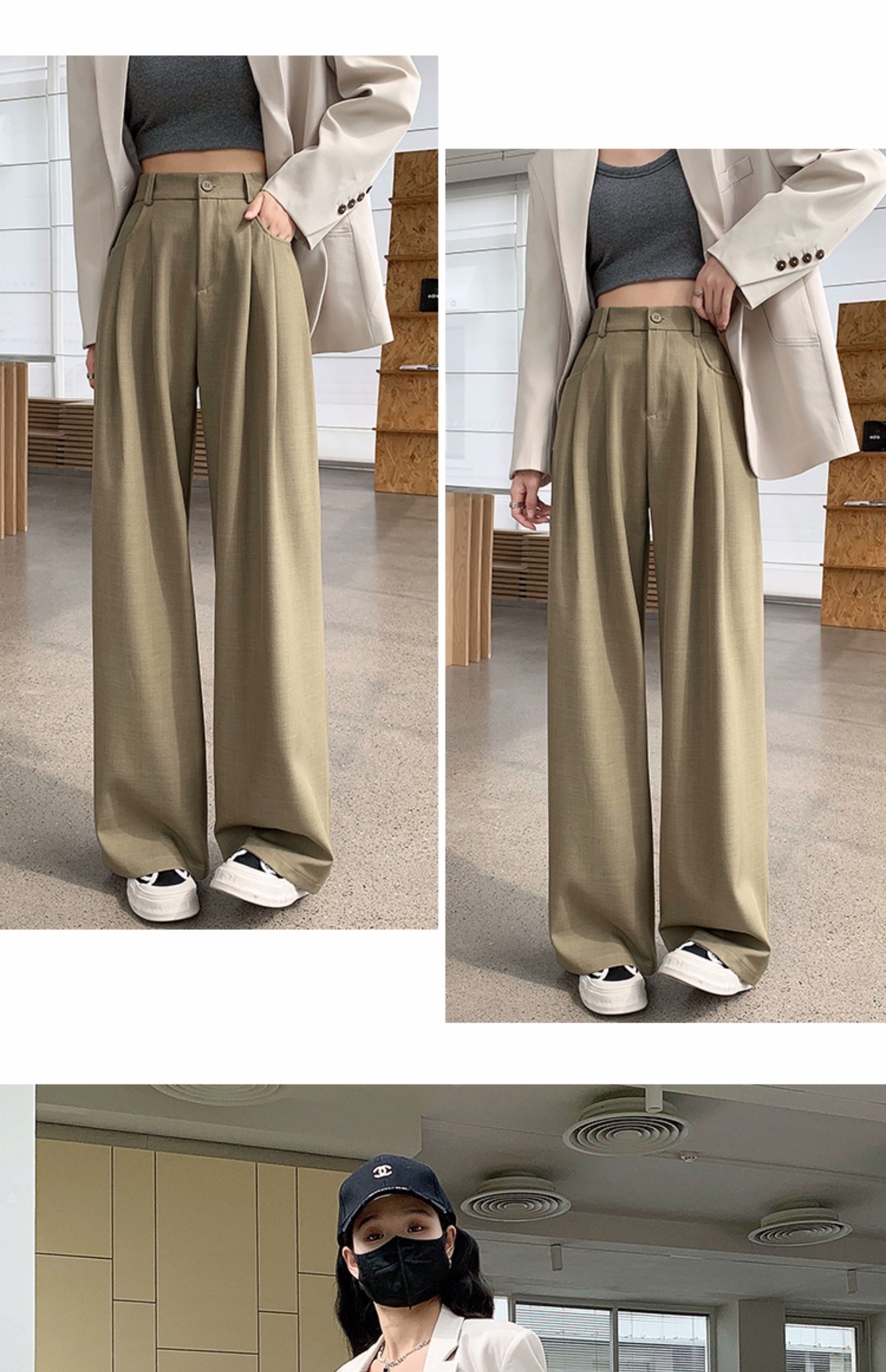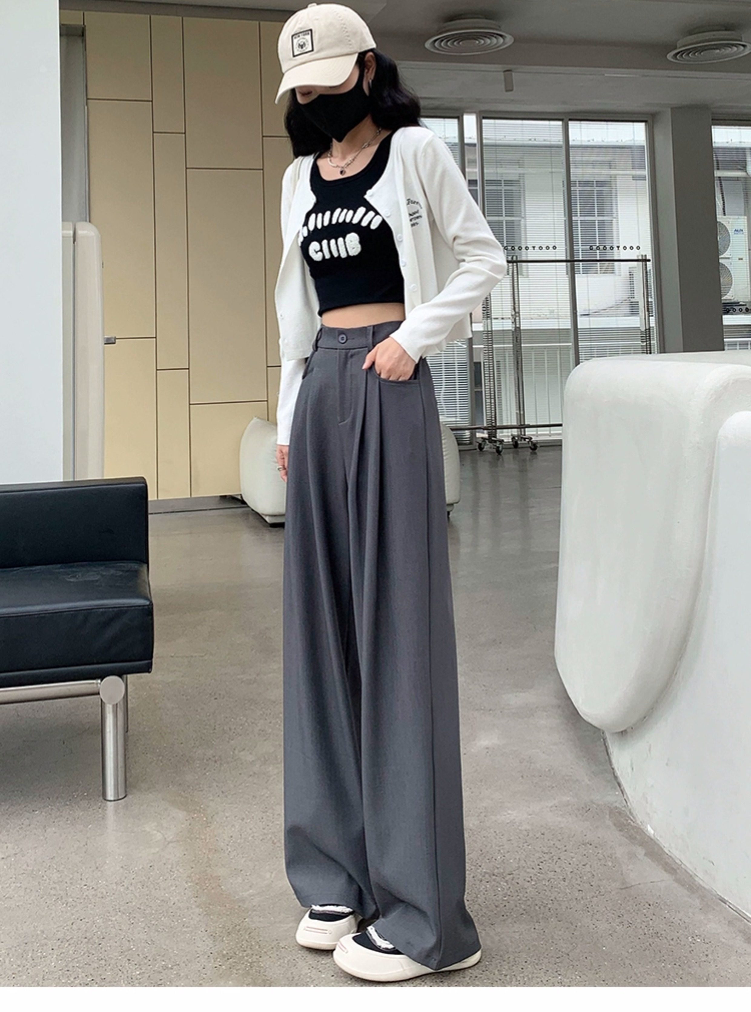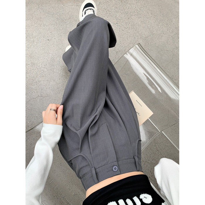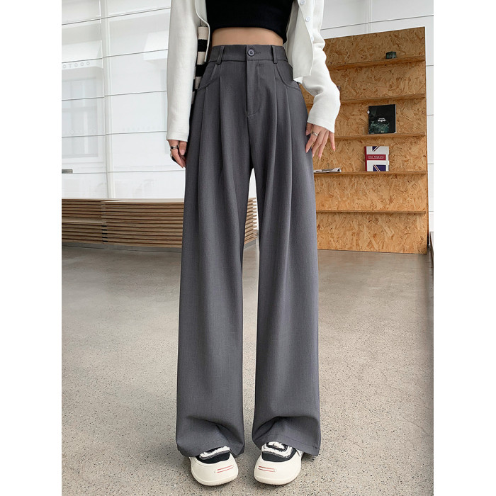 灰色西裝褲女秋季小個子高級感潮牌寬鬆bf直筒濶腿垂感窄版長褲子