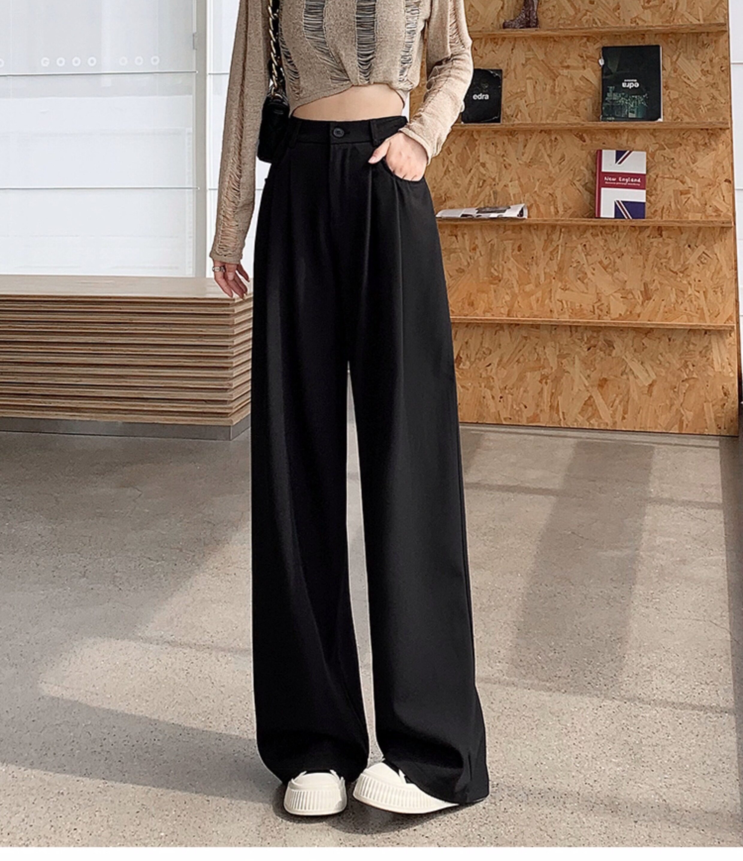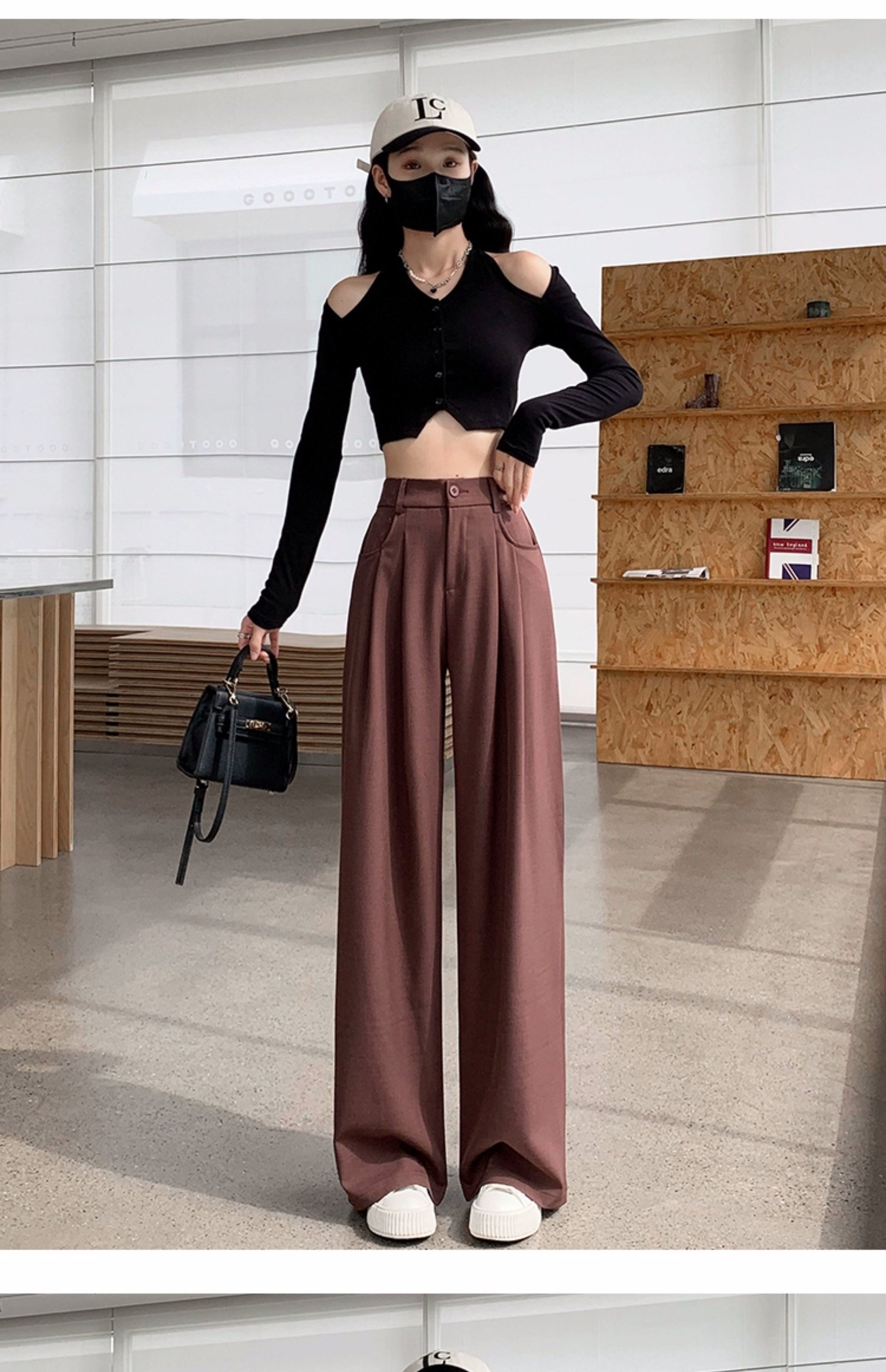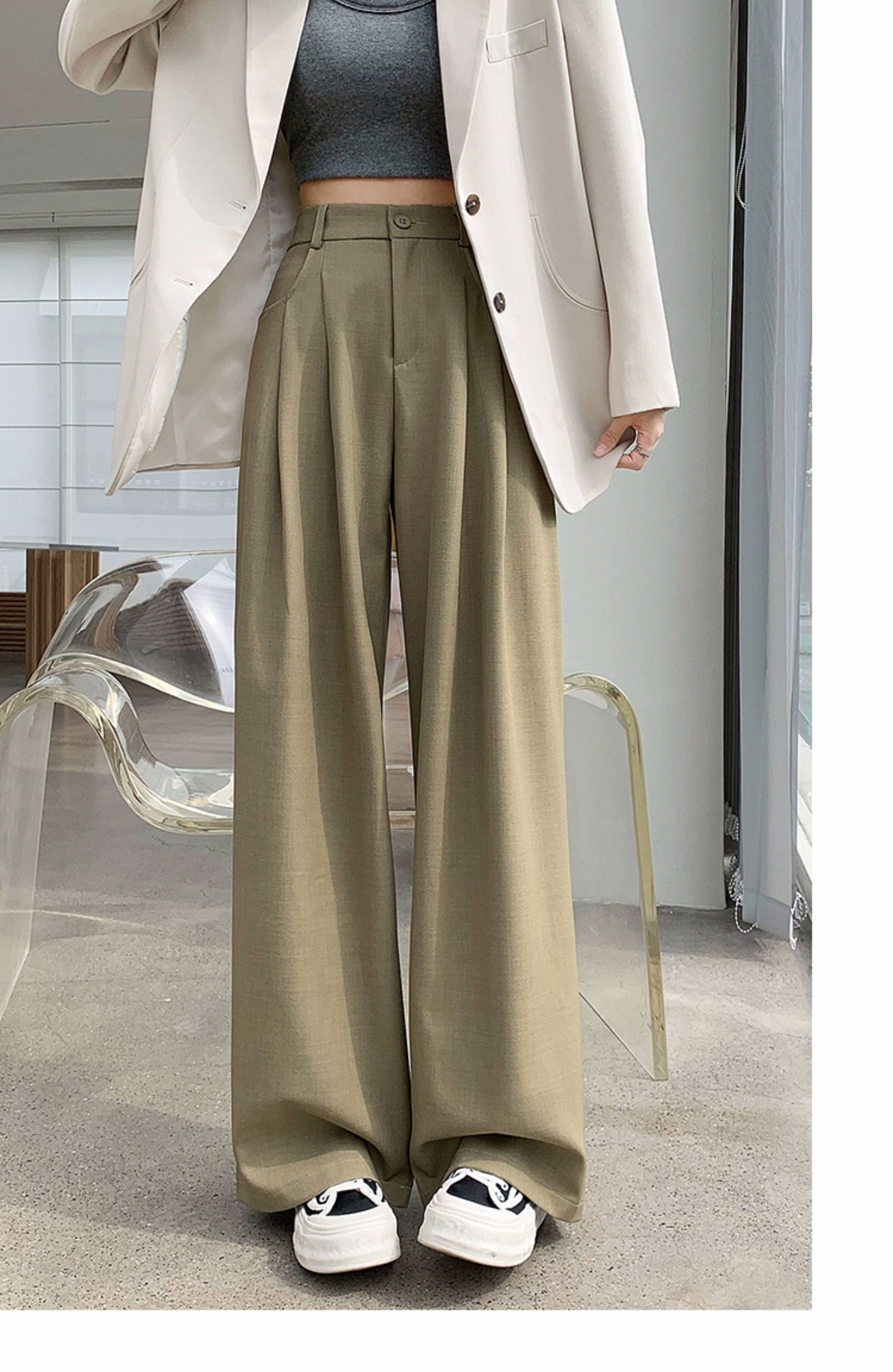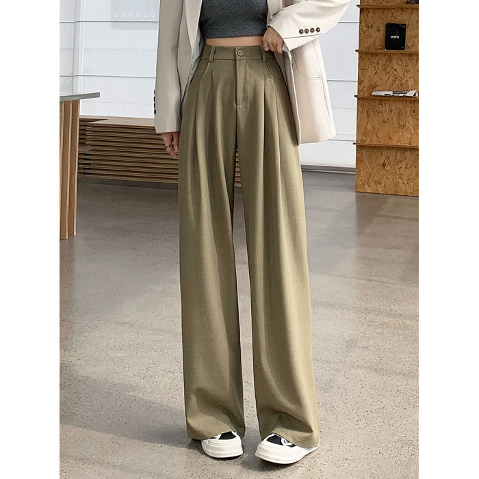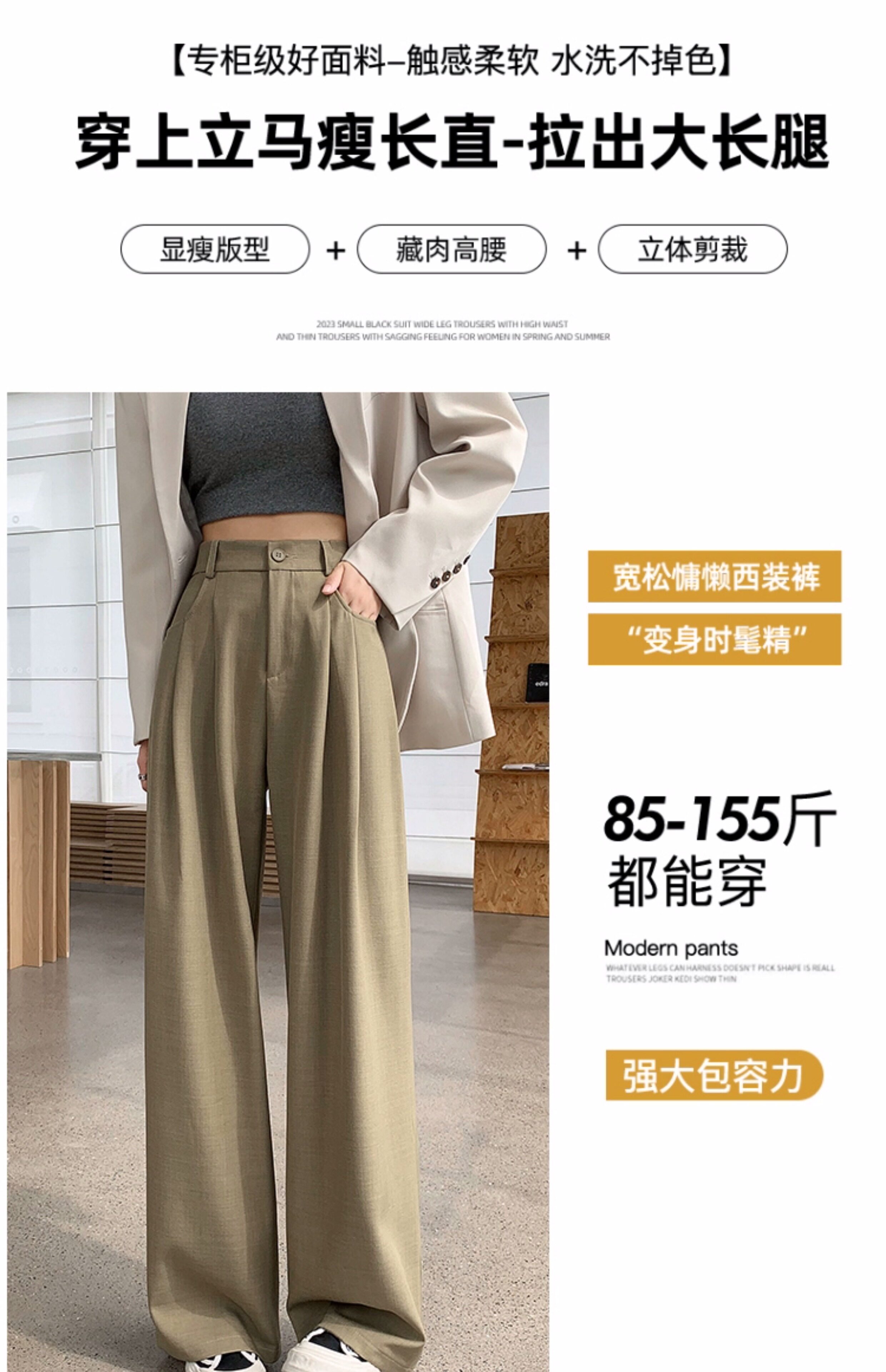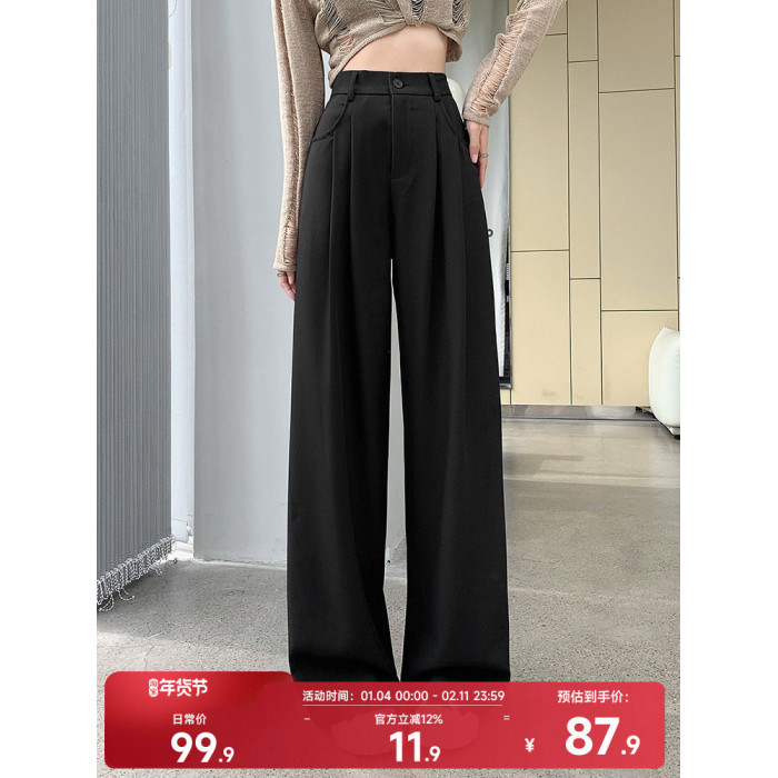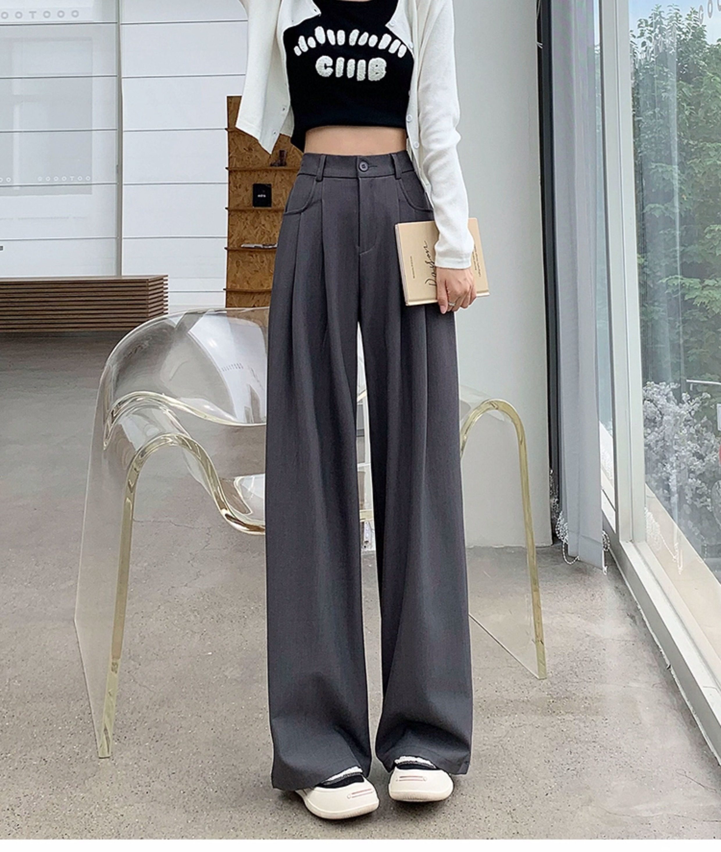 灰色西裝褲女秋季小個子高級感潮牌寬鬆bf直筒濶腿垂感窄版長褲子