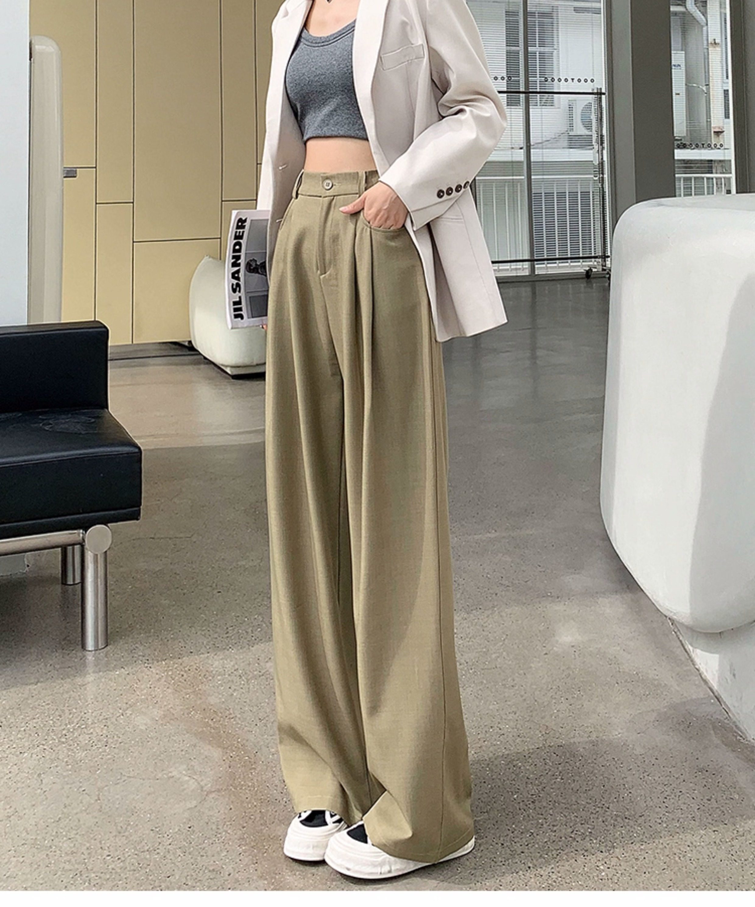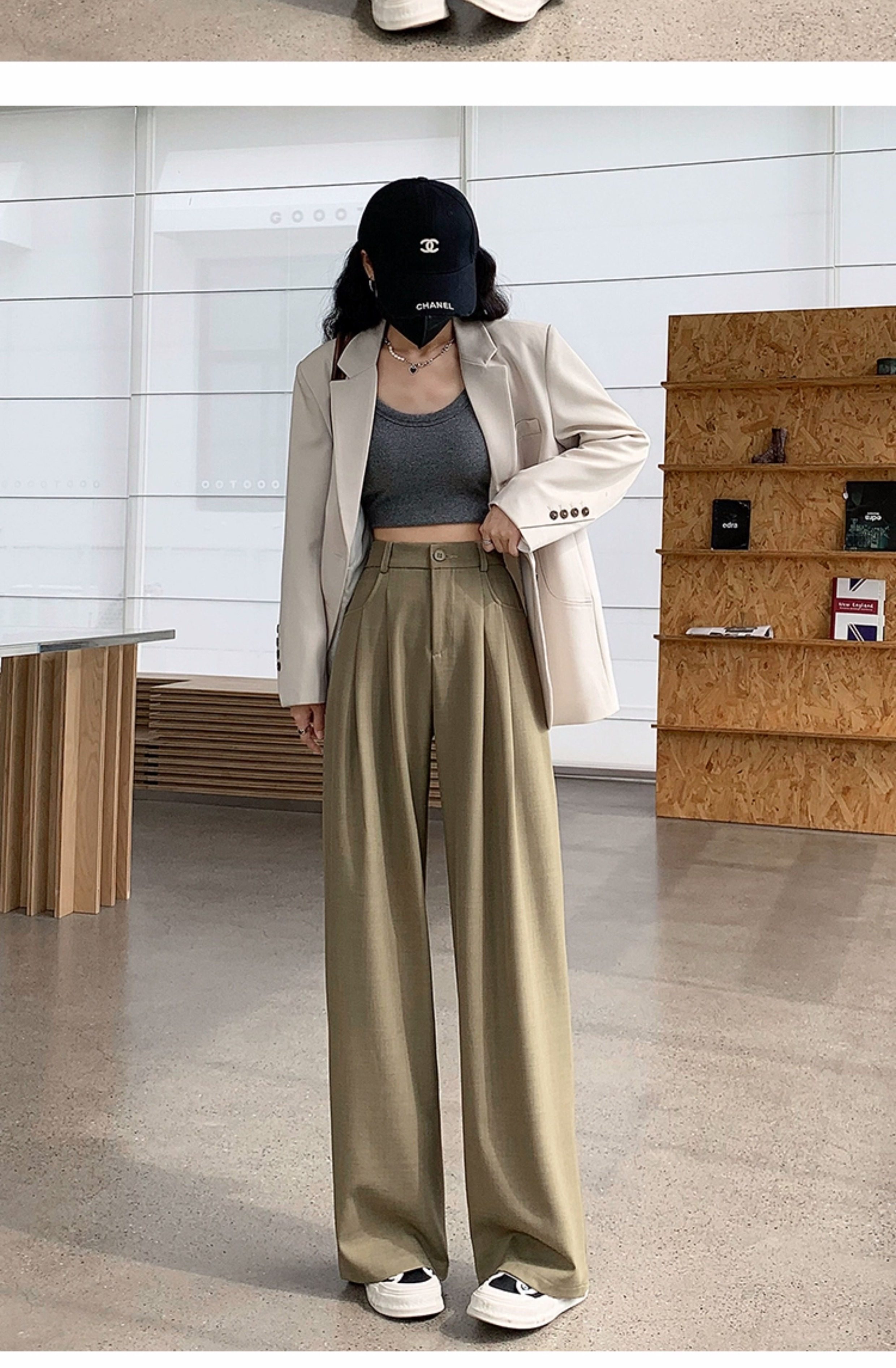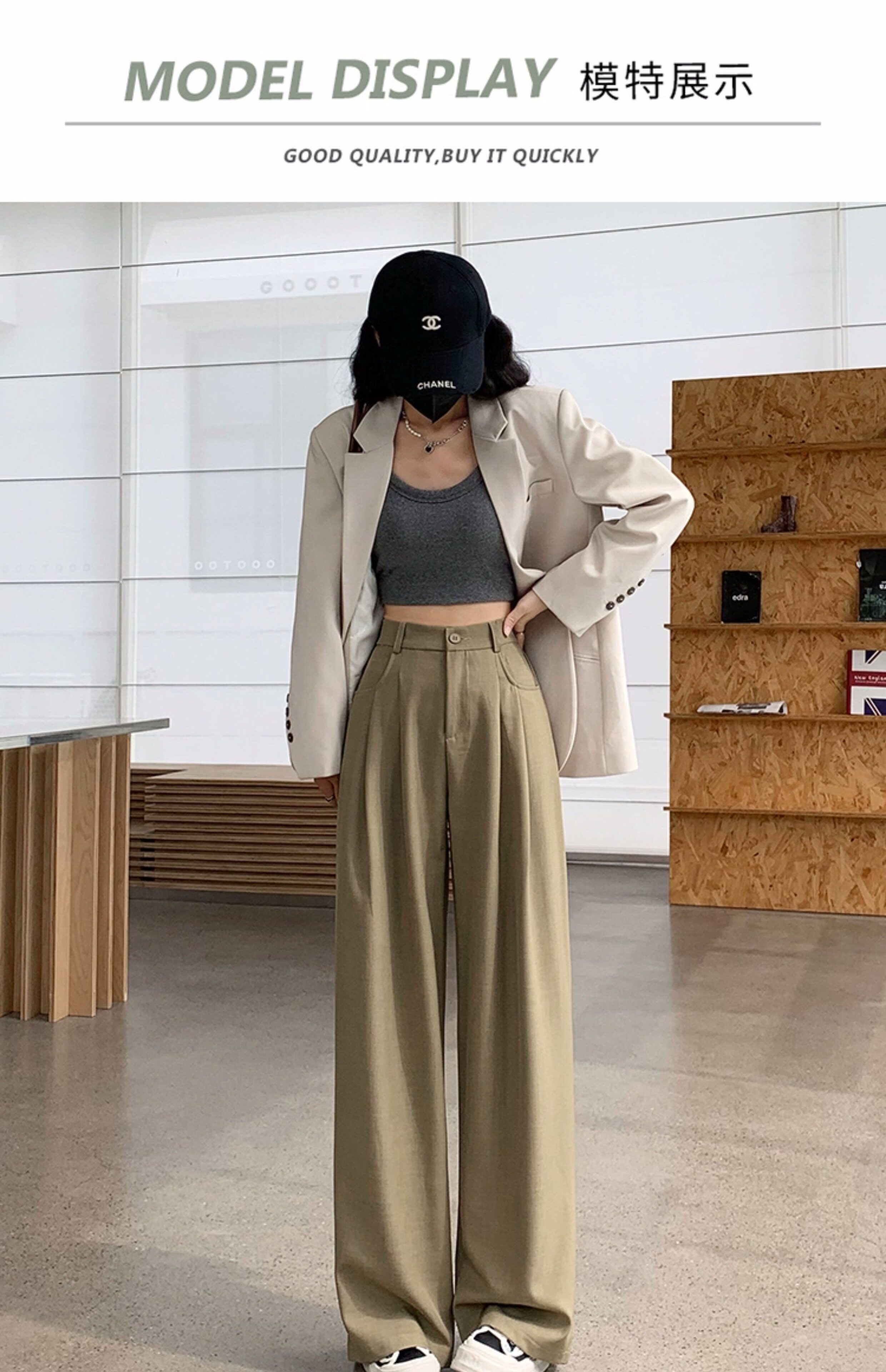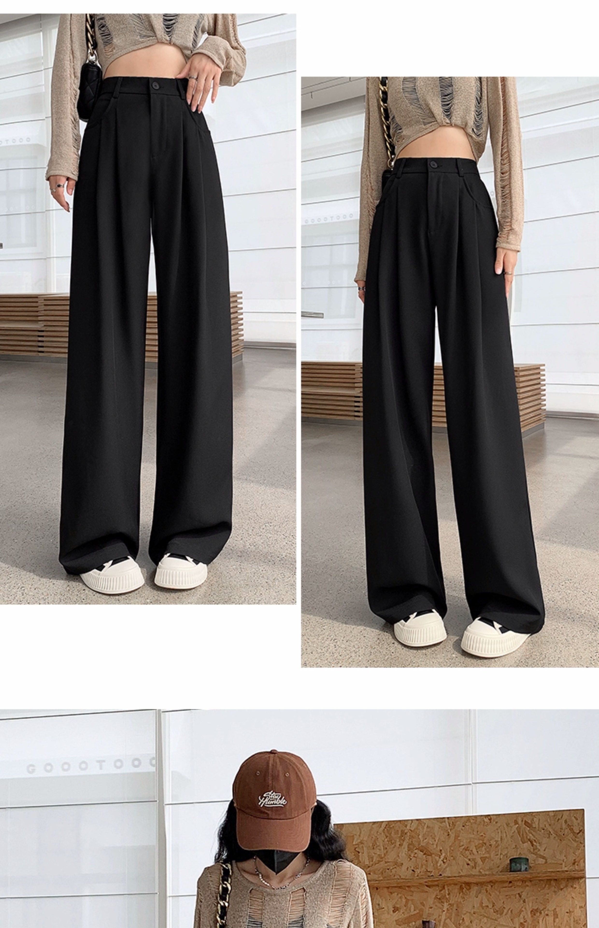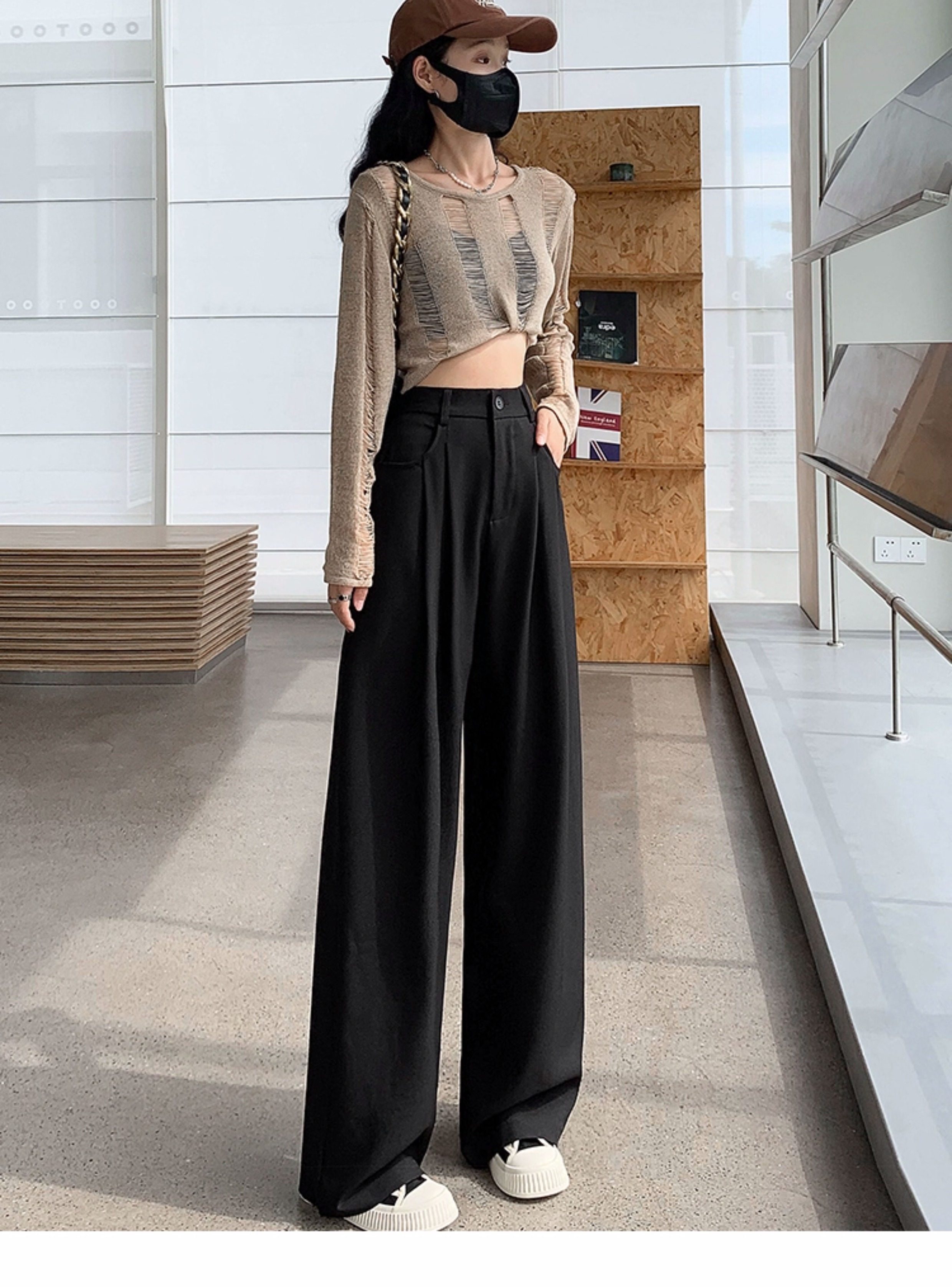 灰色西裝褲女秋季小個子高級感潮牌寬鬆bf直筒濶腿垂感窄版長褲子