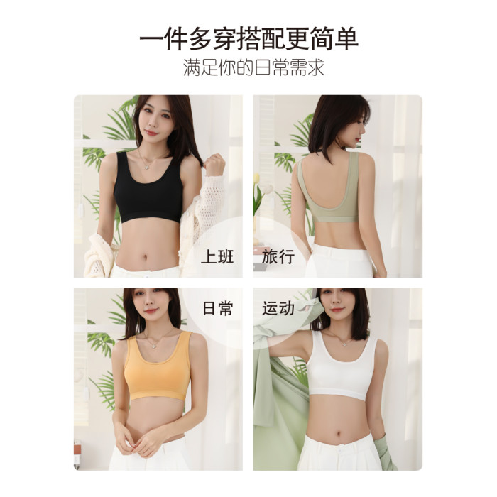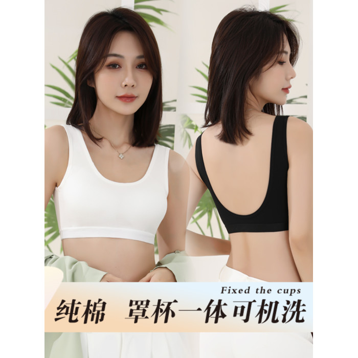 純棉胸罩運動無鋼圈高中內衣學生初中女少女抹胸一體背心美背文胸