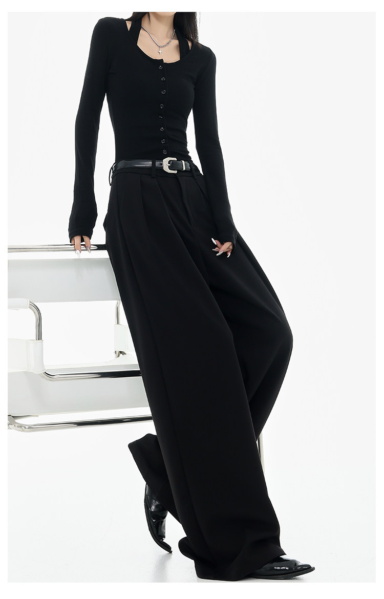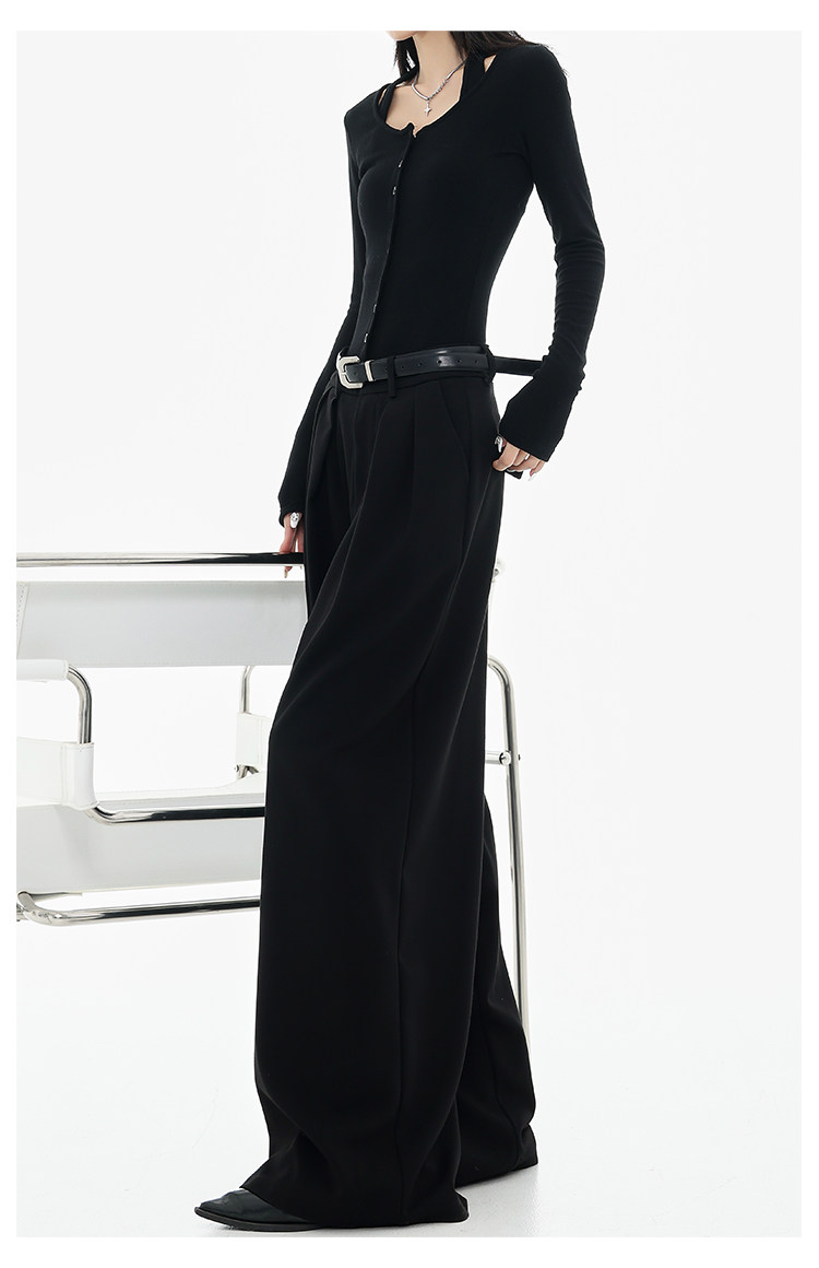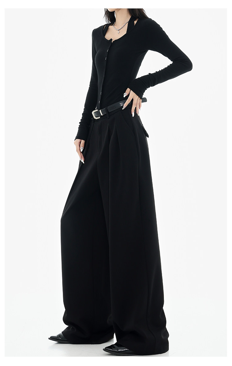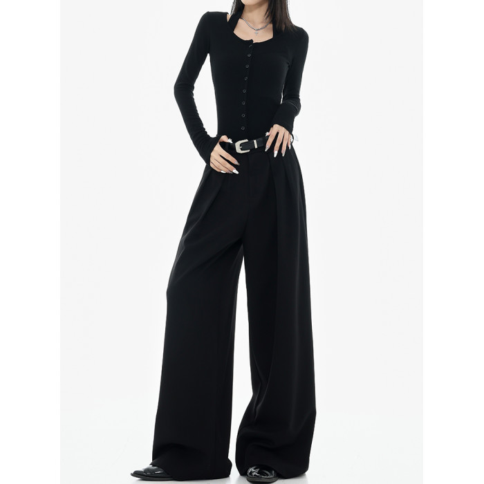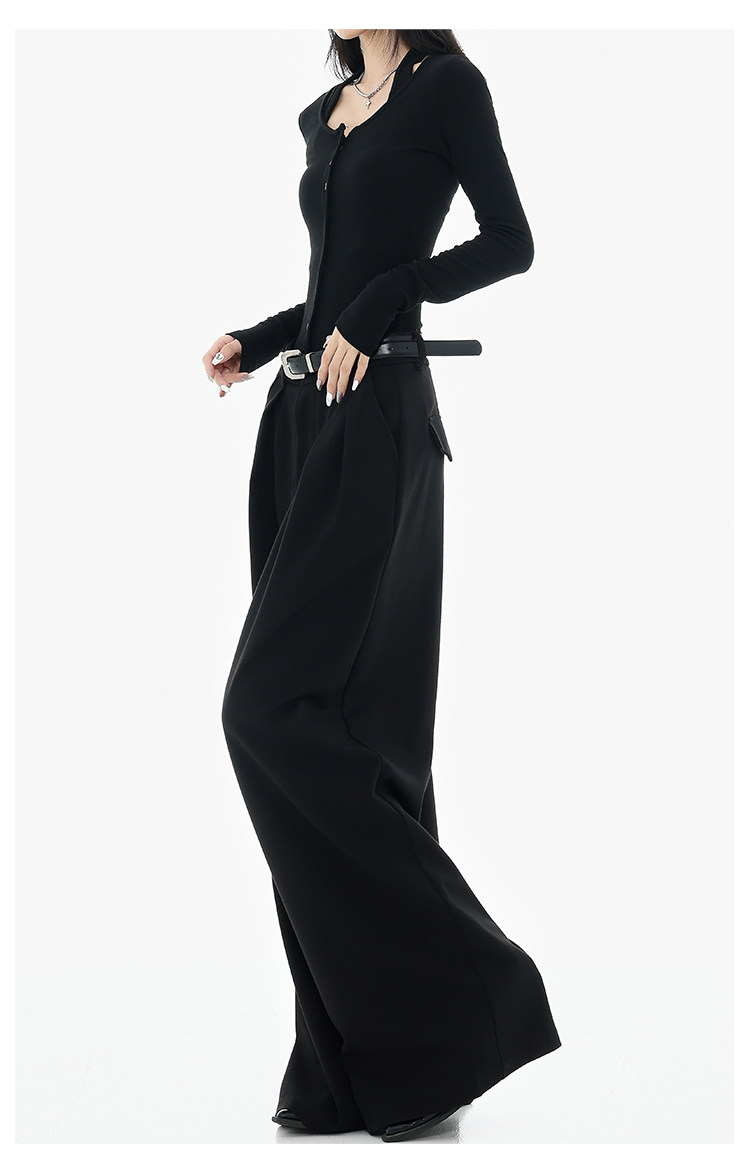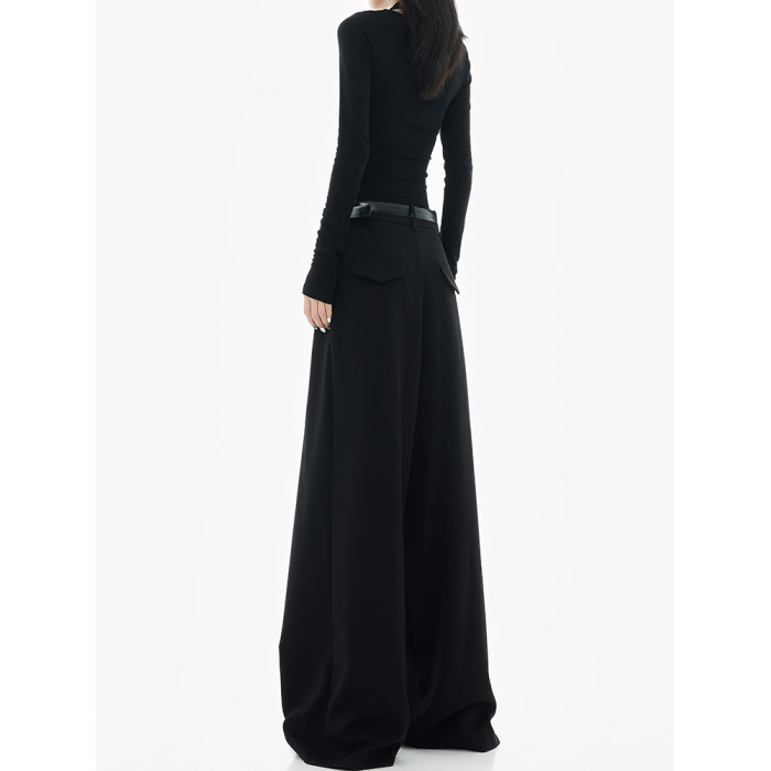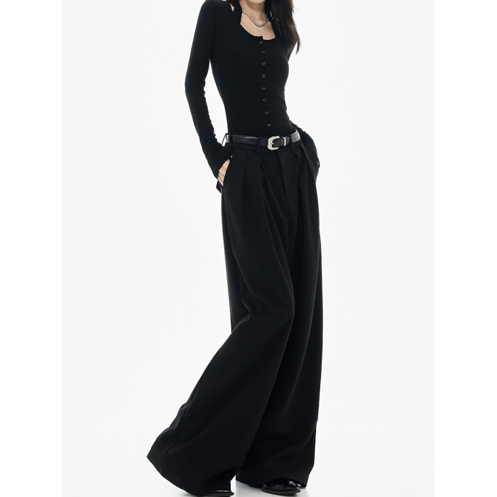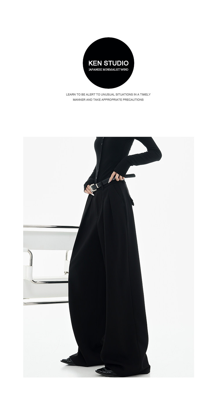 KEN STUDIO春秋新款黑色濶腿西裝褲女高級設計垂感寬鬆顯瘦拖地褲