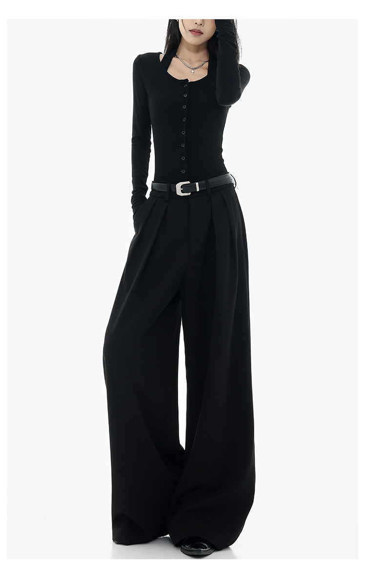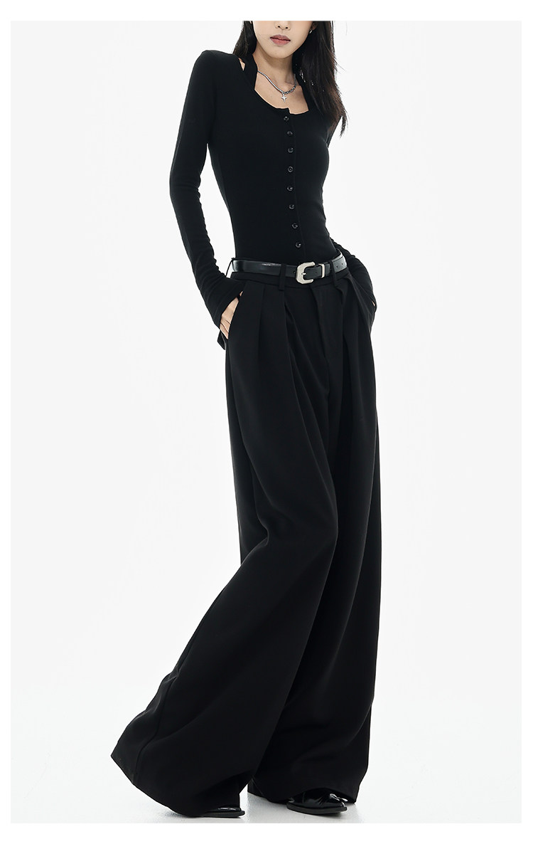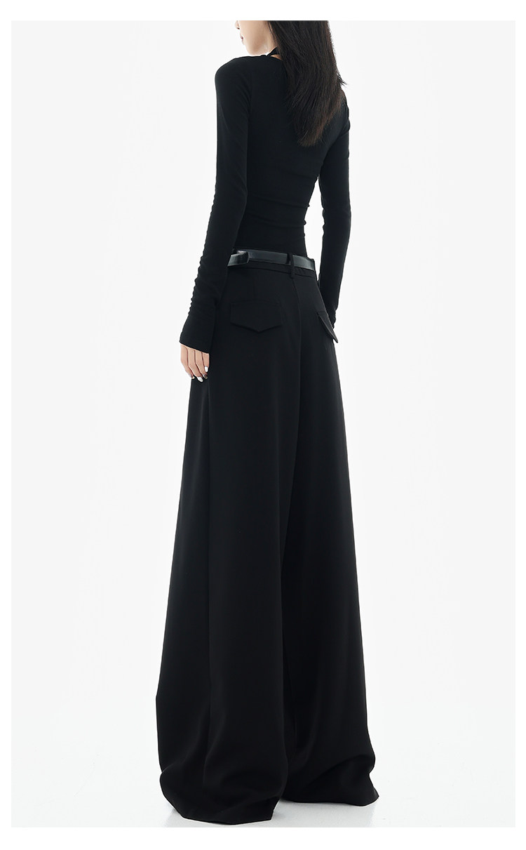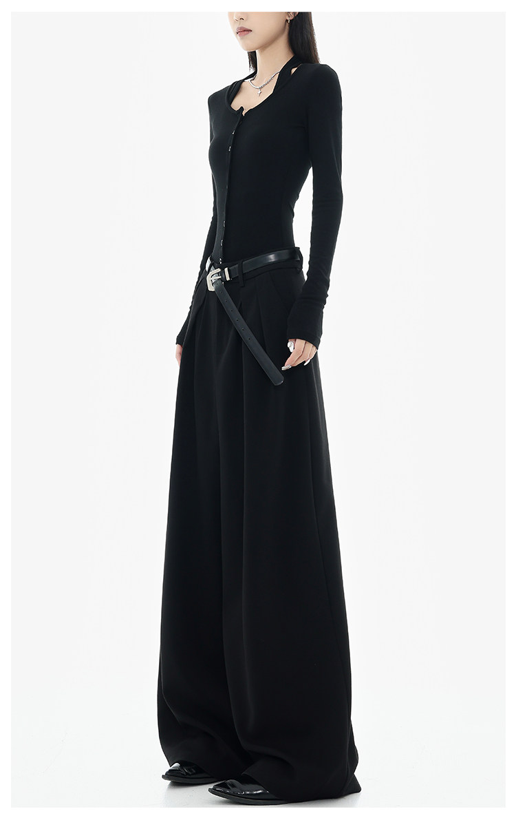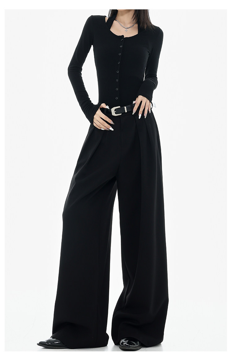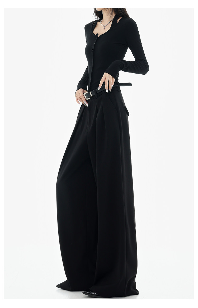 KEN STUDIO春秋新款黑色濶腿西裝褲女高級設計垂感寬鬆顯瘦拖地褲
