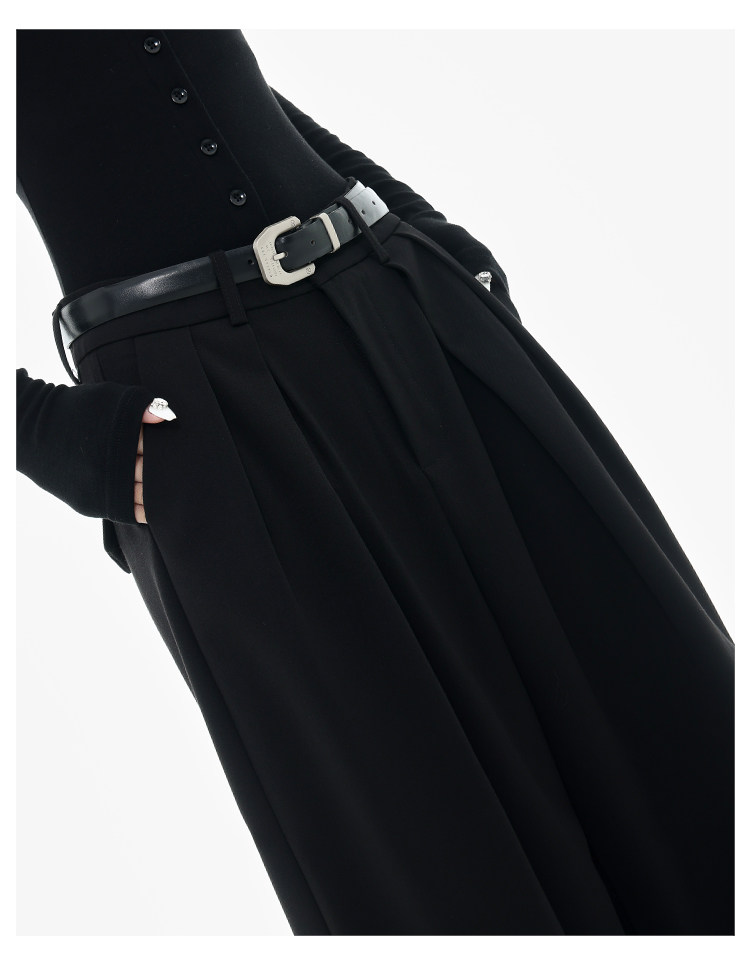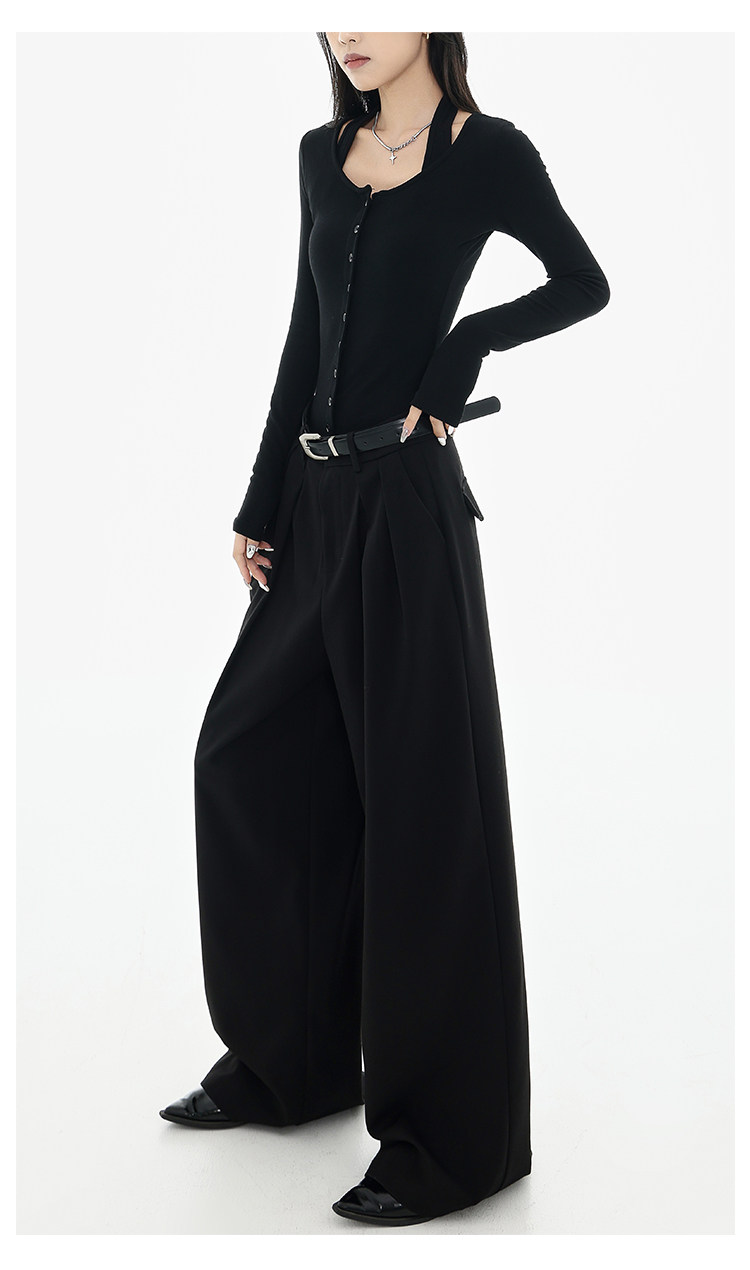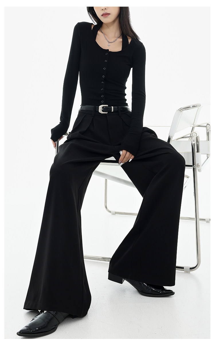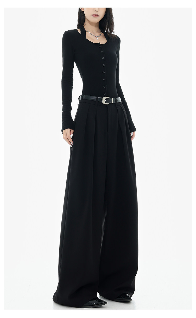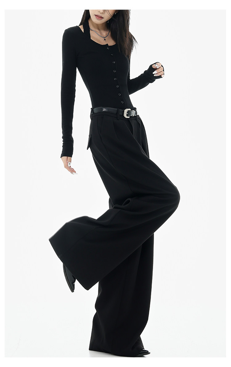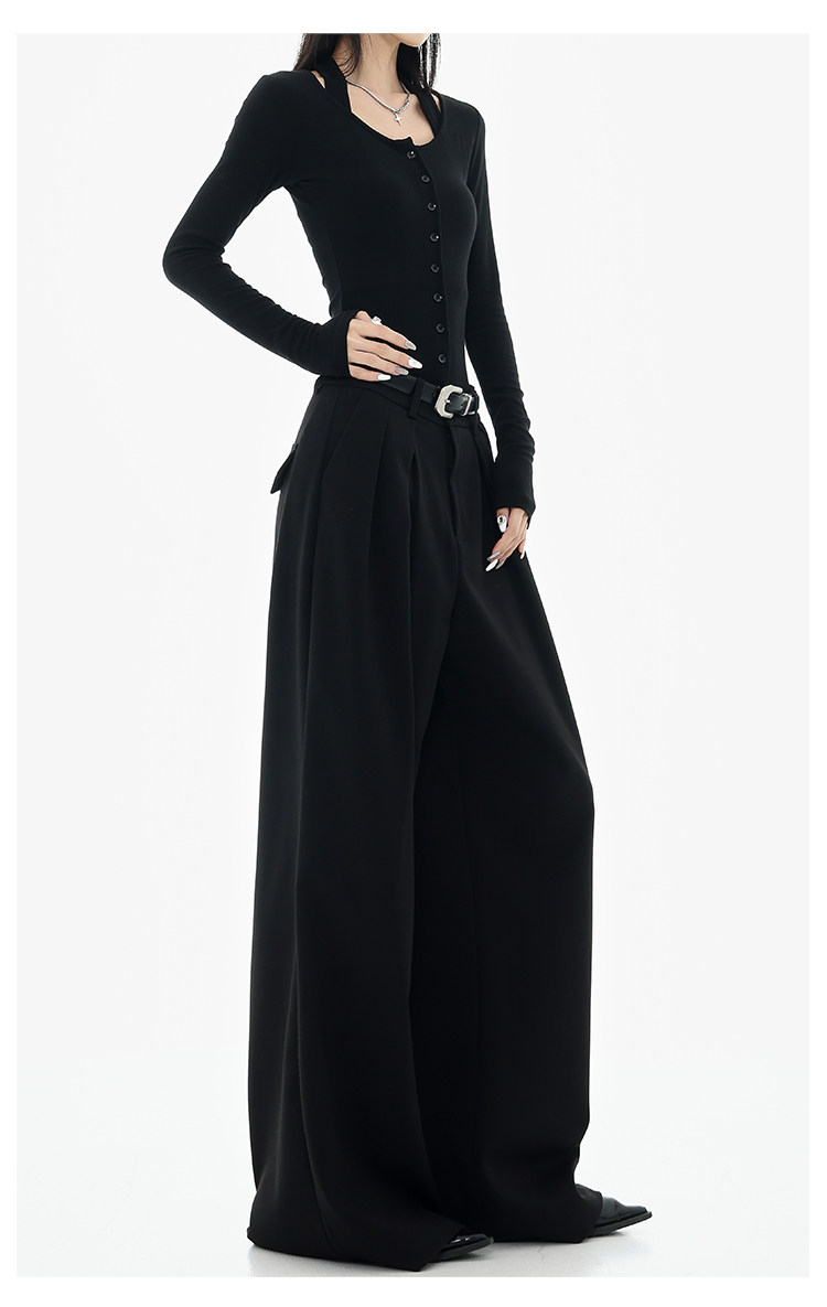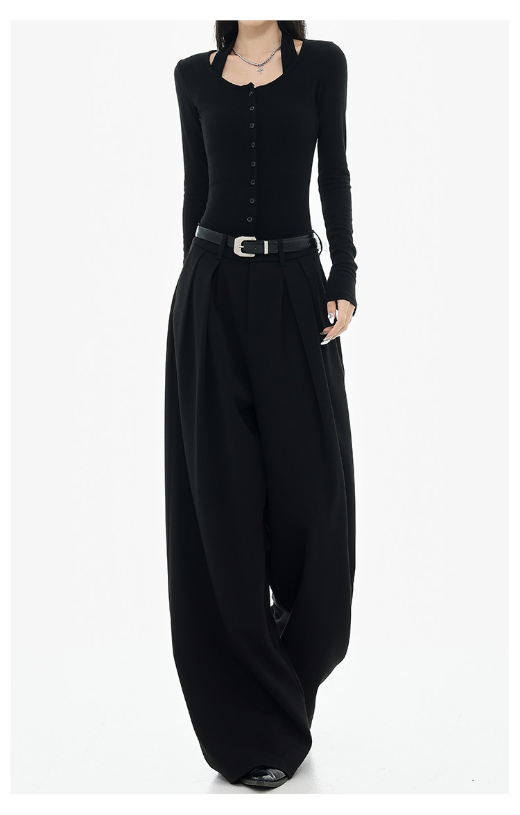 KEN STUDIO春秋新款黑色濶腿西裝褲女高級設計垂感寬鬆顯瘦拖地褲