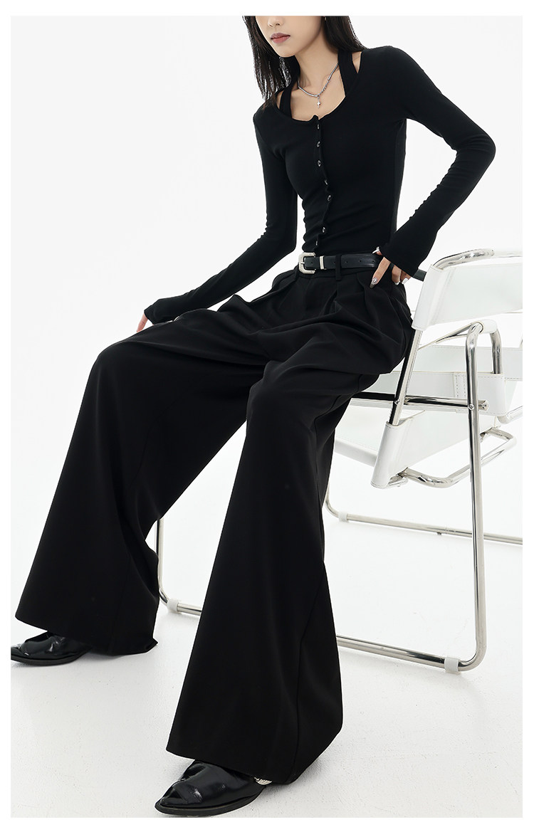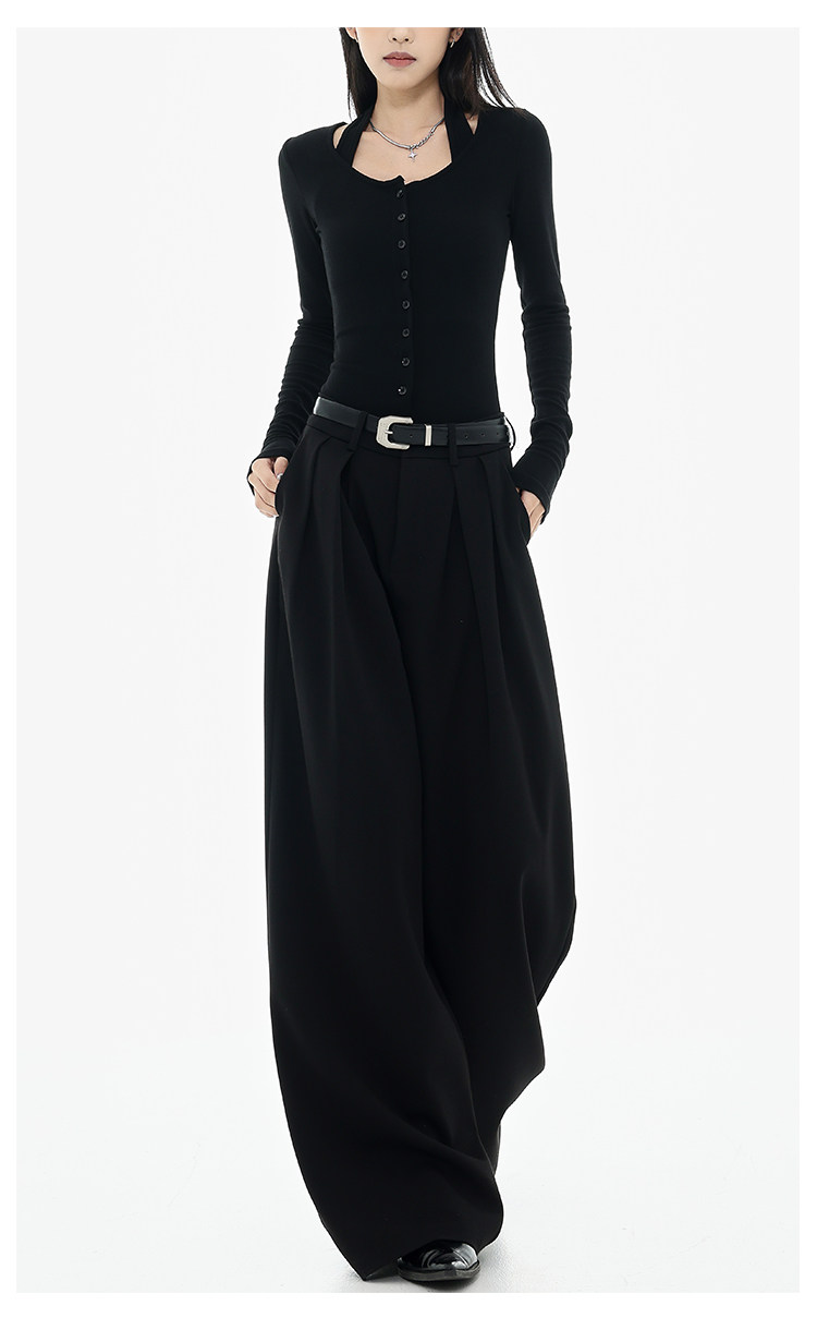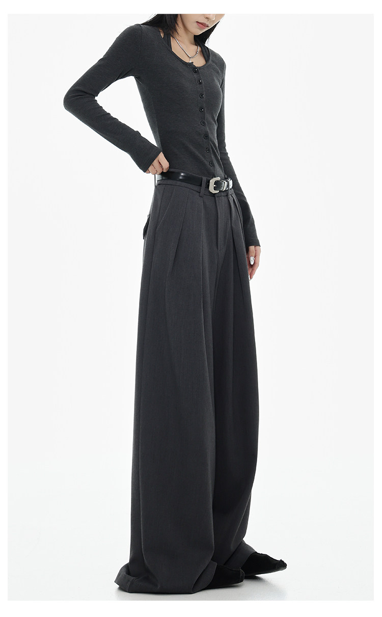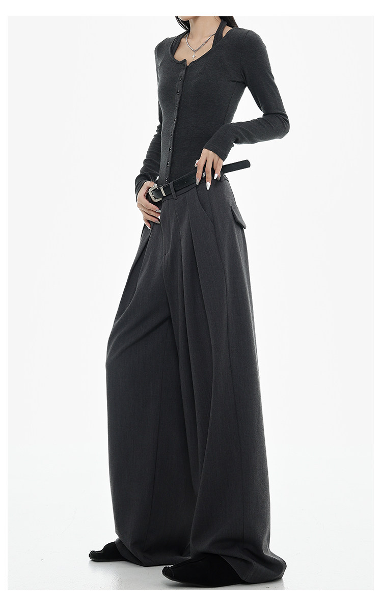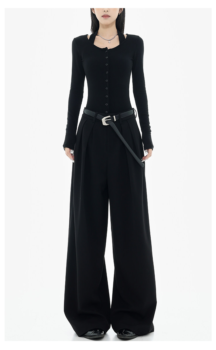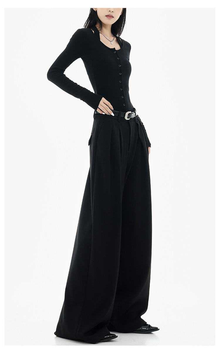 KEN STUDIO春秋新款黑色濶腿西裝褲女高級設計垂感寬鬆顯瘦拖地褲