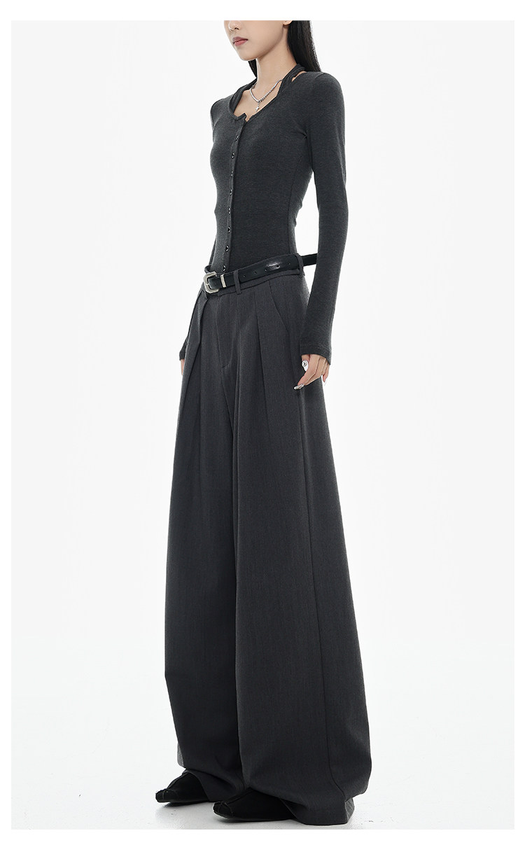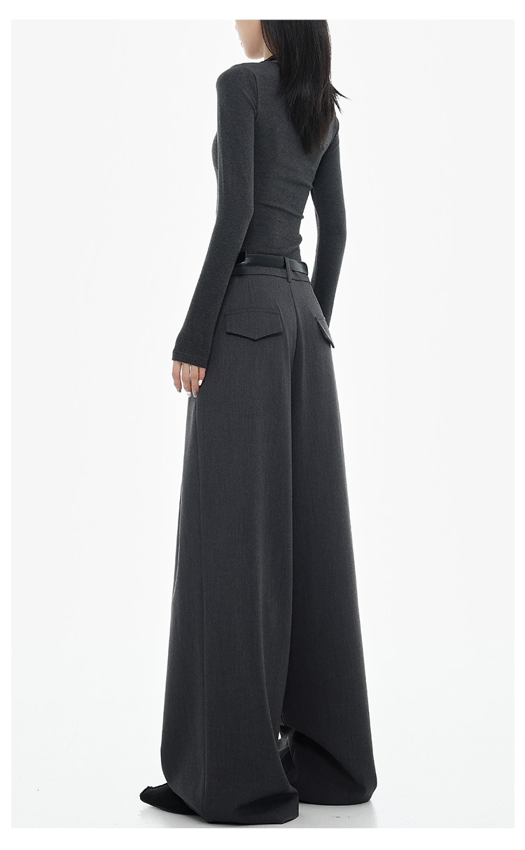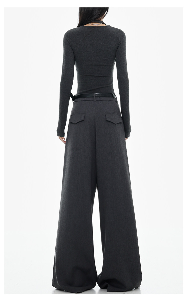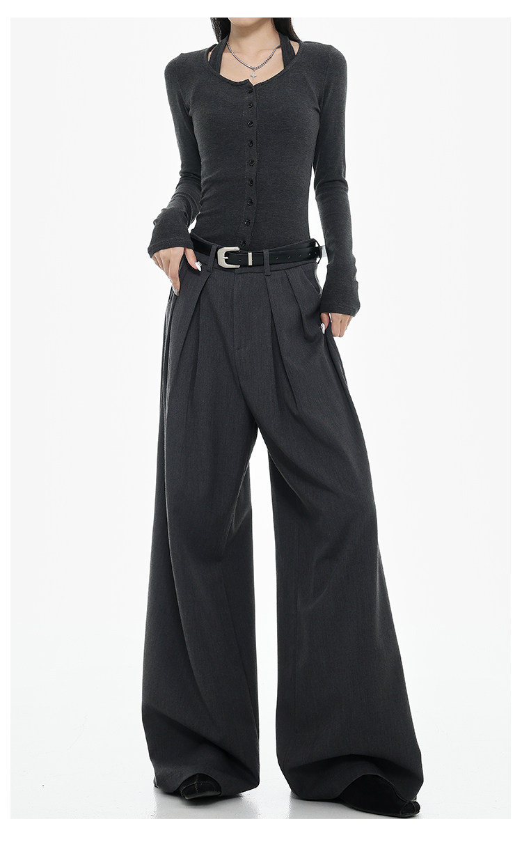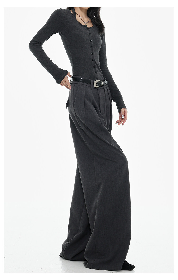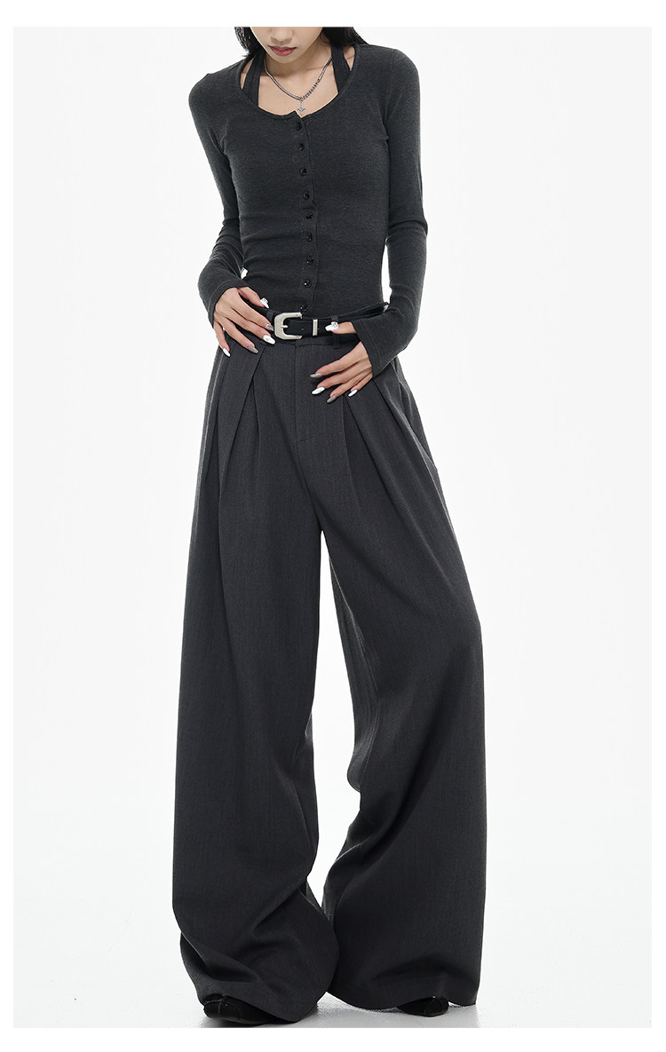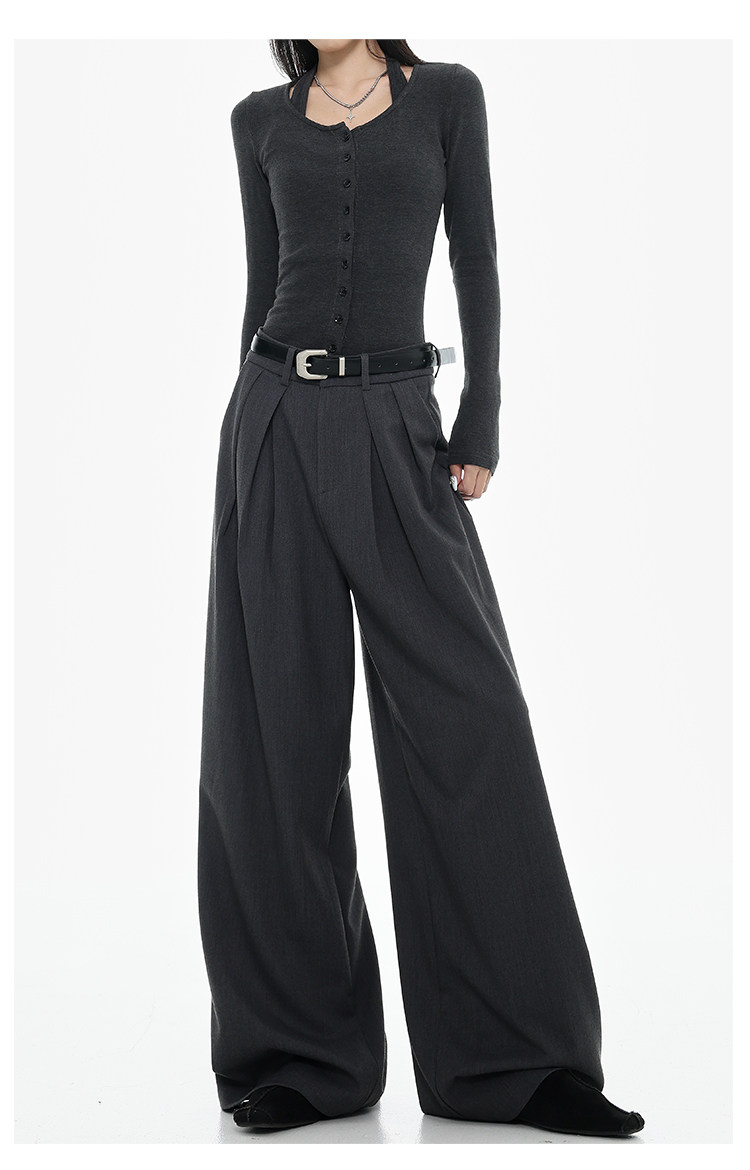KEN STUDIO春秋新款黑色濶腿西裝褲女高級設計垂感寬鬆顯瘦拖地褲