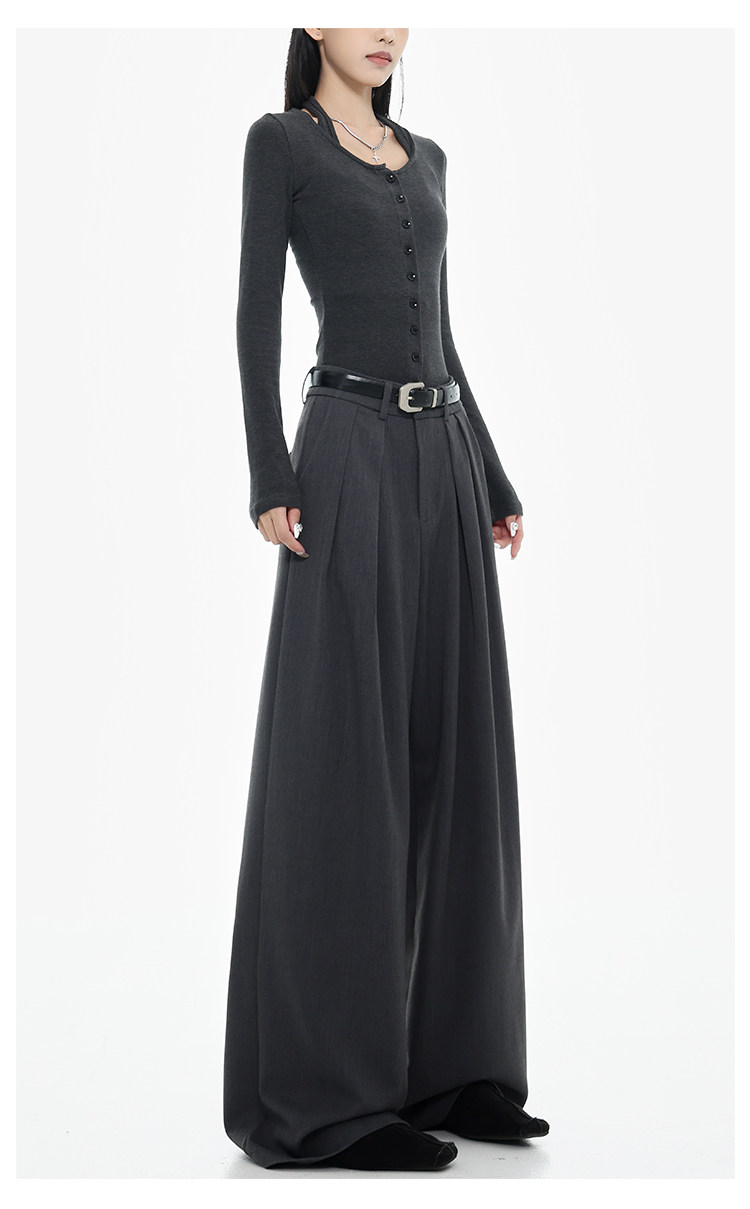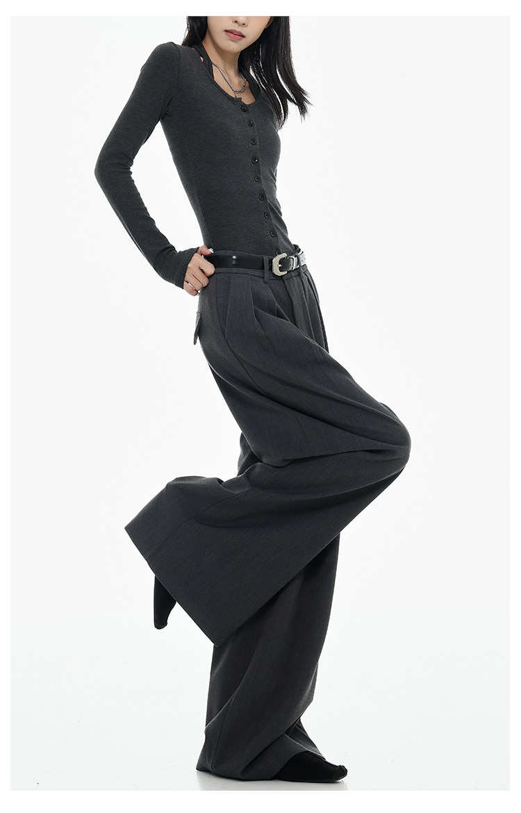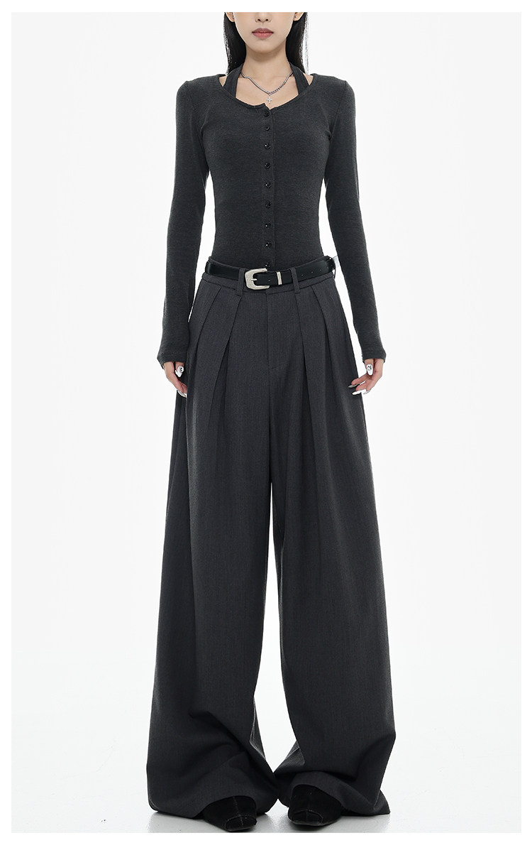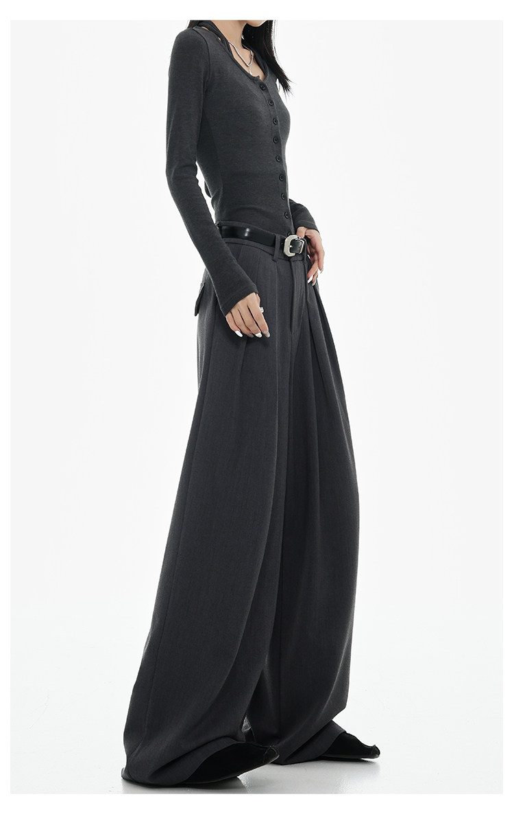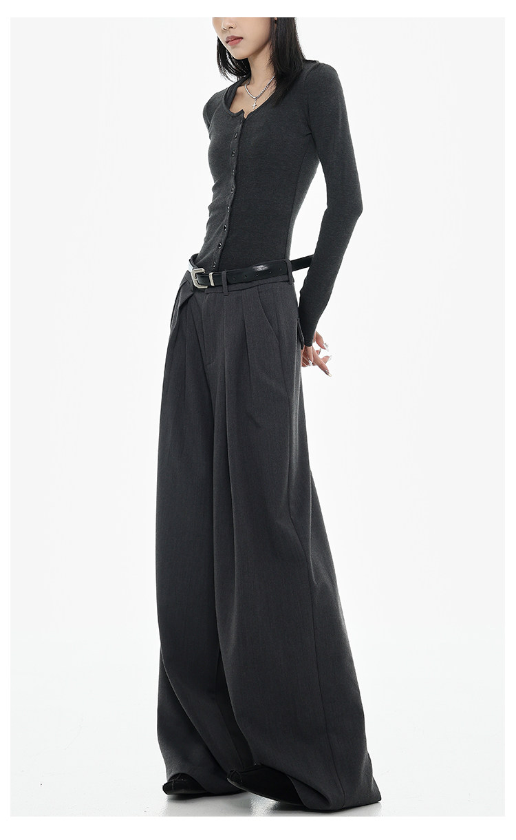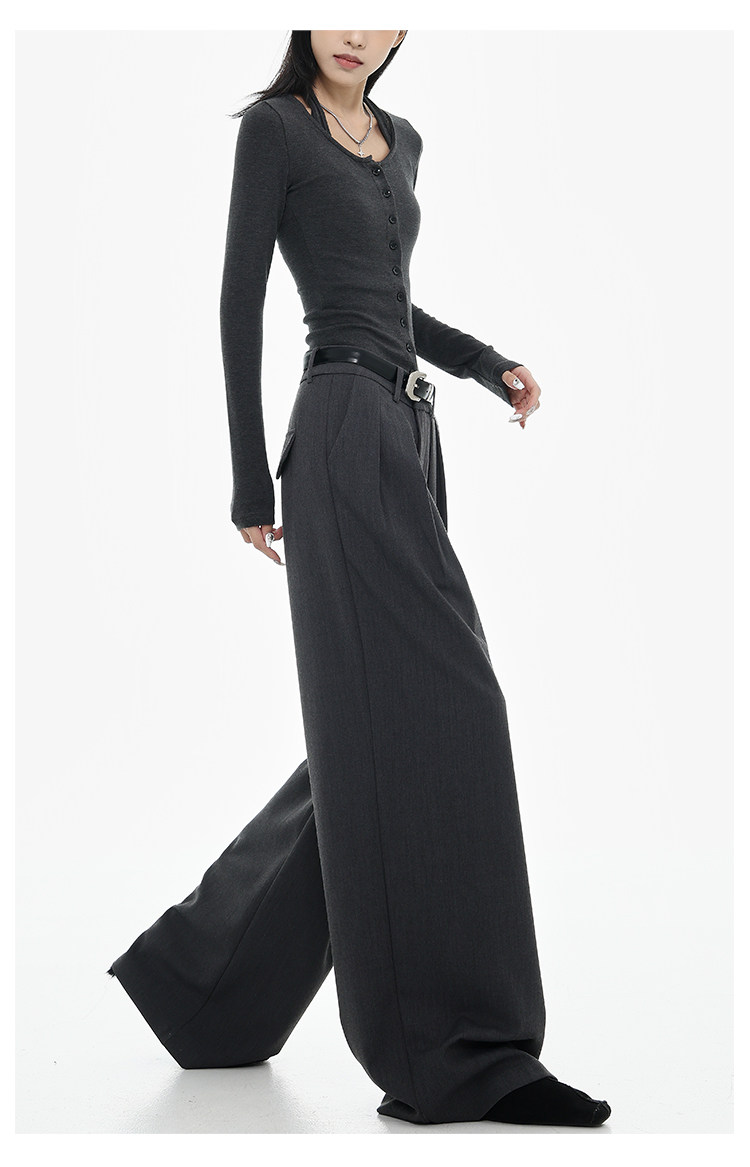 KEN STUDIO春秋新款黑色濶腿西裝褲女高級設計垂感寬鬆顯瘦拖地褲