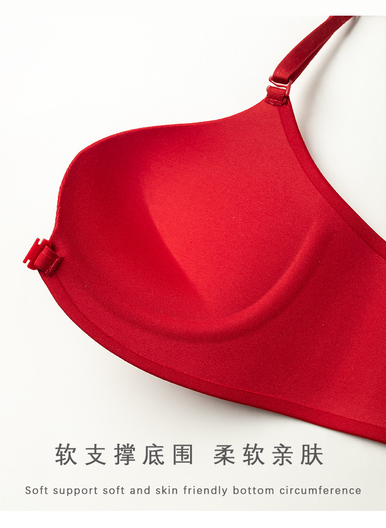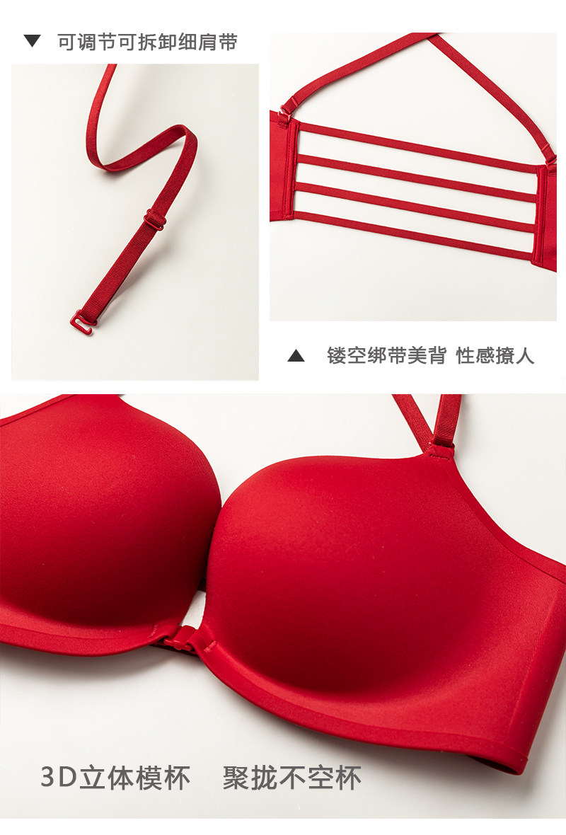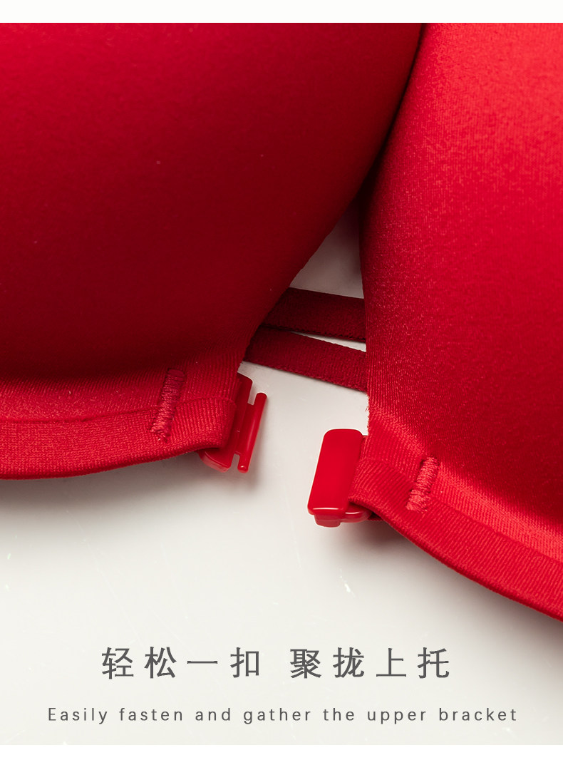 維多利亞多培爾紅色無鋼圈內衣女小胸聚攏前釦本命年結婚文胸套裝