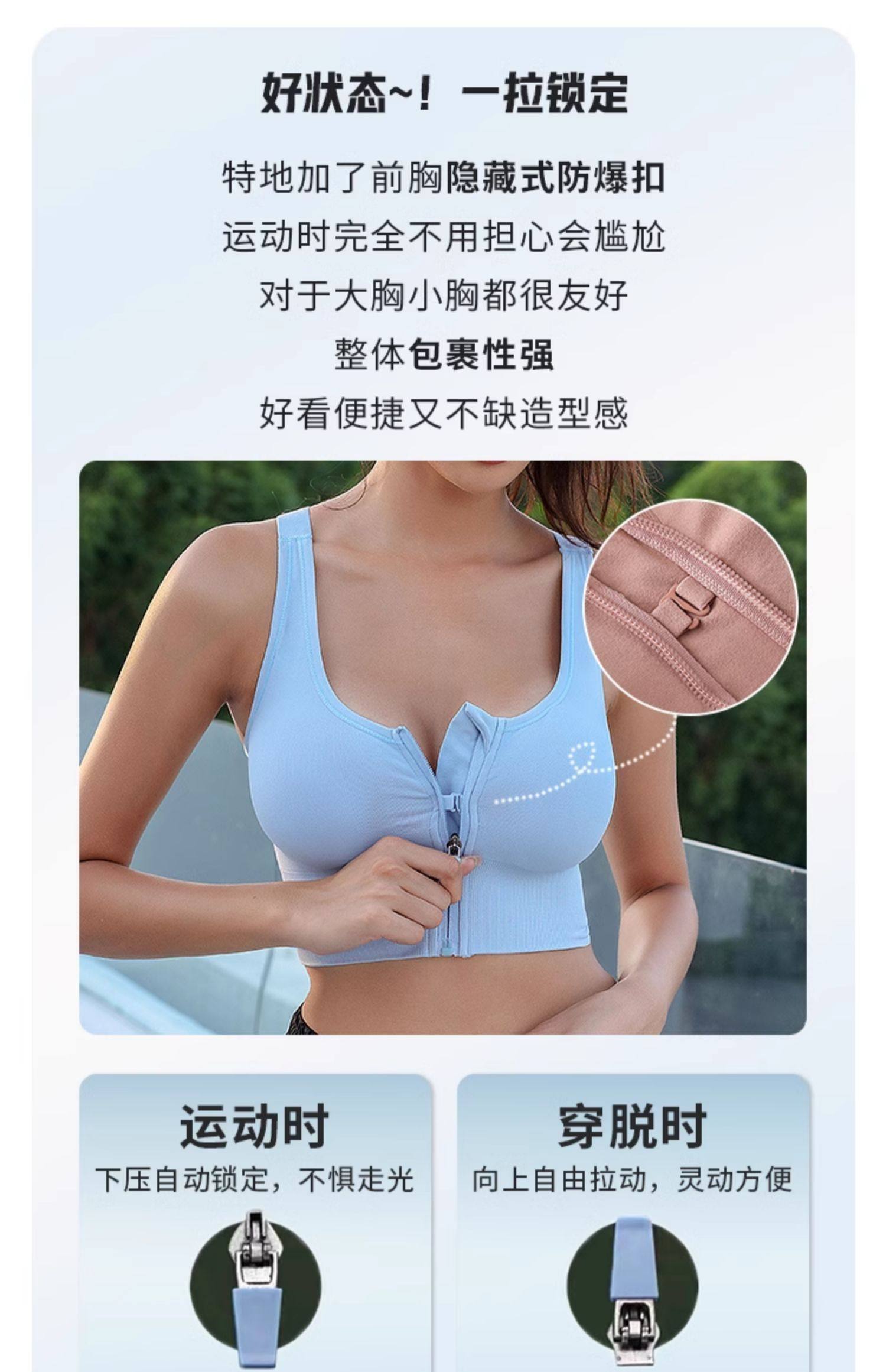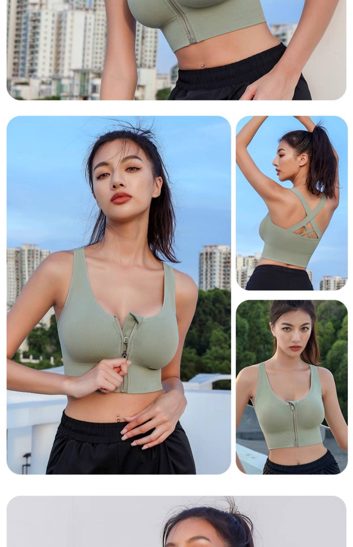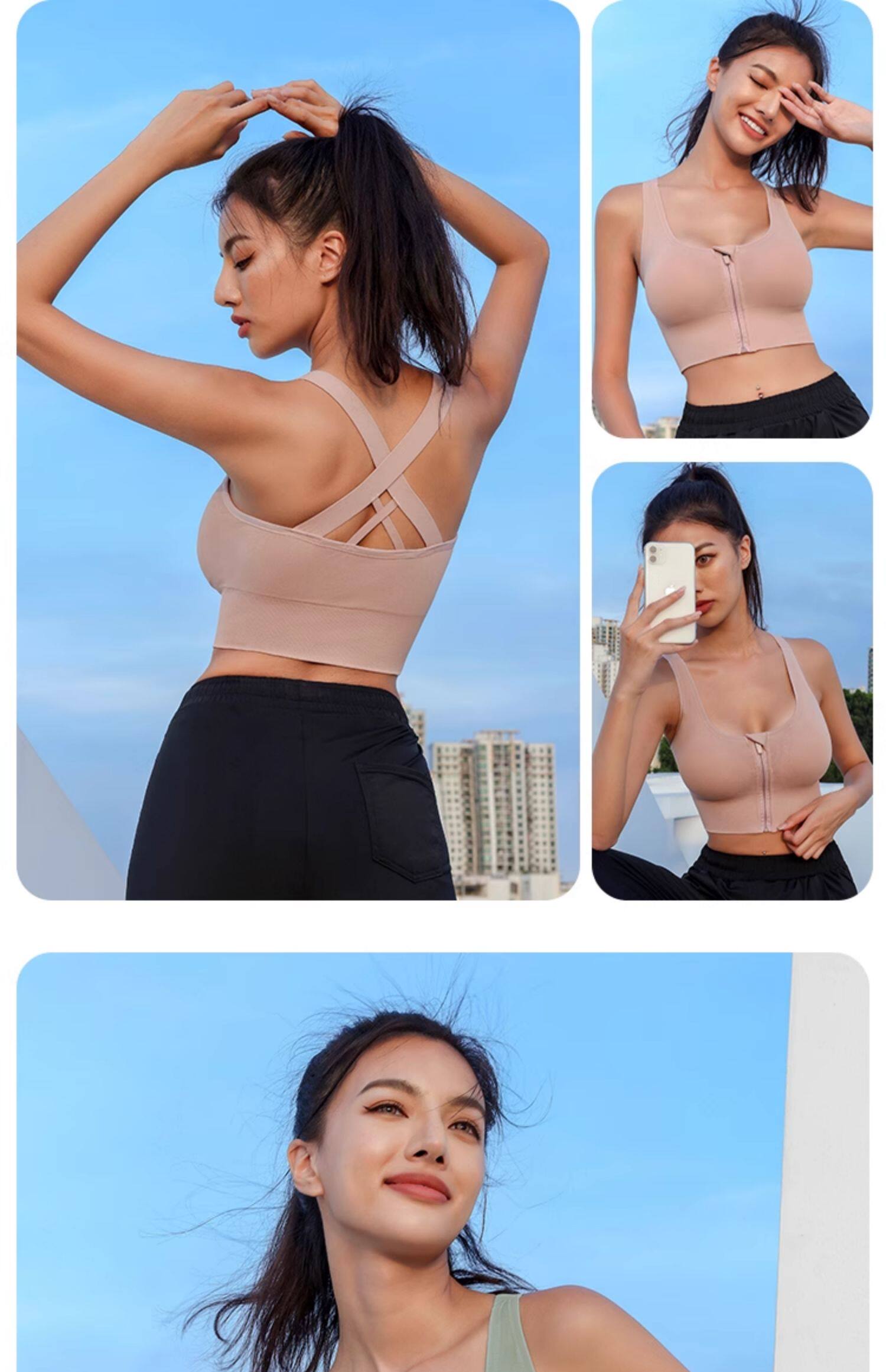 前拉鍊運動內衣女防震防下垂高強度瑜珈背心文胸罩跑步外穿健身服
