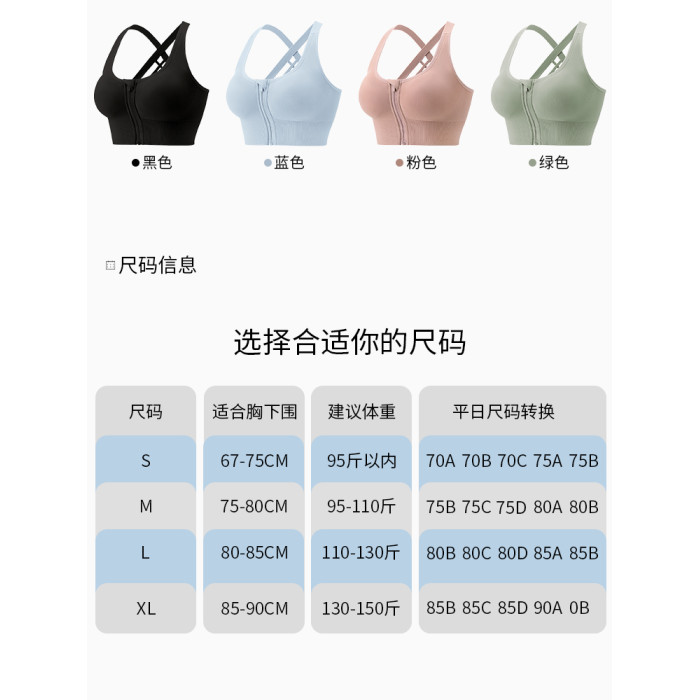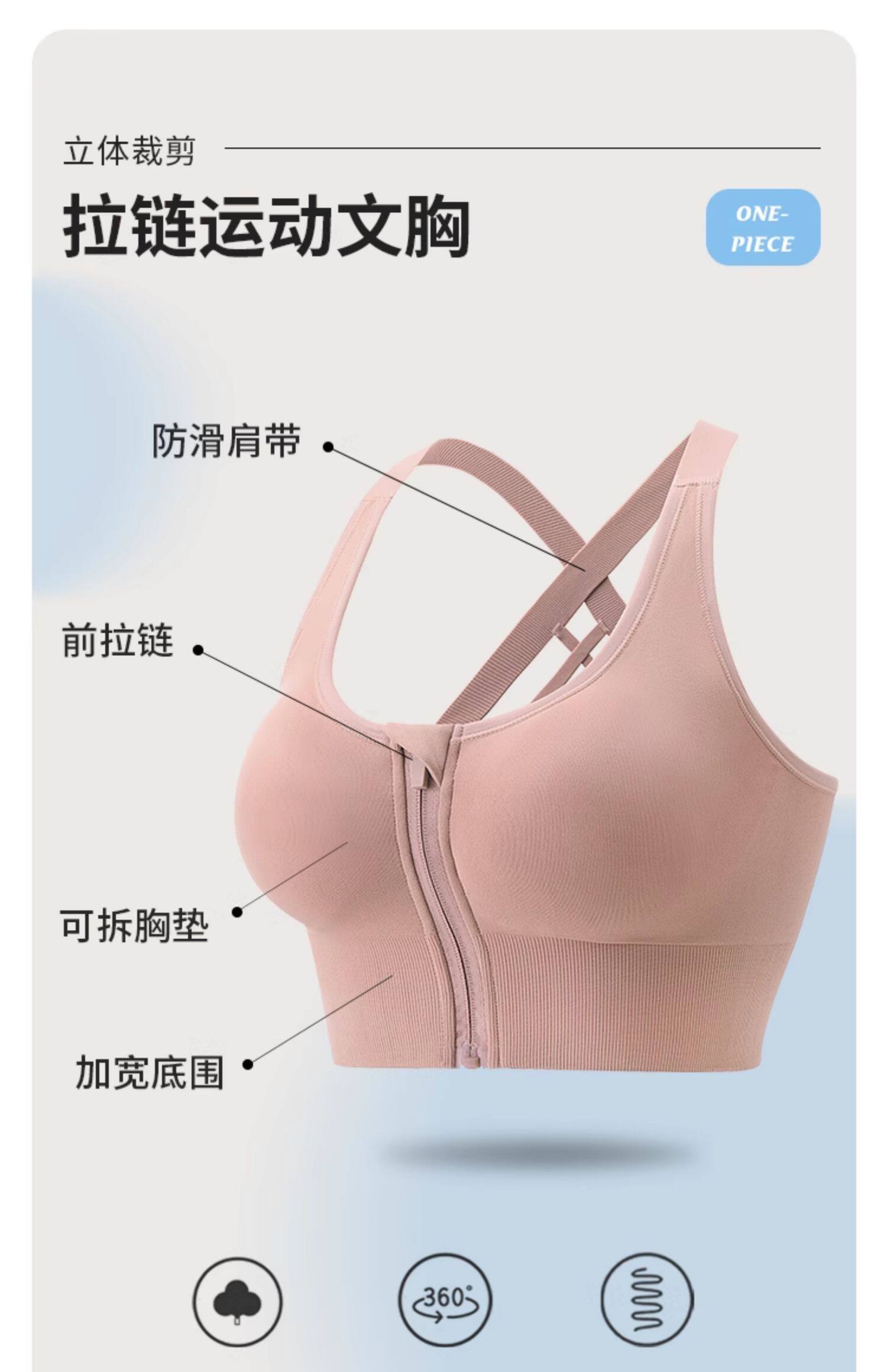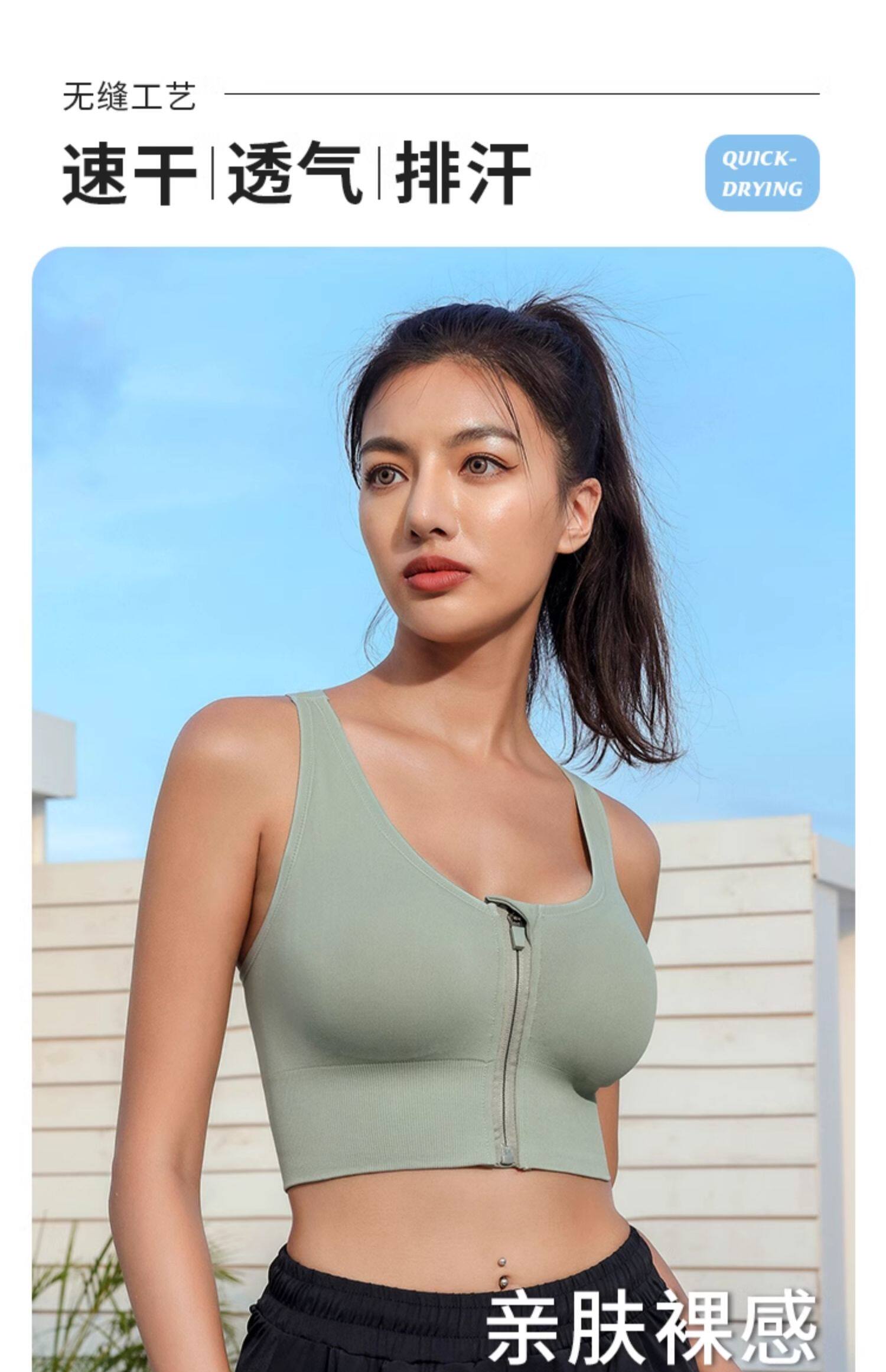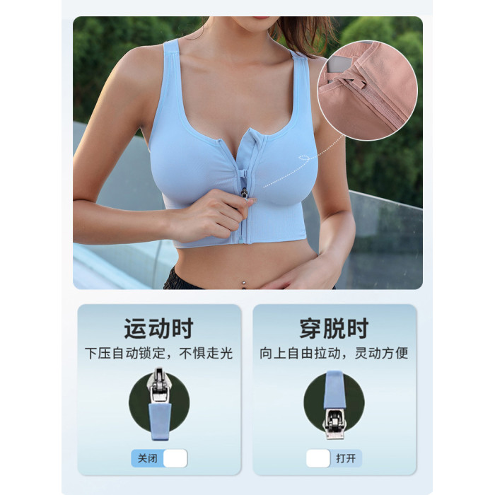 前拉鍊運動內衣女防震防下垂高強度瑜珈背心文胸罩跑步外穿健身服