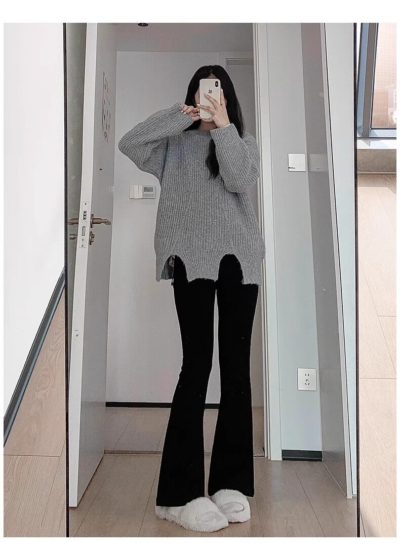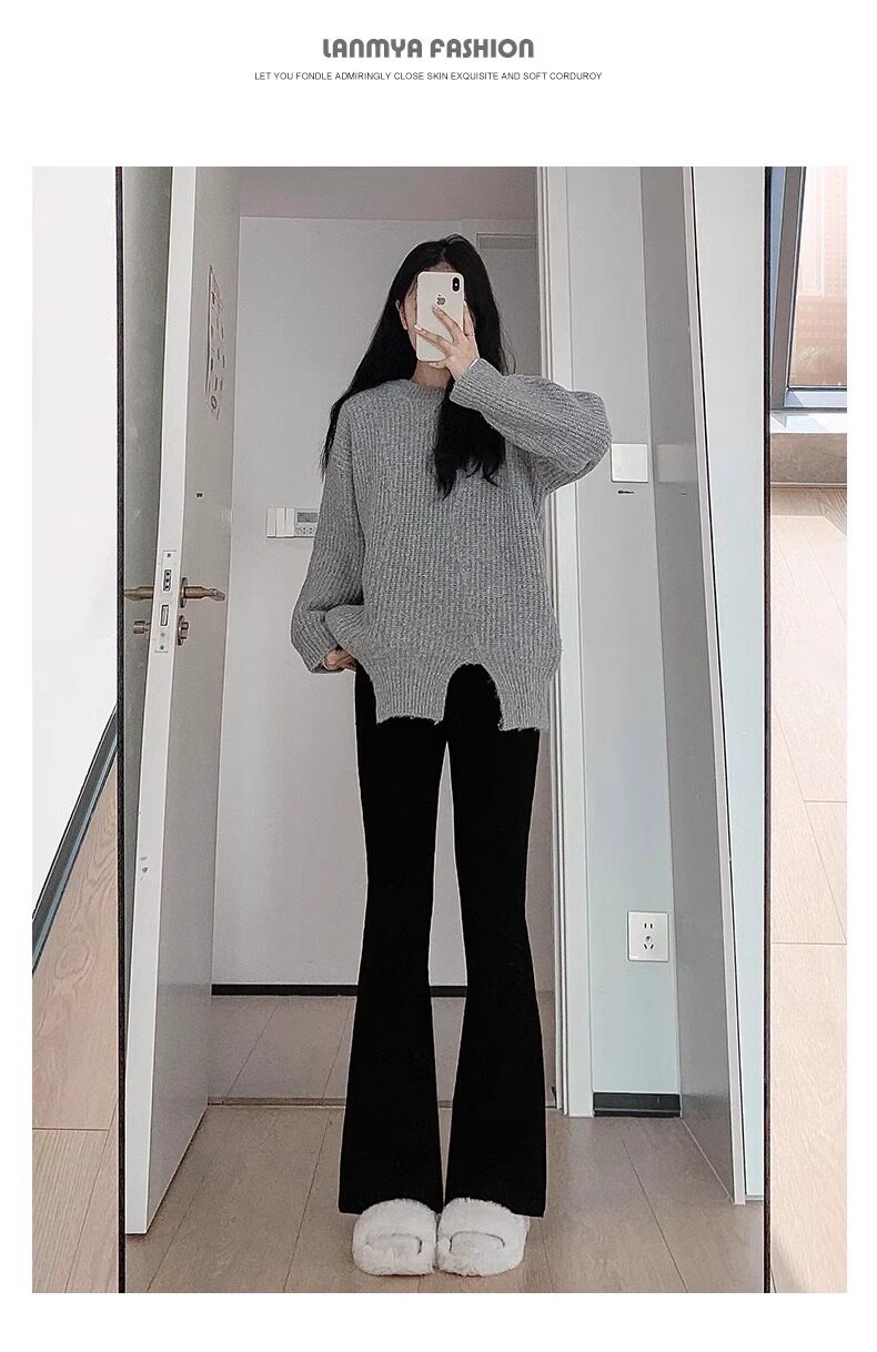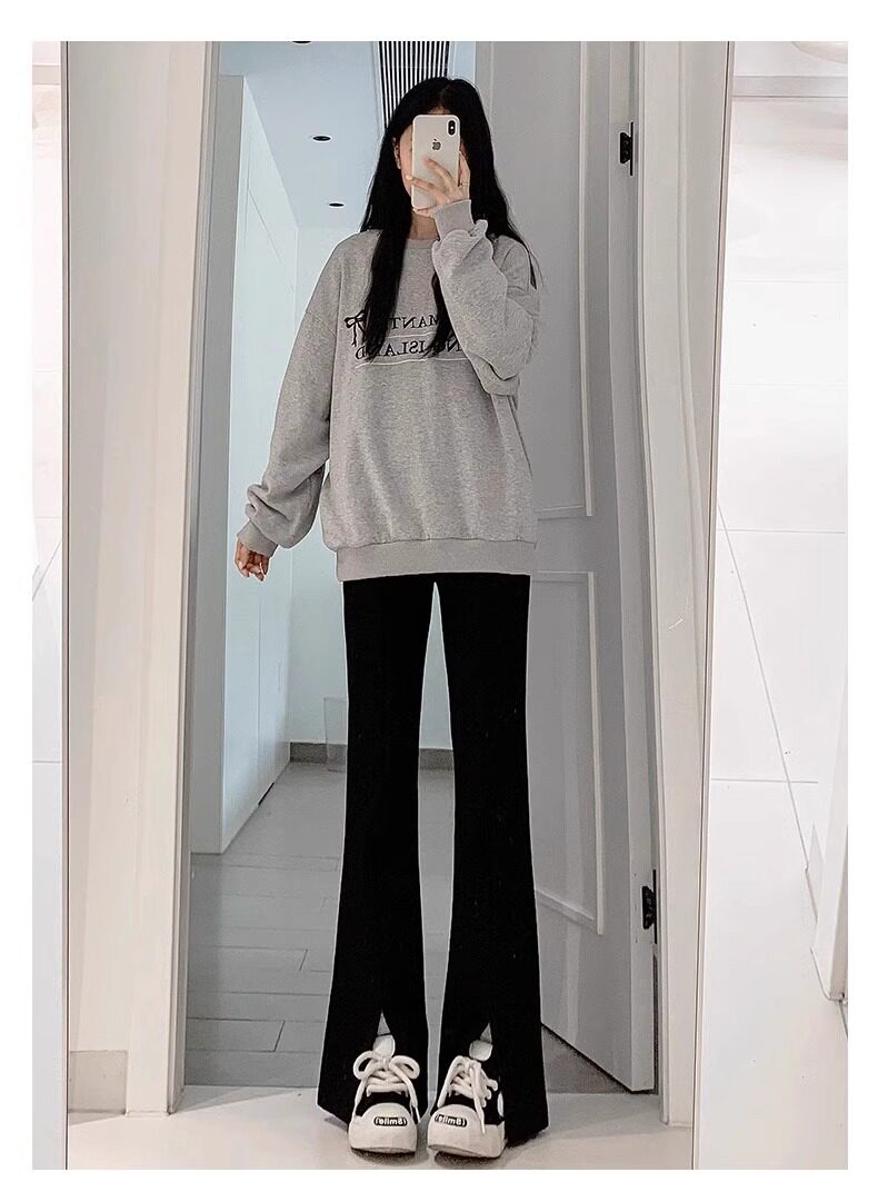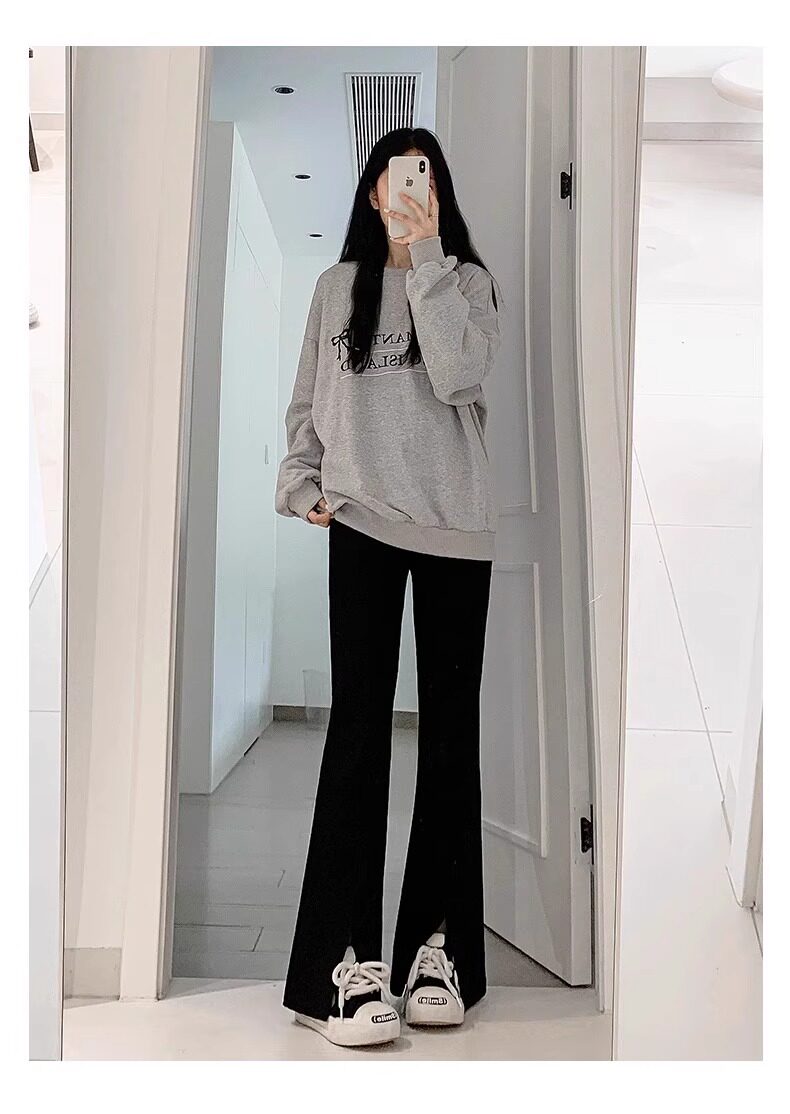 黑色喇叭褲女春夏2025新款高腰顯瘦垂墜感馬蹄褲小個子西裝微喇褲