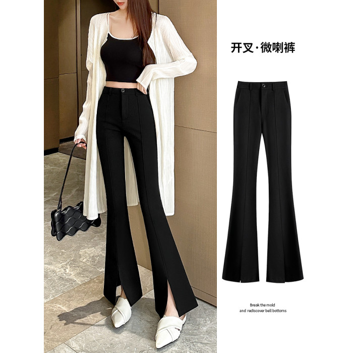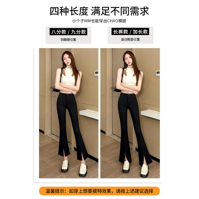 喇叭褲女春秋冬2026新款高腰顯瘦高級感垂感小個子黑色西裝微喇褲