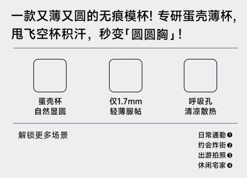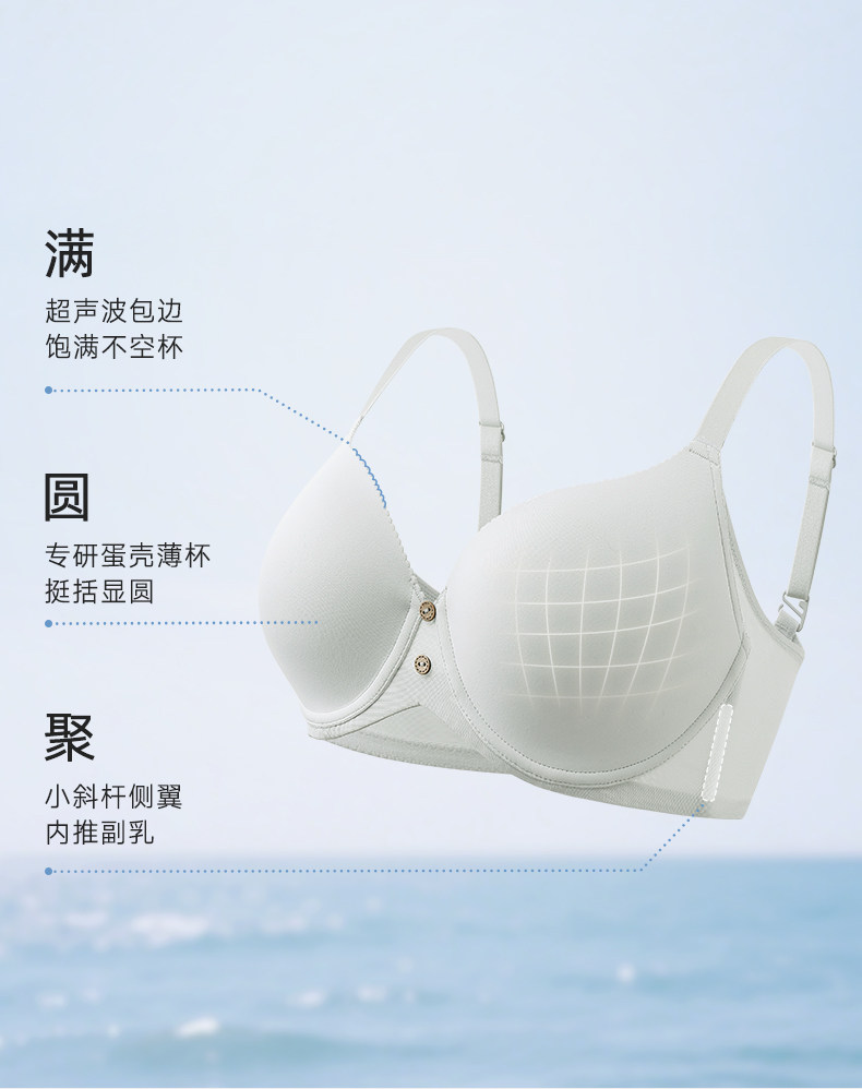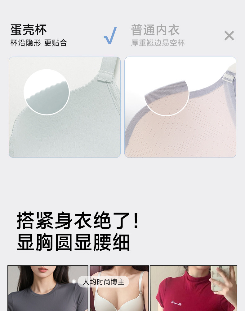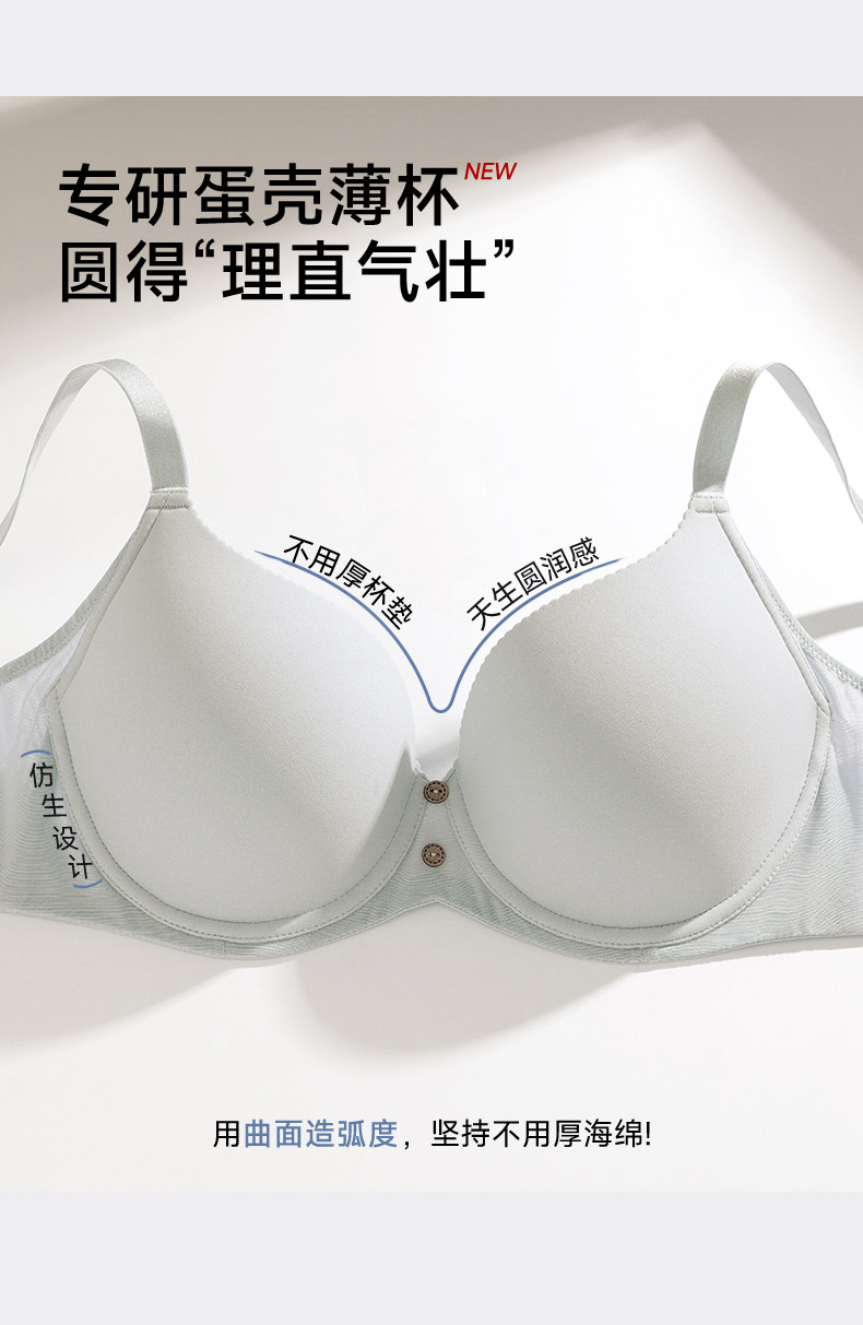 怡倩【蛋殼杯】無痕內衣女大胸顯小夏隱形聚攏收副乳薄款光面文胸