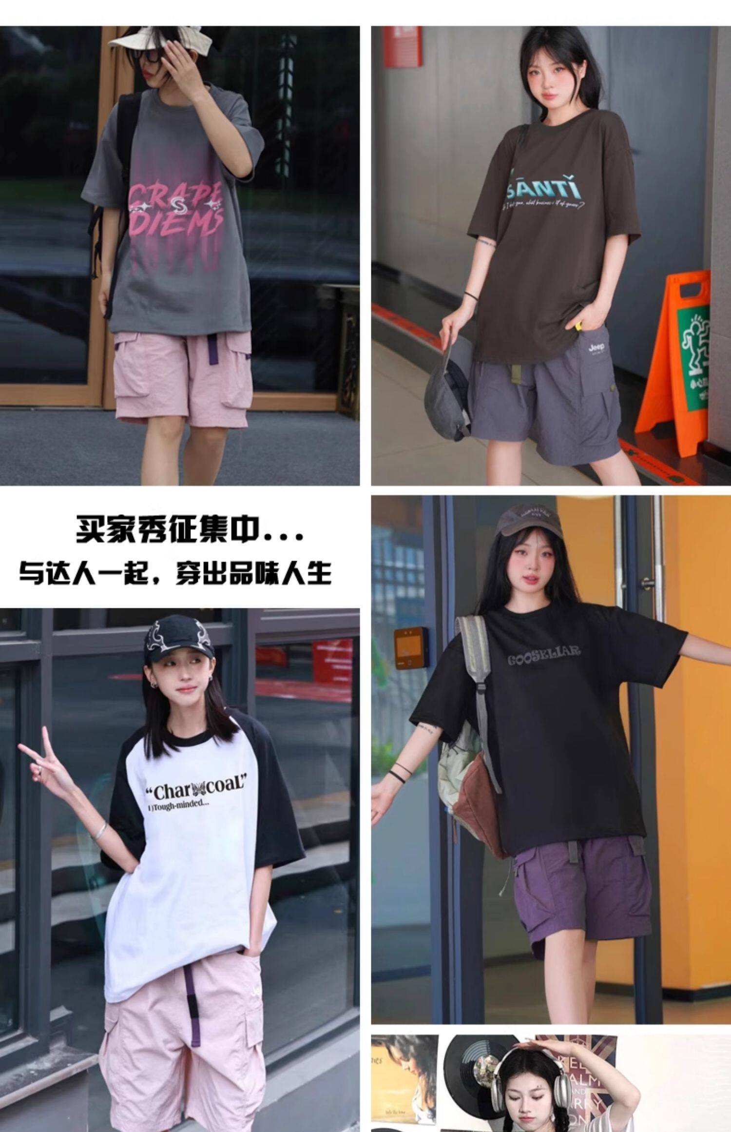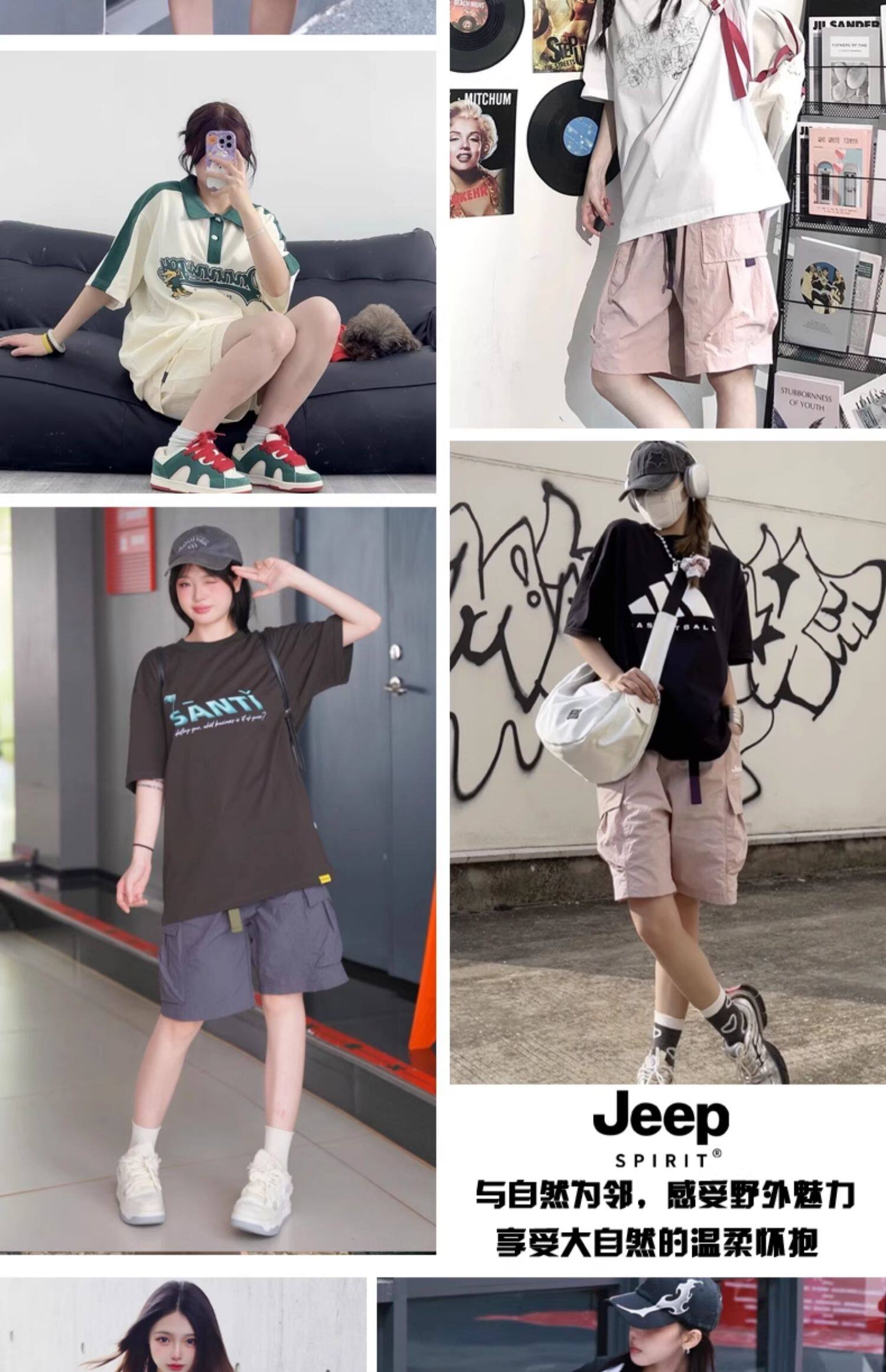JEEP工裝短褲女夏季2025新款美式寬鬆大碼胖mm冰絲休閒運動五分褲