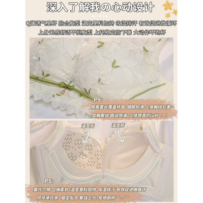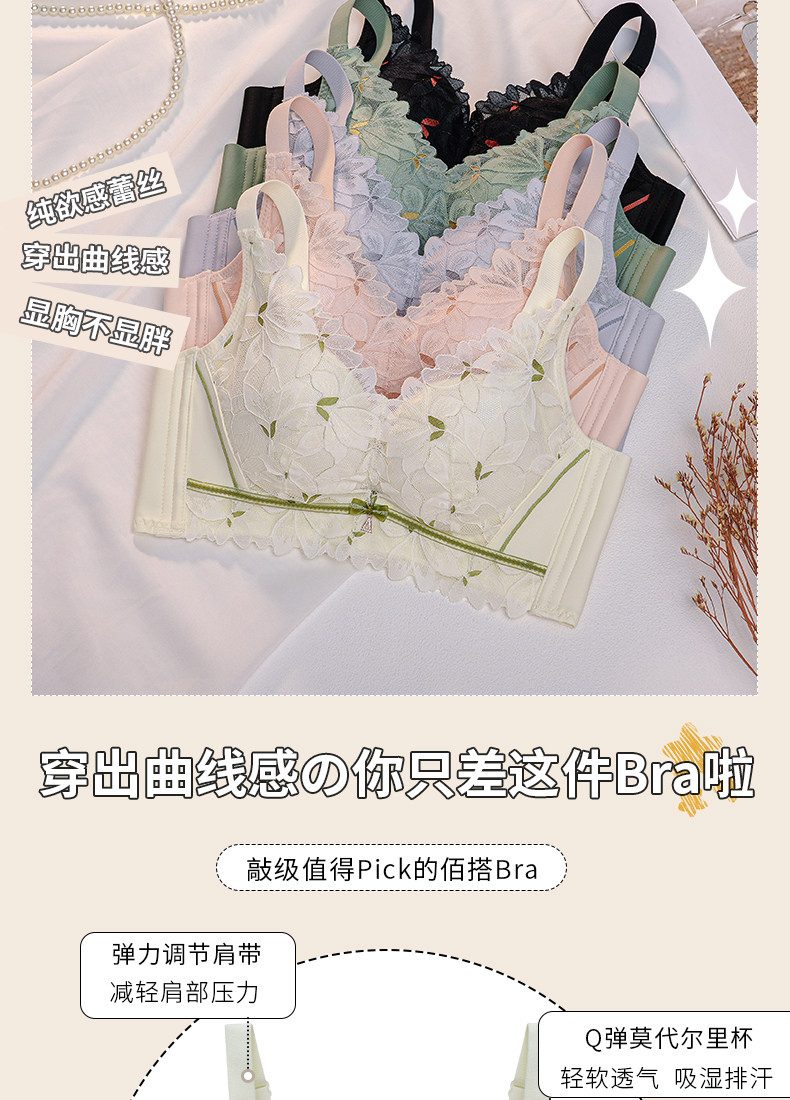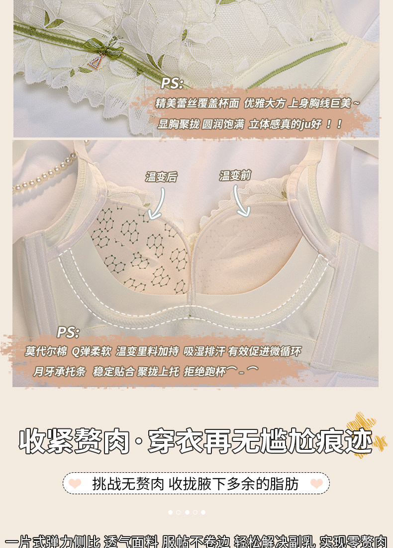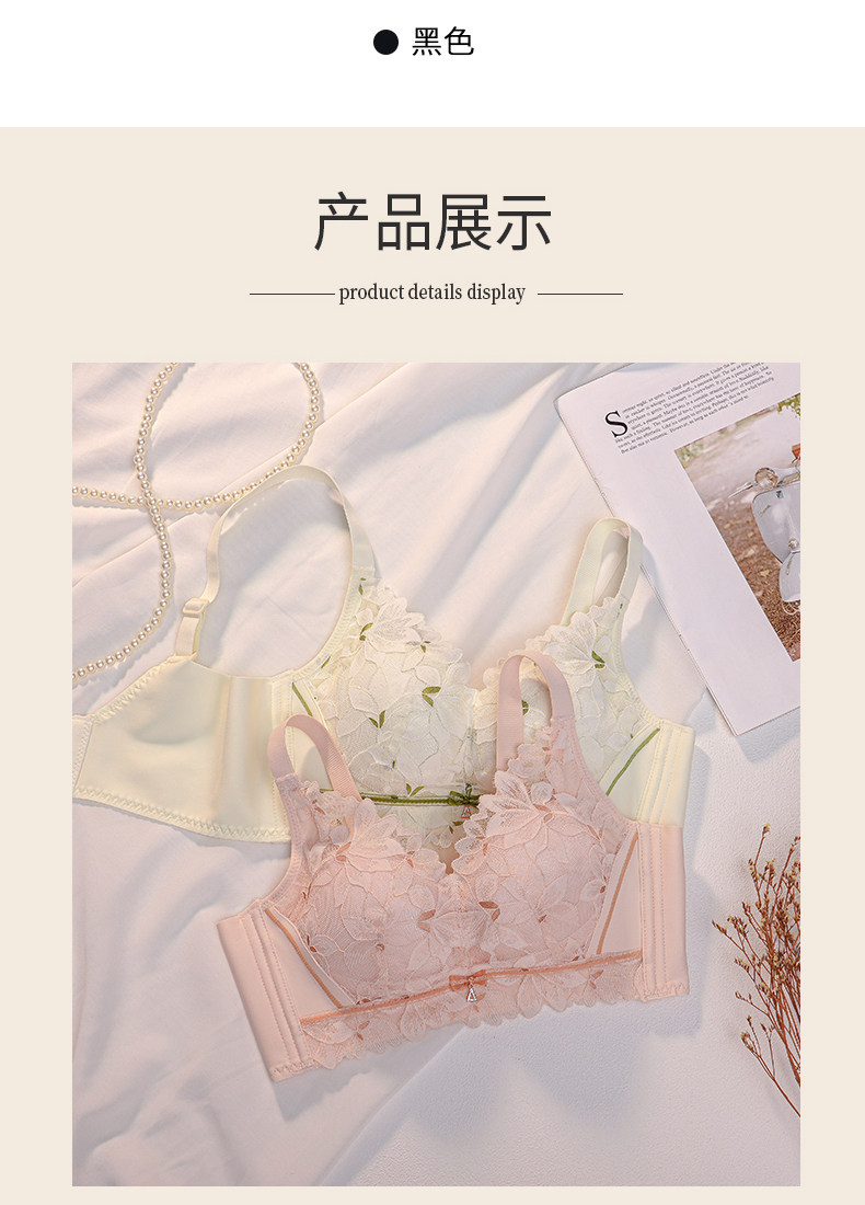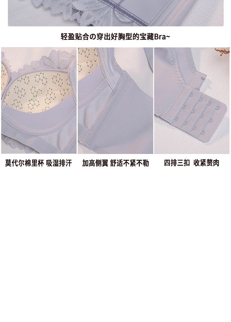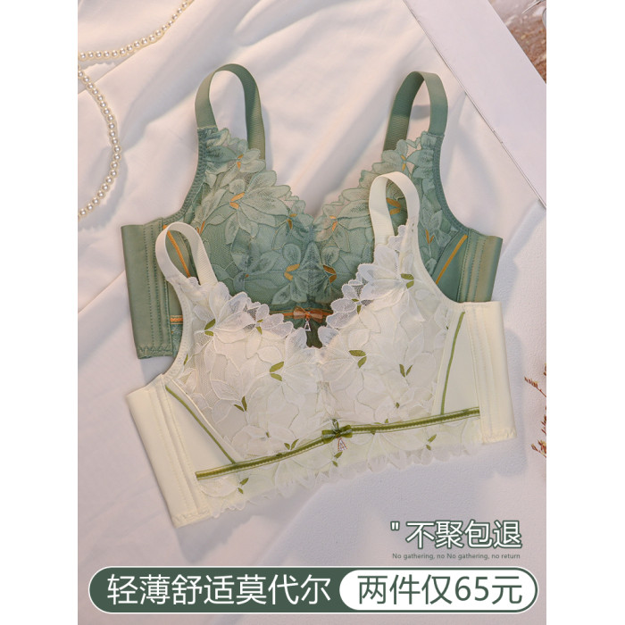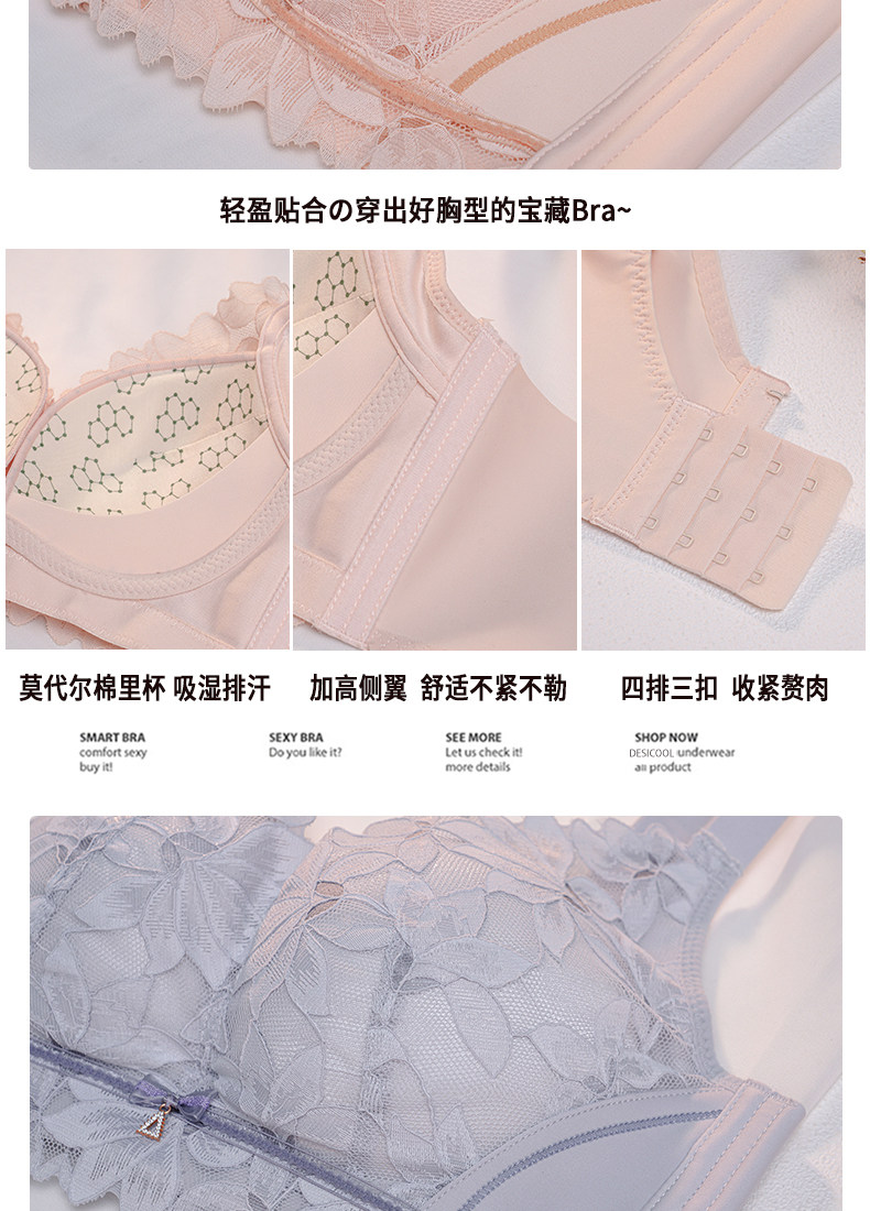 莫代爾內衣女聚攏小胸上托防下垂收副乳調整型夏季薄款蕾絲文胸罩